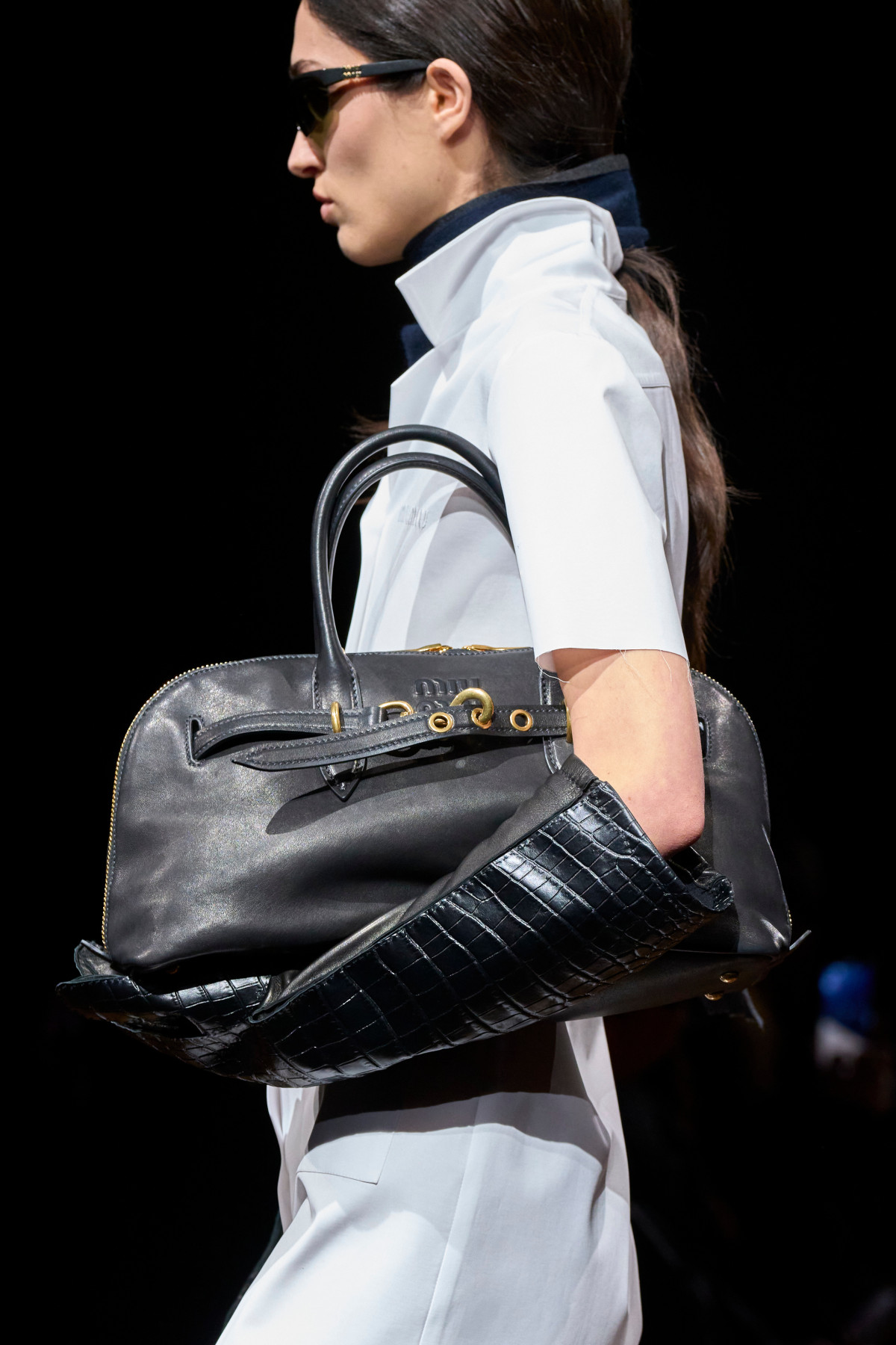 Серед силуетів сумок, що були популярними в 90-х і знову завоювали увагу fashion-світу цього року, — bowler bag, модель із плоским дном і заокругленим верхом. Такі варіанти є доволі масивними, але зручними для повсякденного носіння. Вони вмістять як косметичку, так і книгу, пляшку з водою та всі інші необхідні дрібнички. Приклади можемо знайти в асортименті Tod’s, Ferragamo, Bally, Miu Miu та інших.