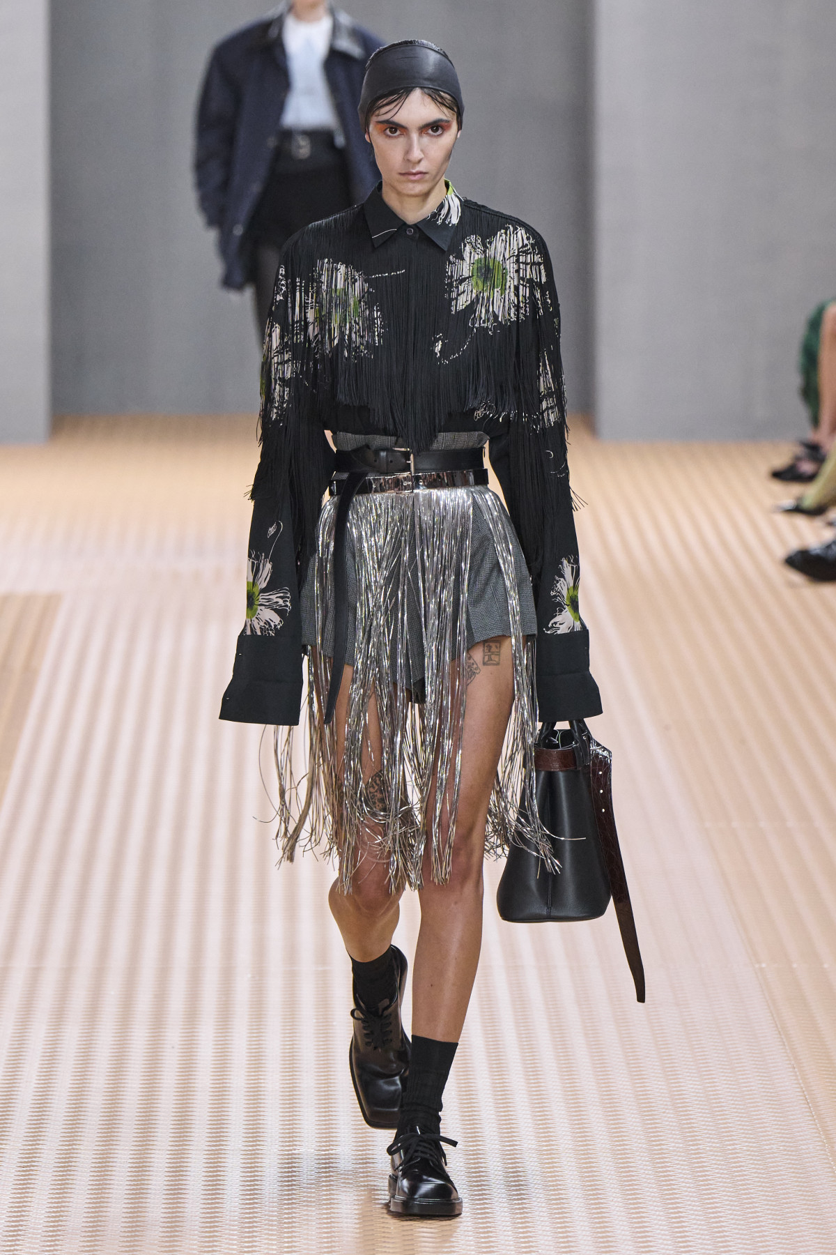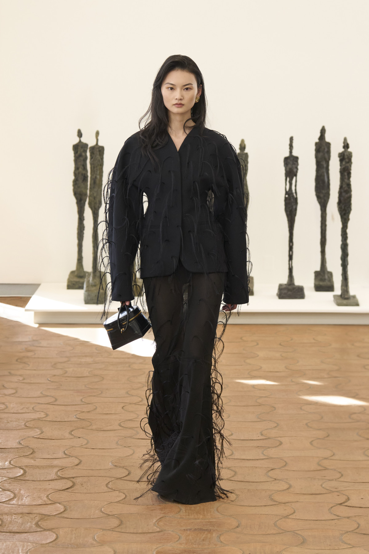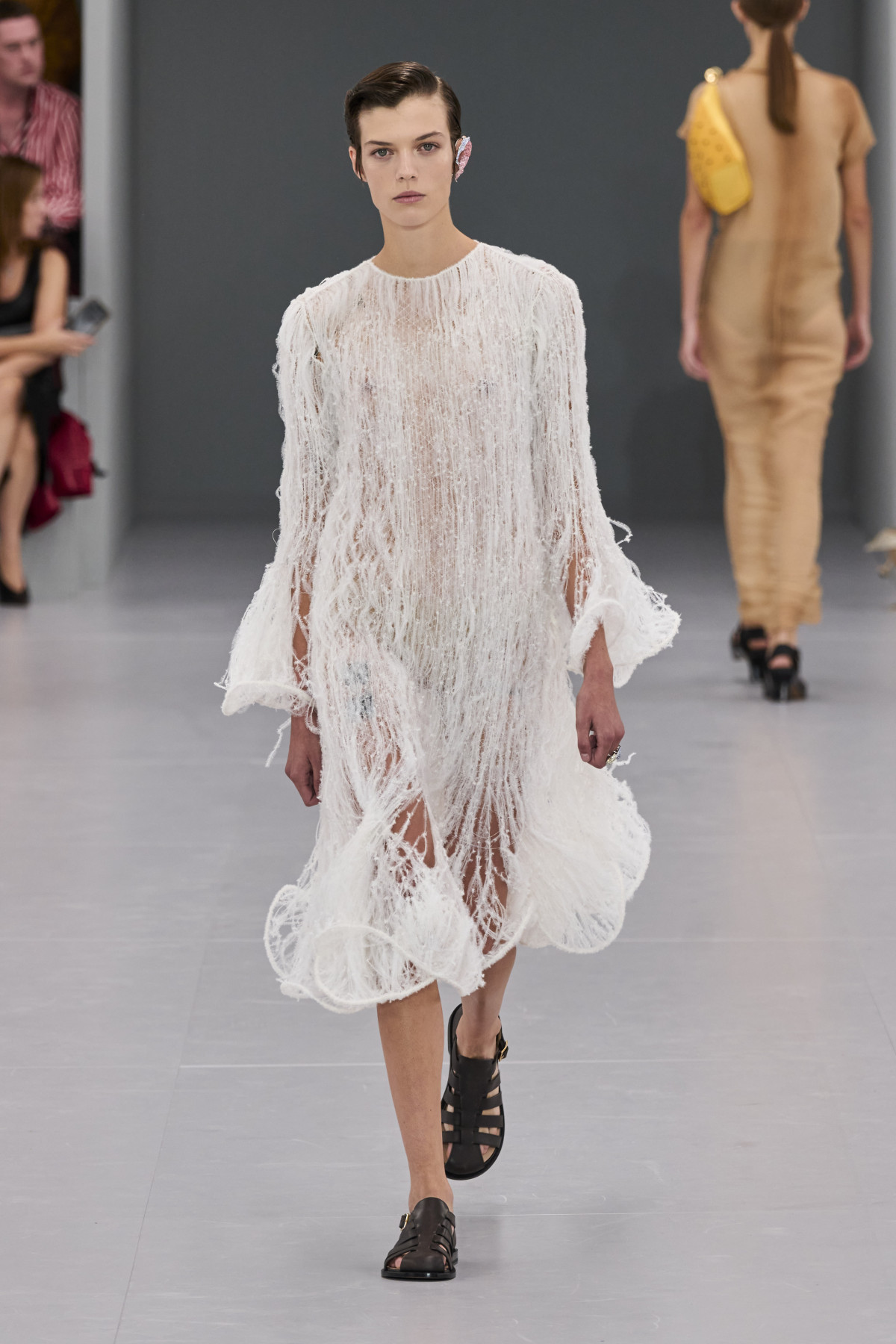 На показах колекцій сезону весна-літо — 2024 бахрома з’явилася на абсолютно різних предметах одягу. Найчастіше дизайнери доповнювали нею сукні, що ми побачили у Celine, Bottega Veneta, Loewe, Dior, Alberta Ferretti та Jil Sander. Натомість на спідницях з бахромою зупинилися Sacai, Tom Ford i Prada. Також переглядаємо й варіанти верхнього одягу, прикрашеного цією деталлю: в Alexander McQueen показали пальта з яскравою червоною бахромою, у Jaquemus — силуетні жакети, а в Erdem — шкіряні куртки.