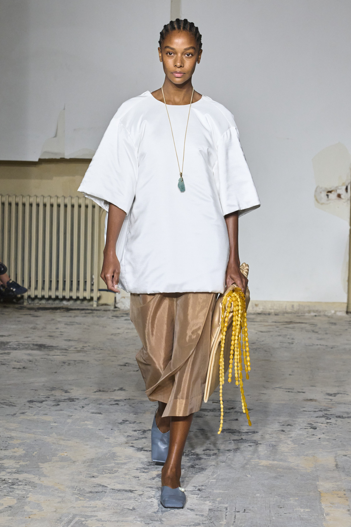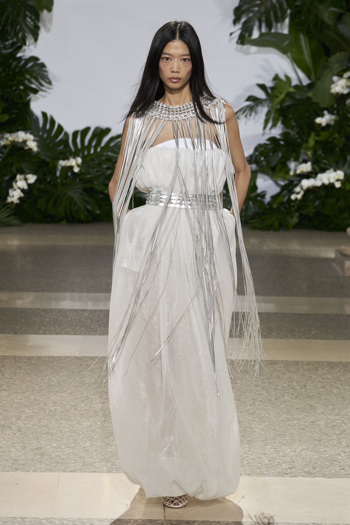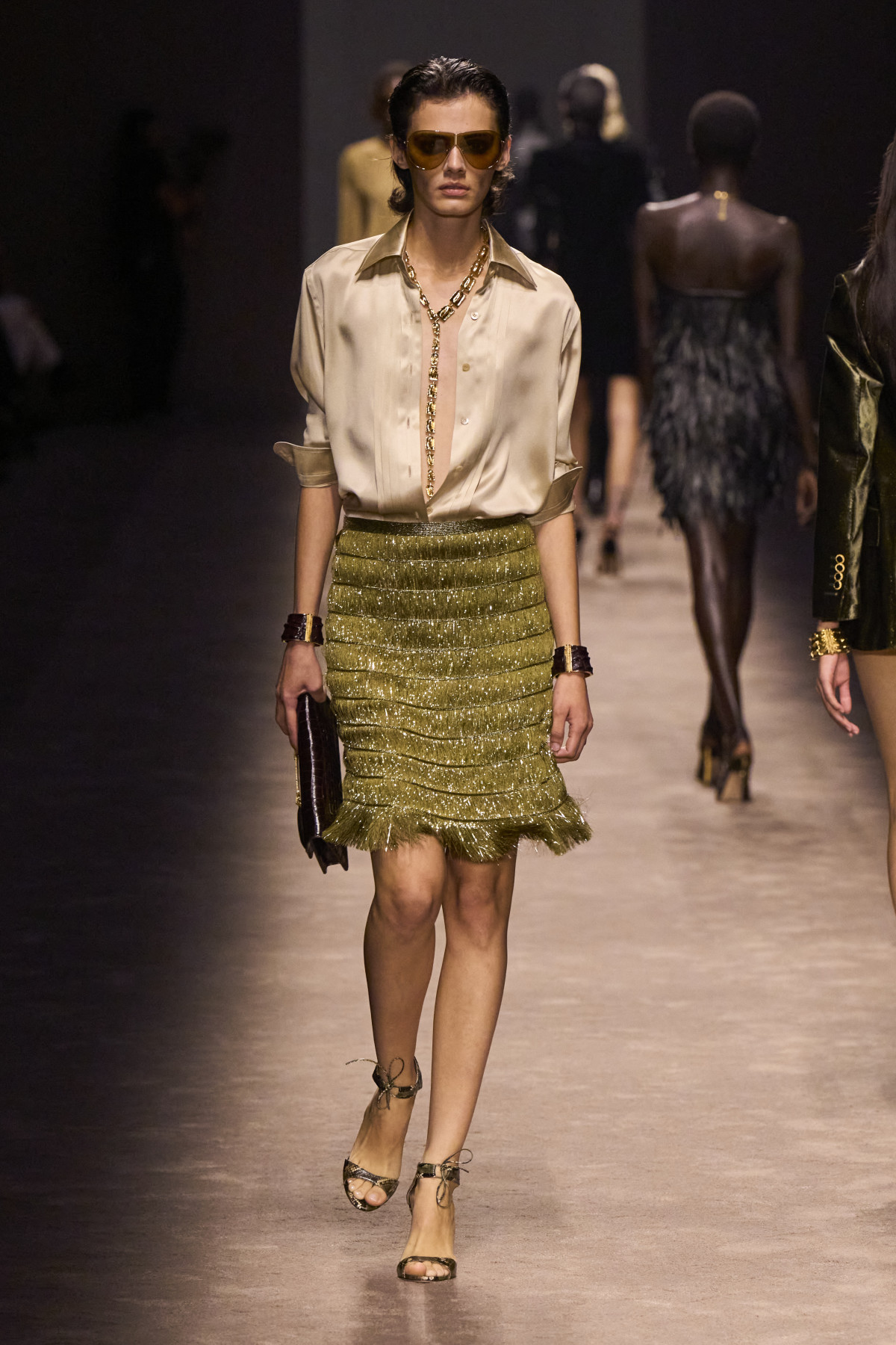 На показах колекцій сезону весна-літо — 2024 бахрома з’явилася на абсолютно різних предметах одягу. Найчастіше дизайнери доповнювали нею сукні, що ми побачили у Celine, Bottega Veneta, Loewe, Dior, Alberta Ferretti та Jil Sander. Натомість на спідницях з бахромою зупинилися Sacai, Tom Ford i Prada. Також переглядаємо й варіанти верхнього одягу, прикрашеного цією деталлю: в Alexander McQueen показали пальта з яскравою червоною бахромою, у Jaquemus — силуетні жакети, а в Erdem — шкіряні куртки.