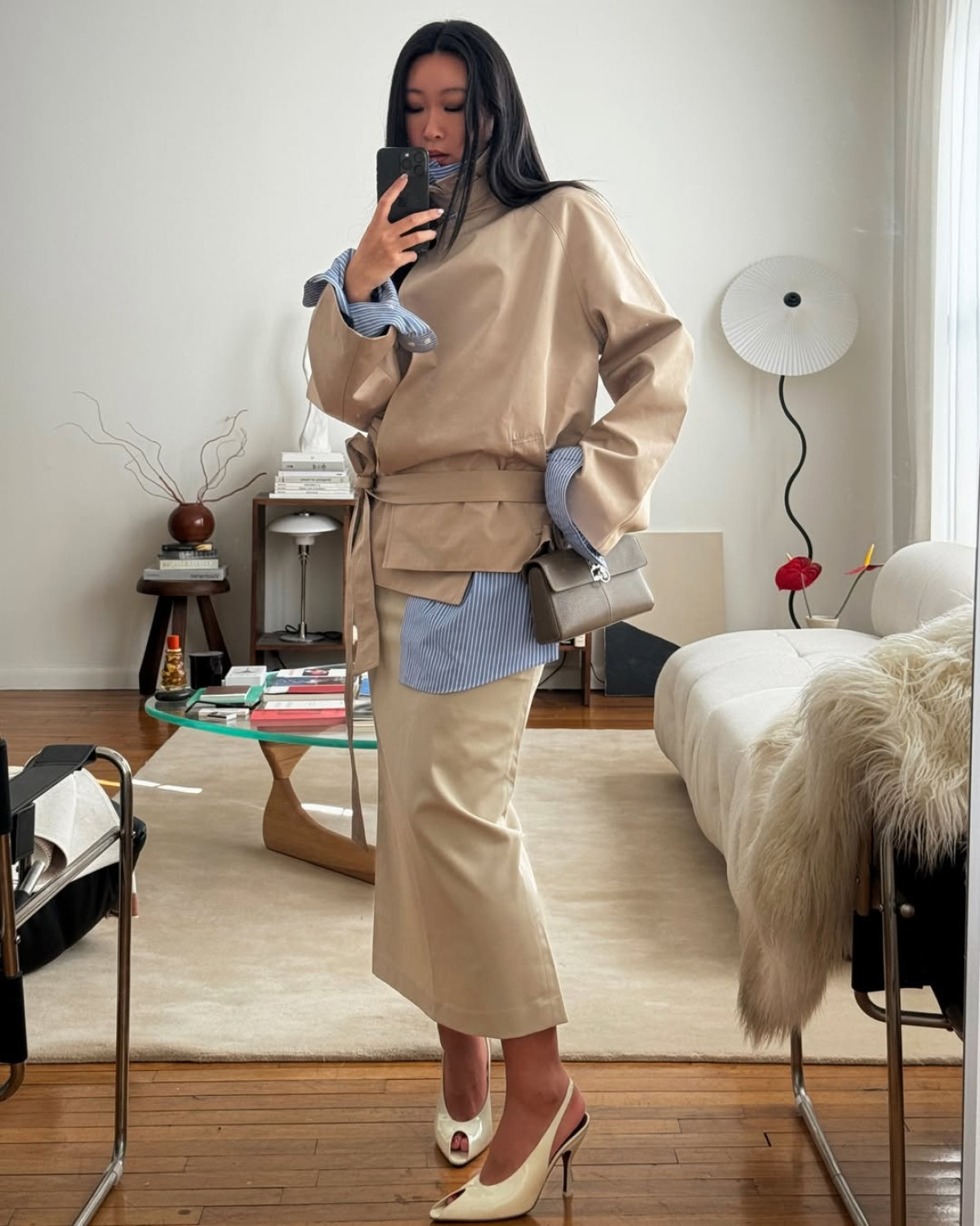 Та попри все буяння барв ми не відмовляємося й від нейтральної бази — тієї самої, що тримає гардероб у балансі та стає ідеальним тлом для нових експериментів. Саме в цій стриманій гамі, поруч із головним кольором Pantone 2026 року — «хмарним танцівником», впевнено звучить і завжди актуальний бежевий.