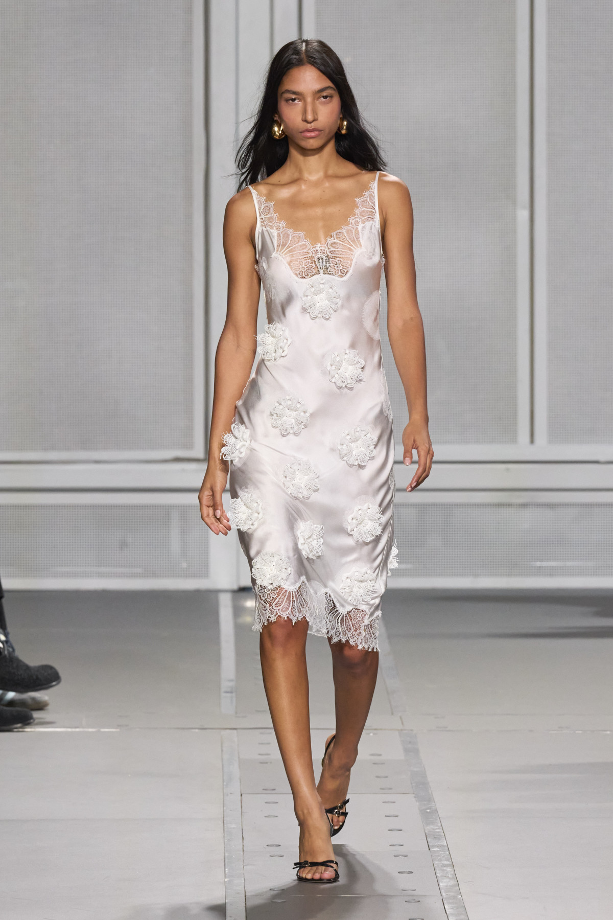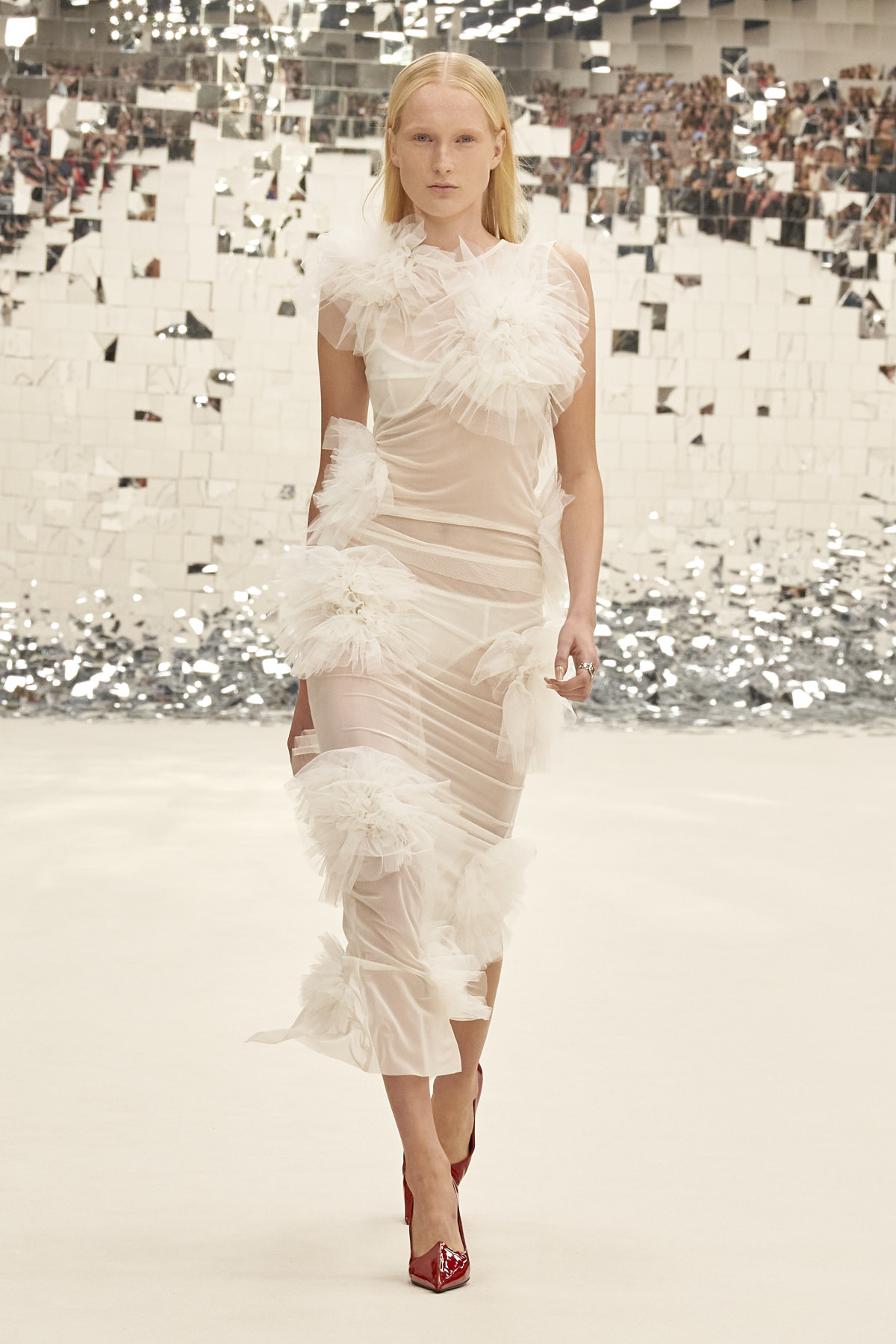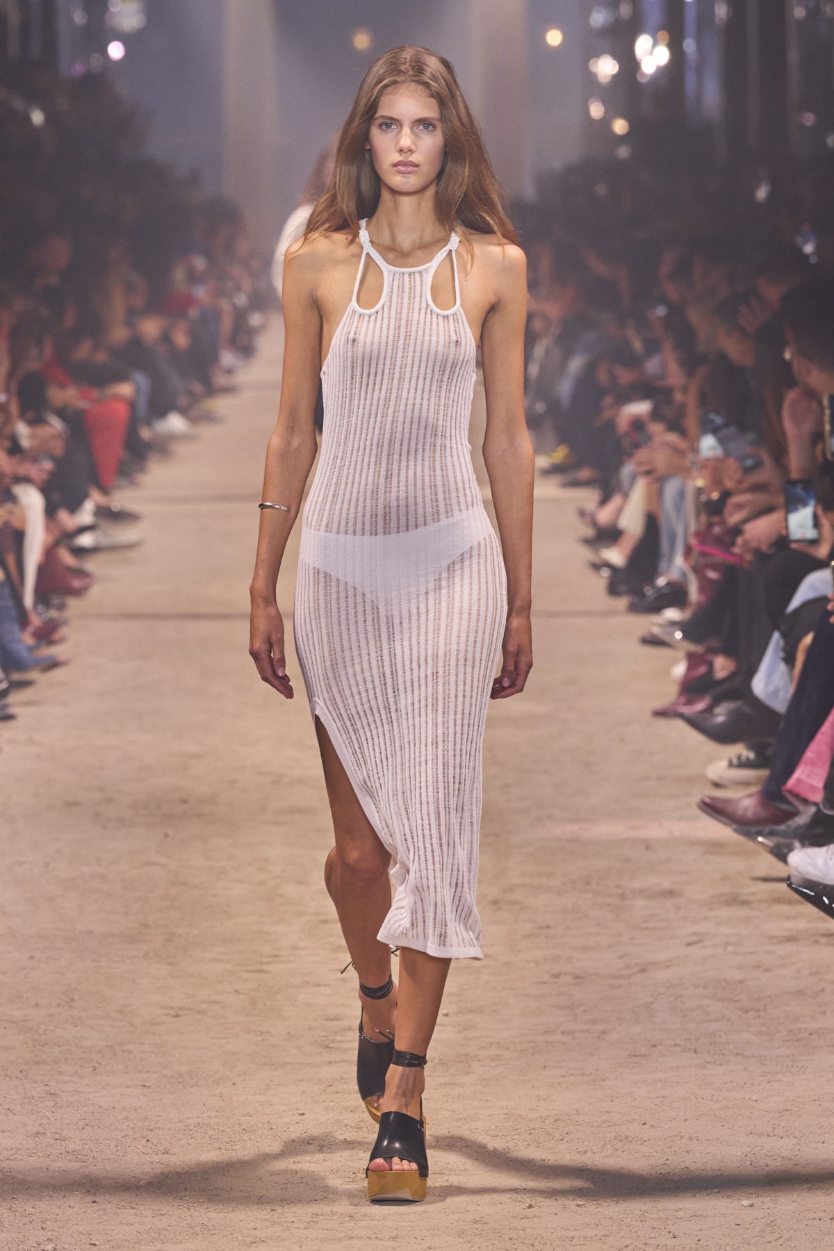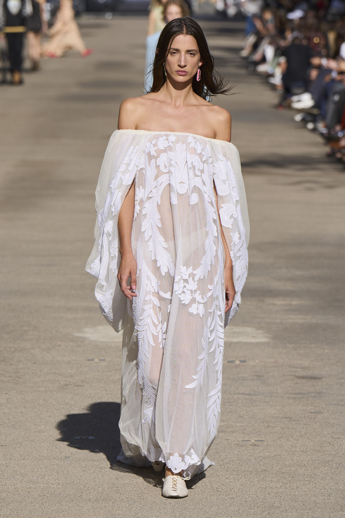 Якщо ви вважаєте, що у білих сукнях немає нічого цікавого, і з ними важко створити по-справжньому небанальний образ, то придивіться до моделей, які продемонстрували світові бренди на подіумах цього сезону. Ми побачили й варіанти міні, особливо актуальні для теплої пори, і речі довжини міді та максі з легких невагомих тканин. Які з них обрати — уже залежить від ваших вподобань. Щоб зробити власні предмети незвичними й такими, що запам’ятаються фешн-спільноті, дизайнери, як завжди, звернулися до гри з формами, текстурами й тканинами. Чимало хто зробив ставку на поєднання кількох трендів і презентував білі напівпрозорі сукні. Серед них виділялися і в’язані, і моделі з тюлю чи мережива. Їх бренди комбінували з мікрошортами, трусами та ліфами того ж відтінку. Різні варіанти таких суконь переглядаємо в Tove, Acne Studios, Victoria Beckham і Coperni.