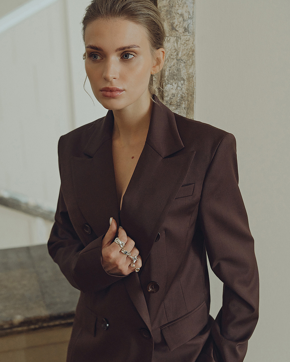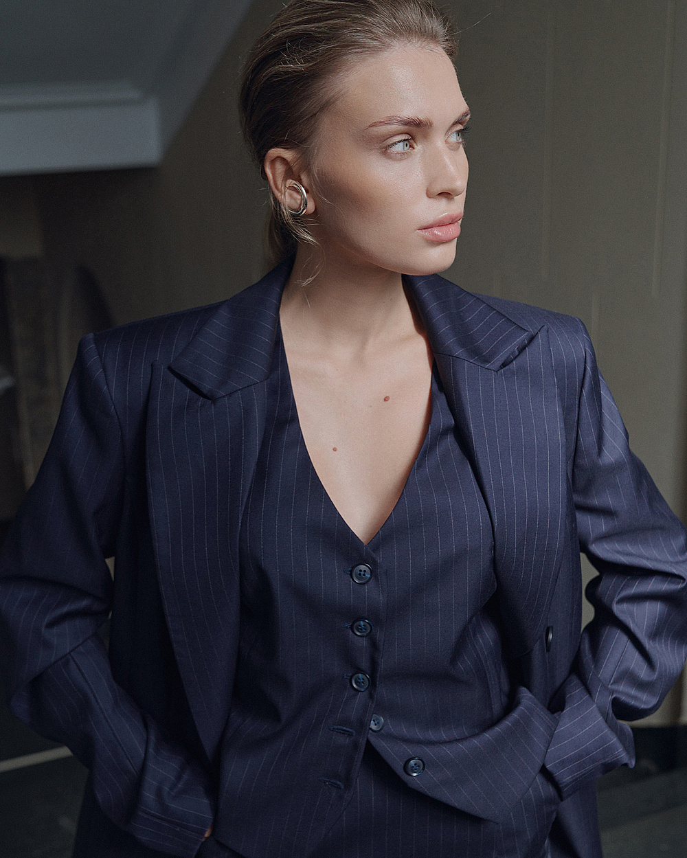 «У мене на мудборді були фото Марлен Дітріх та Анни Стен — першої голлівудської кінозірки українського походження. Ці жінки випромінювали сексуальність навіть у чоловічих костюмах та застібнутих на всі ґудзики пальтах. У ті роки їхній стиль вважали революційним та навіть скандальним. Сьогодні завдяки їм це стало класикою», — каже Катерина.