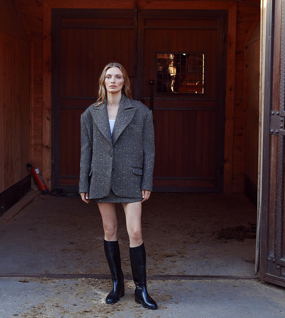 Для стайлингу колекції дизайнерка використовувала сіно: воно присутнє у сумках та окремих деталях. З нього ж створювали традиційних плетених коників — ними стилізували піджаки. Власне, на ці піджаки, а також на деконструйовані костюми ми радимо звернути особливу увагу.