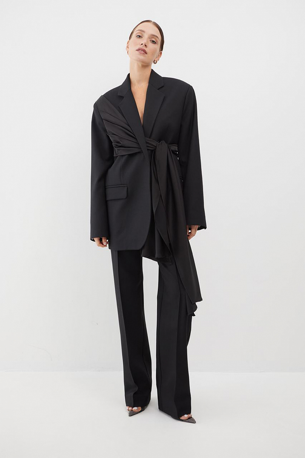 Український бренд L’eskizzo представив осінню колекцію The Knot. У цій капсулі команда бренду поєднує елементи «уніформи» жительки мегаполіса: приталені powersuits та костюми-трійки, закриту сукню-міді з оверсайз-жакетами, обʼємними пальтами й шарфами. Як і в минулих колекціях, L’eskizzo комбінує маскулінні силуети з надзвичайно жіночними елементами: жакет має ззаду шнурівку, яка стягує його й підкреслює фігуру, а сорочка та сукня мають рукава-кейп, які закріплюються запонками.
