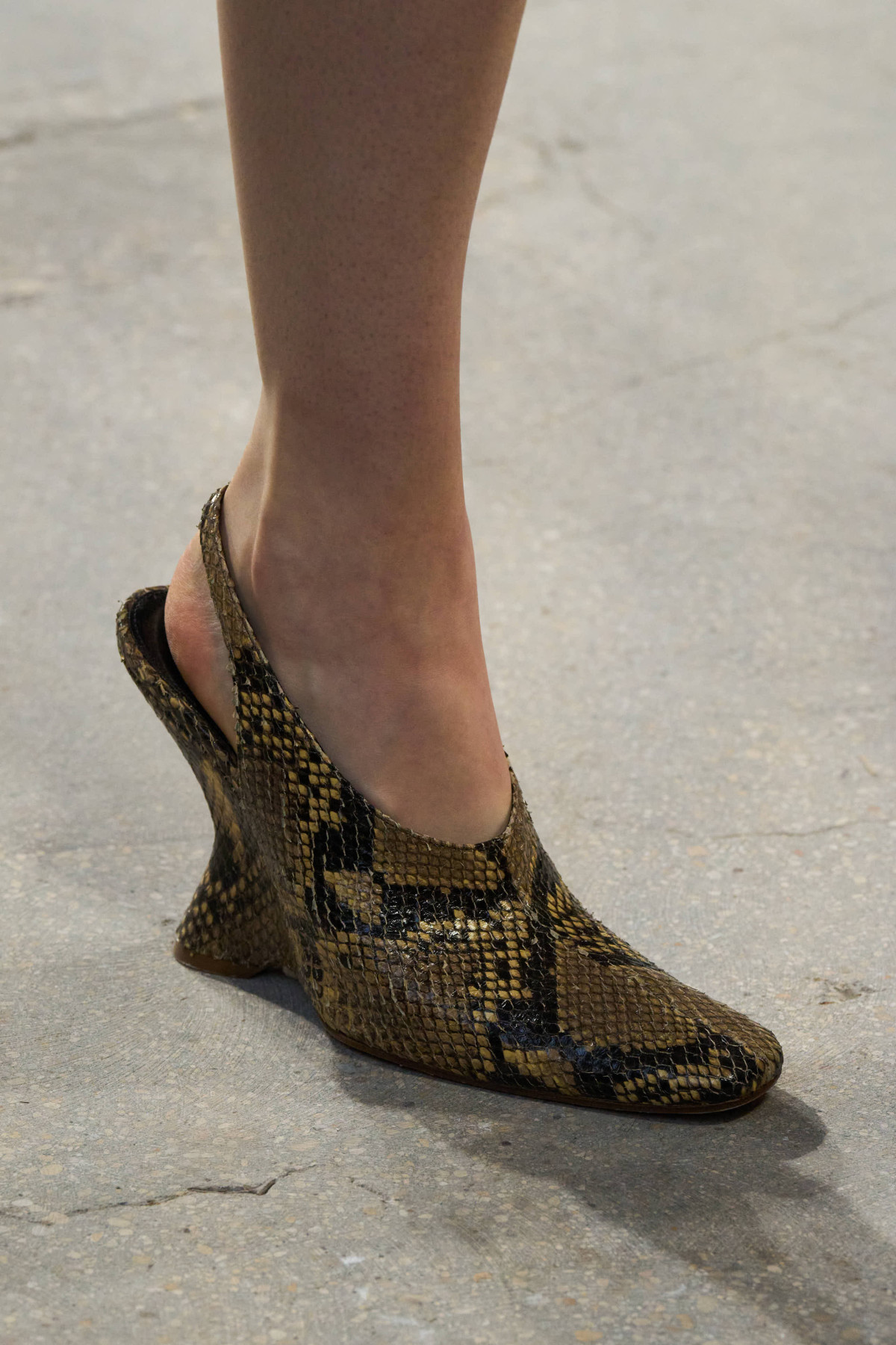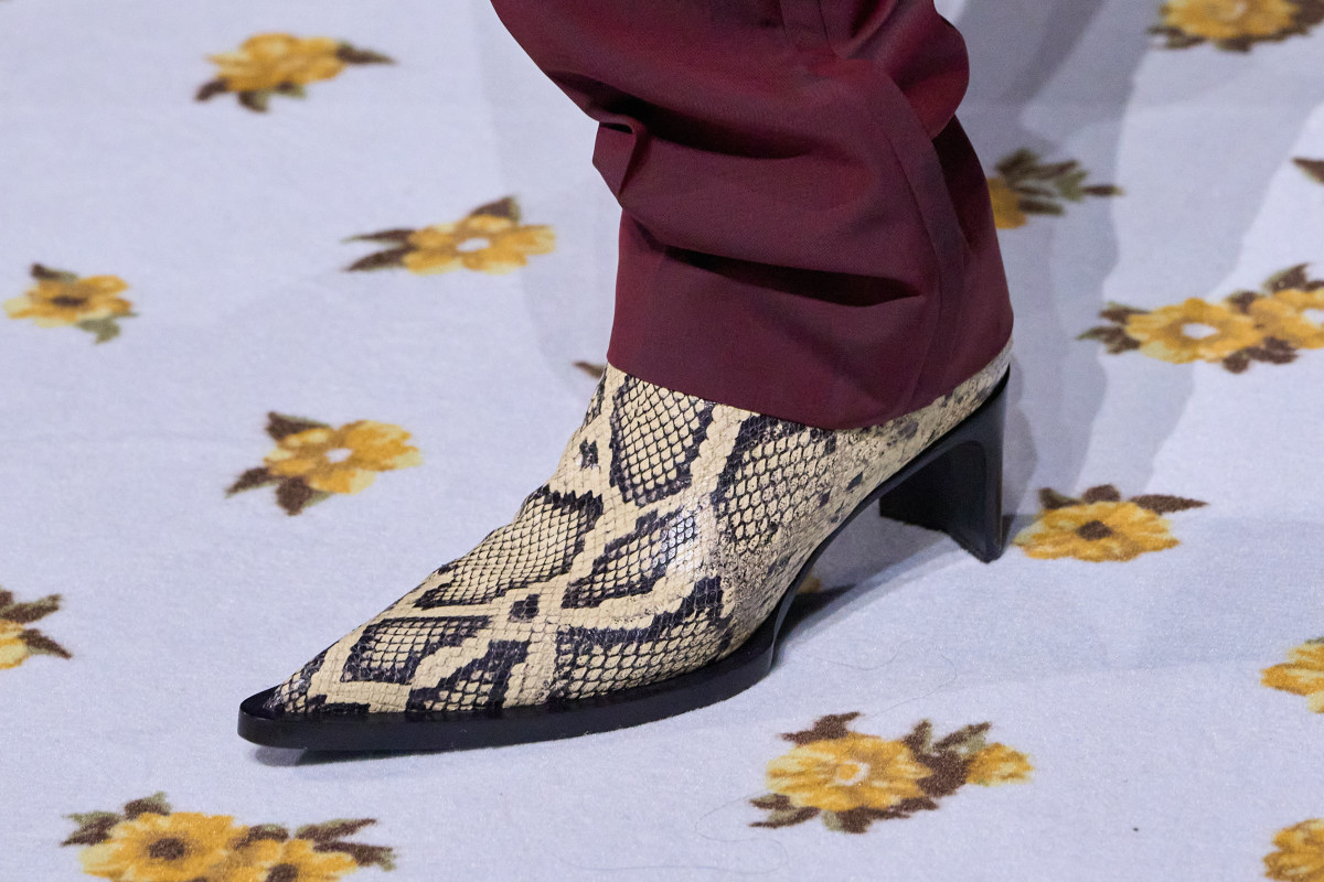 Окрім цього, на подіумах з’явилося й чимало варіацій взуття та аксесуарів: високі чоботи від Duran Lantink та Jil Sander, слінгбеки від Dries Van Noten і масивні клатчі від 16Arlington.