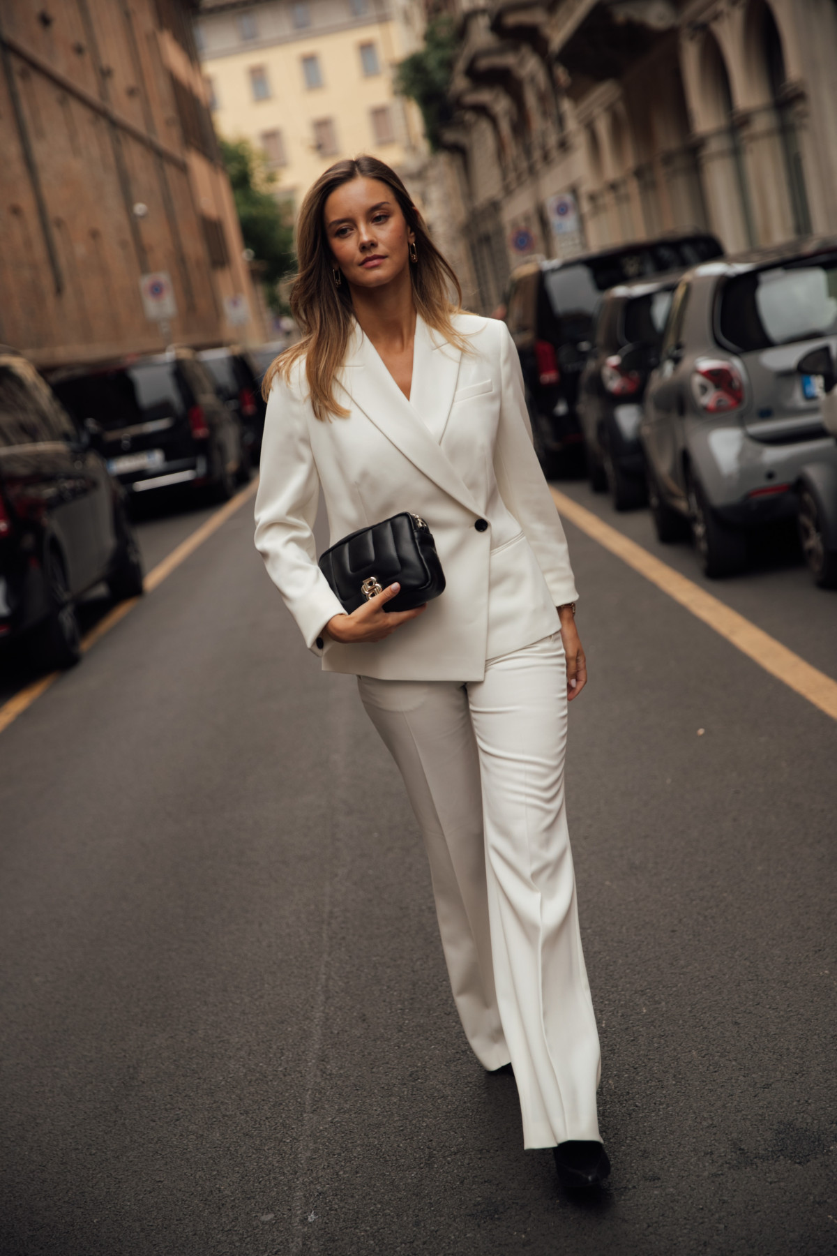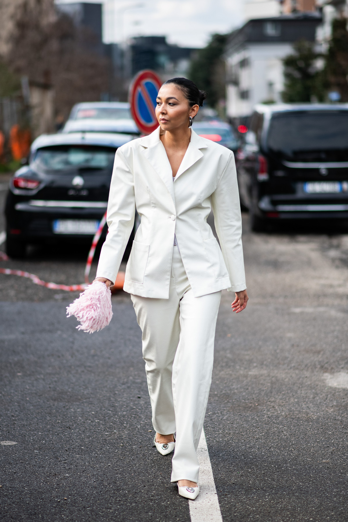 Модниці вже кілька сезонів поспіль впевнено інтегрують білі костюми у свої steetstyle-образи. За їхньою порадою, придивляємося до комплектів з об’ємними жакетами й вільними палаццо; навпаки, дещо завужених варіантів зі штанами-кльош, що відсилають до естетики нульових; а також деконструйованих позицій і моделей, прикрашених вишивкою, кристалами й акцентними ґудзиками.