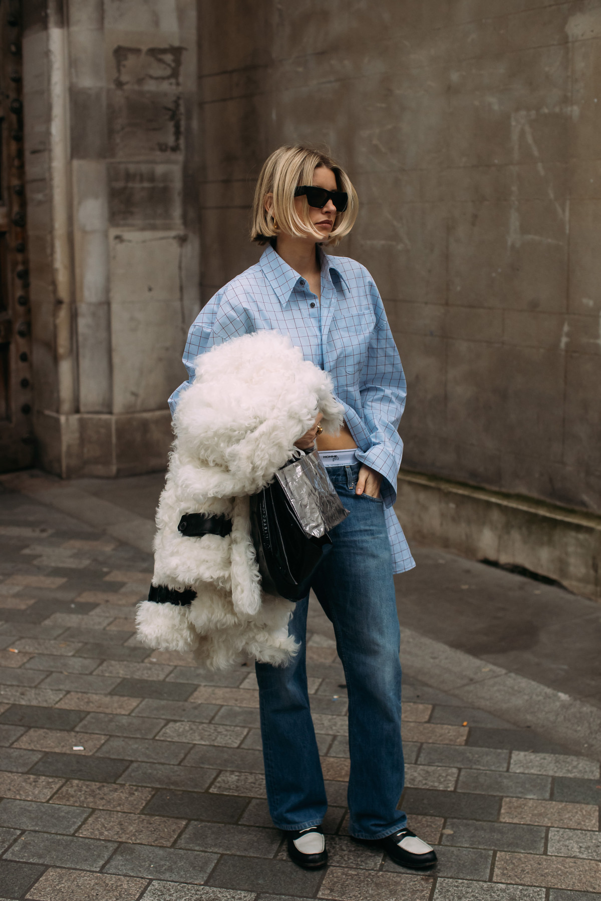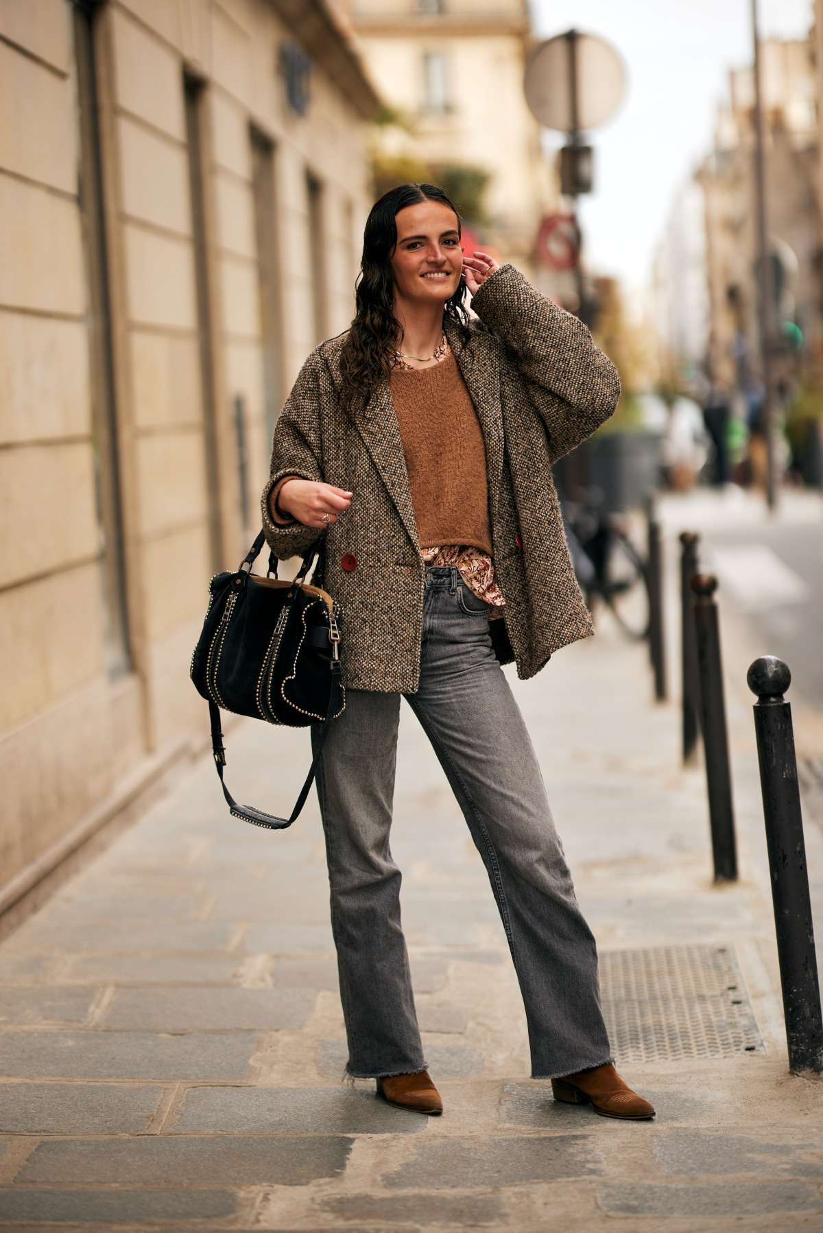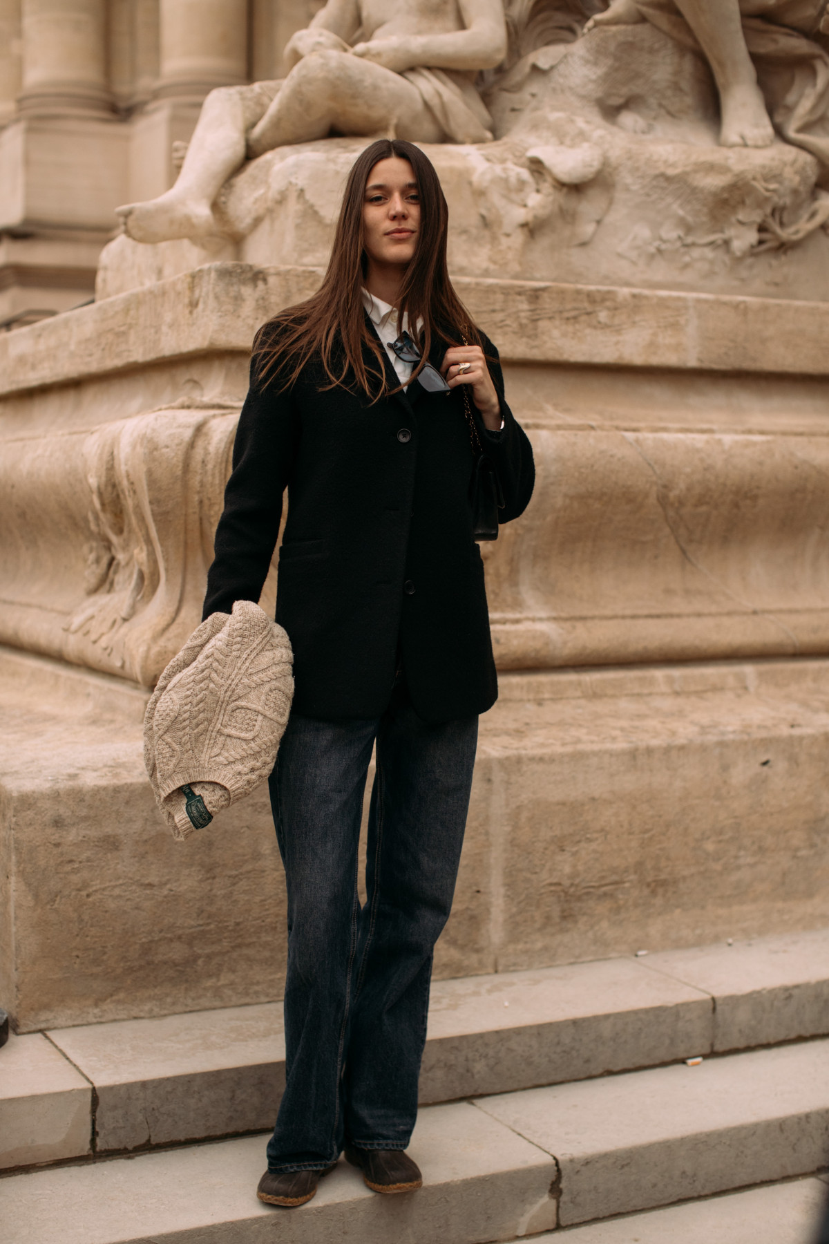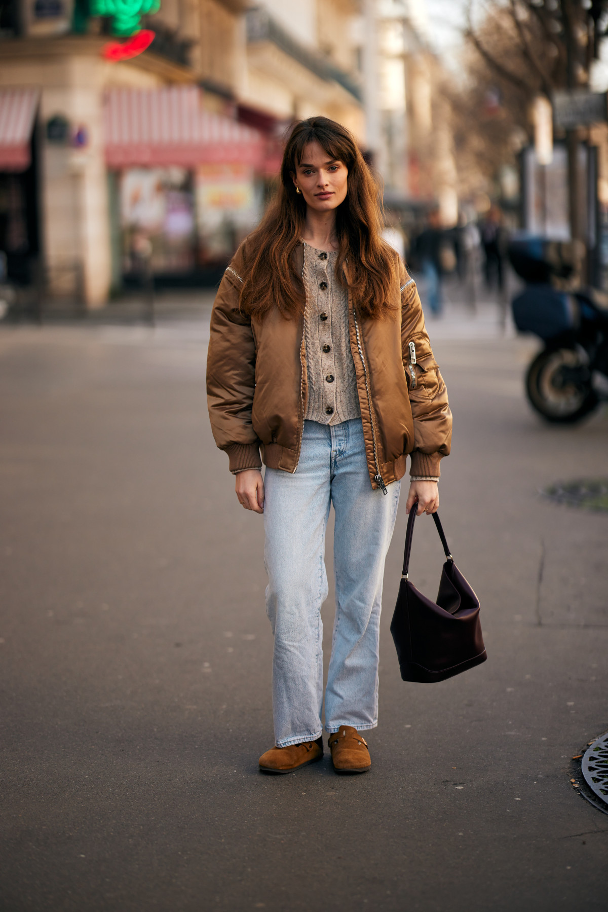 Серед найпопулярніших стилізацій — з укороченими замшевими куртками, спортивними бомберами, класичними косухами, базовими тренчами та об’ємними блейзерами в стилі officecore. Загалом із будь-яким одягом, який лише знайдеться в гардеробі. Тож тут уже вам вирішувати: додати їх до щоденних образів із кросівками та футболкою чи зробити ставку на більш святковий варіант з підборами та ефектним верхом.