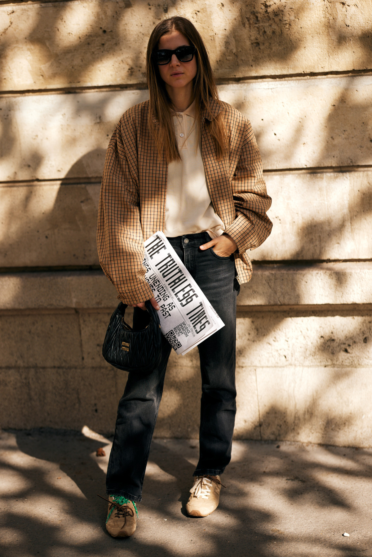 Серед найпопулярніших стилізацій — з укороченими замшевими куртками, спортивними бомберами, класичними косухами, базовими тренчами та об’ємними блейзерами в стилі officecore. Загалом із будь-яким одягом, який лише знайдеться в гардеробі. Тож тут уже вам вирішувати: додати їх до щоденних образів із кросівками та футболкою чи зробити ставку на більш святковий варіант з підборами та ефектним верхом.