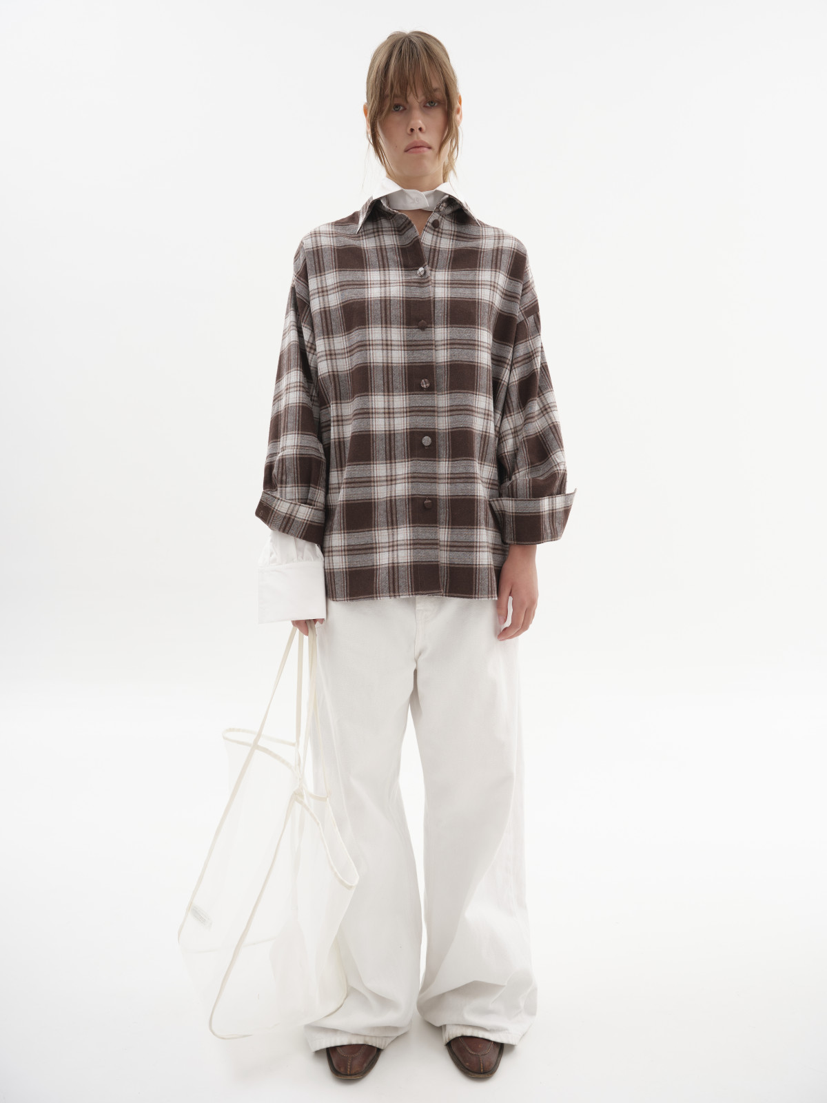 Картата сорочка працює як міст між функціональністю та стилем: її можна носити самостійно, замість жакета, або ж додати як акцент поверх базового лонгсліву чи сукні-комбінації. Вона водночас зручна, практична й візуально динамічна — клітинка завжди додає об’єму й ритму силуету.