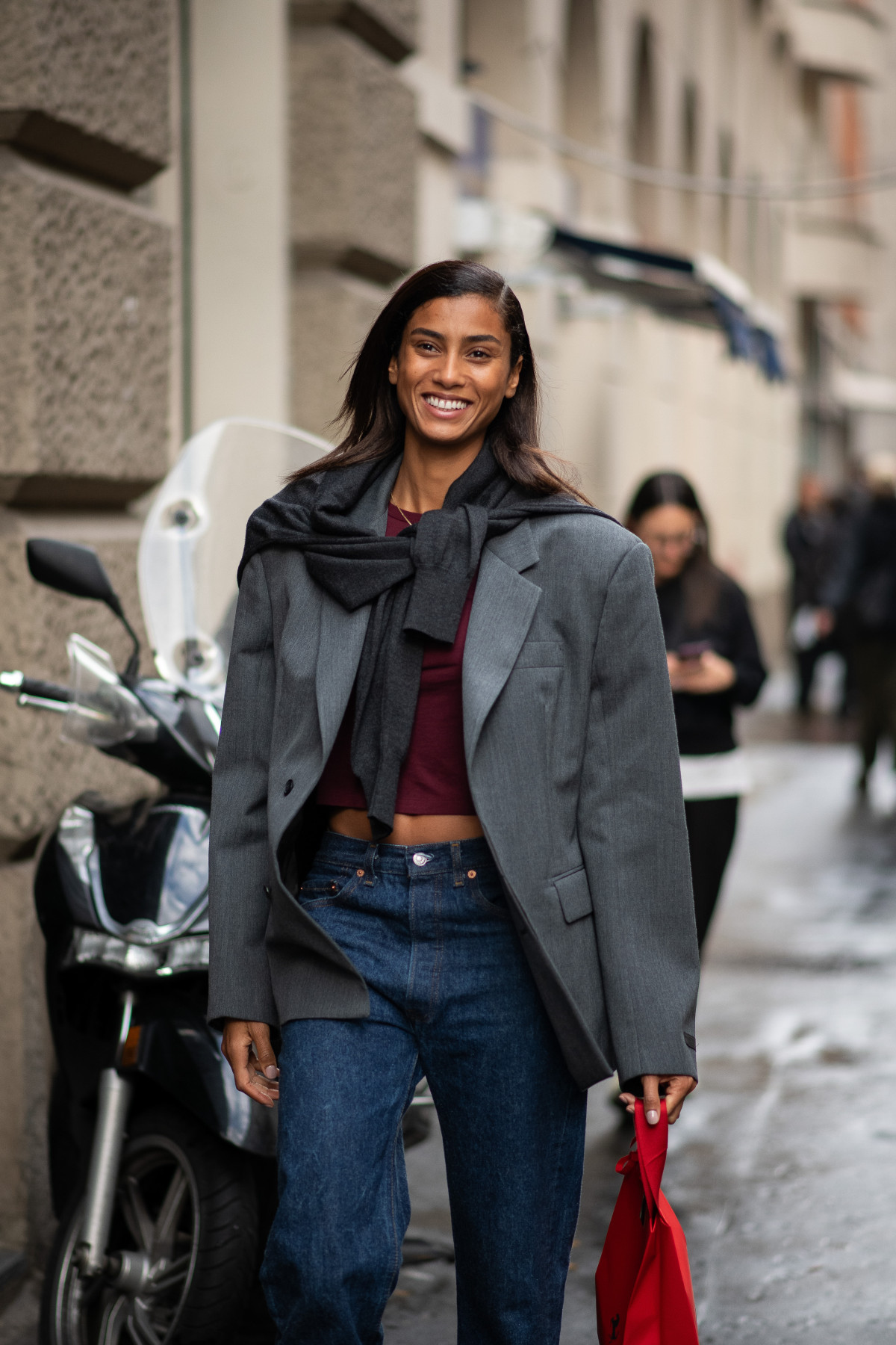 Здавалося б, максимально простий образ, однак саме це й робить його по-справжньому універсальним. Комбінація джинсів і жакета легко підлаштовується під різні сценарії: вдень вона вдало працює з лоферами або балетками й місткою сумкою, а ввечері — з підборами та більш структурованими аксесуарами. За потреби вовняний жакет можна замінити на тренч, легкий блейзер або шкіряну куртку, а джемпер — на тонкий лонгслів чи базову футболку. Формула залишається незмінною, трансформуються лише деталі.