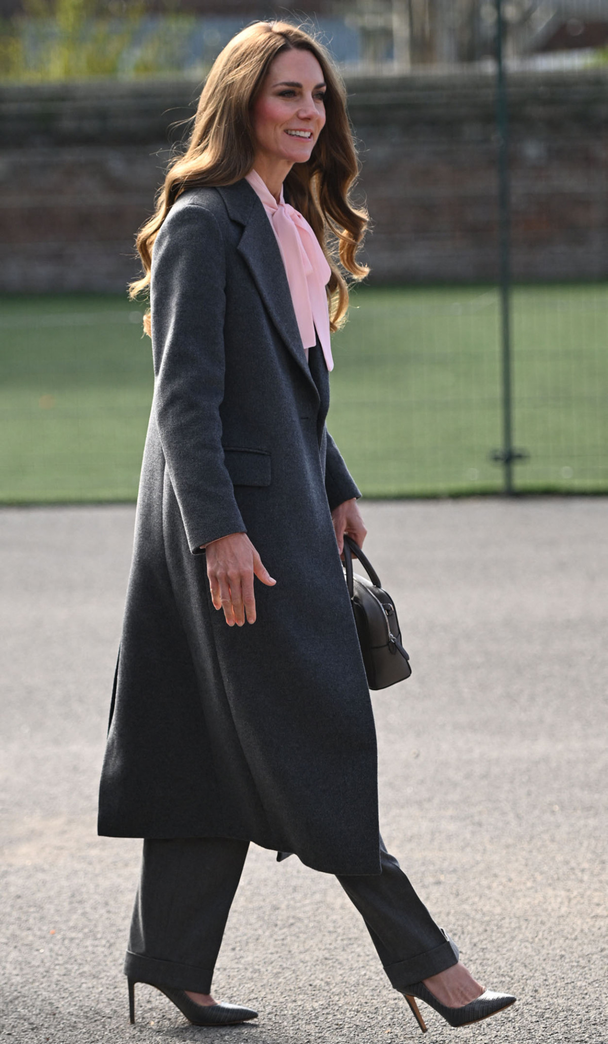 Кейт Міддлтон чудово це розуміє: комір-лавальєр — фінальний штрих образу впевненої жінки. Він оживляє класичний сірий костюм у поєднанні з блузою ніжно-рожевого відтінку або стає яскравим акцентом у максимальній версії з оливково-зеленою замшевою курткою та шоколадною спідницею. Летиція Іспанська, Камала Гарріс і Меган Маркл також дотримуються цієї лінії. Для них комір-лавальєр — жіночий еквівалент чоловічої краватки: символ упевненості та сили в новому прочитанні. Одним словом, ідеальна деталь, щоб вивести офісне поєднання на новий рівень і заявити про свій стиль без жодних слів.