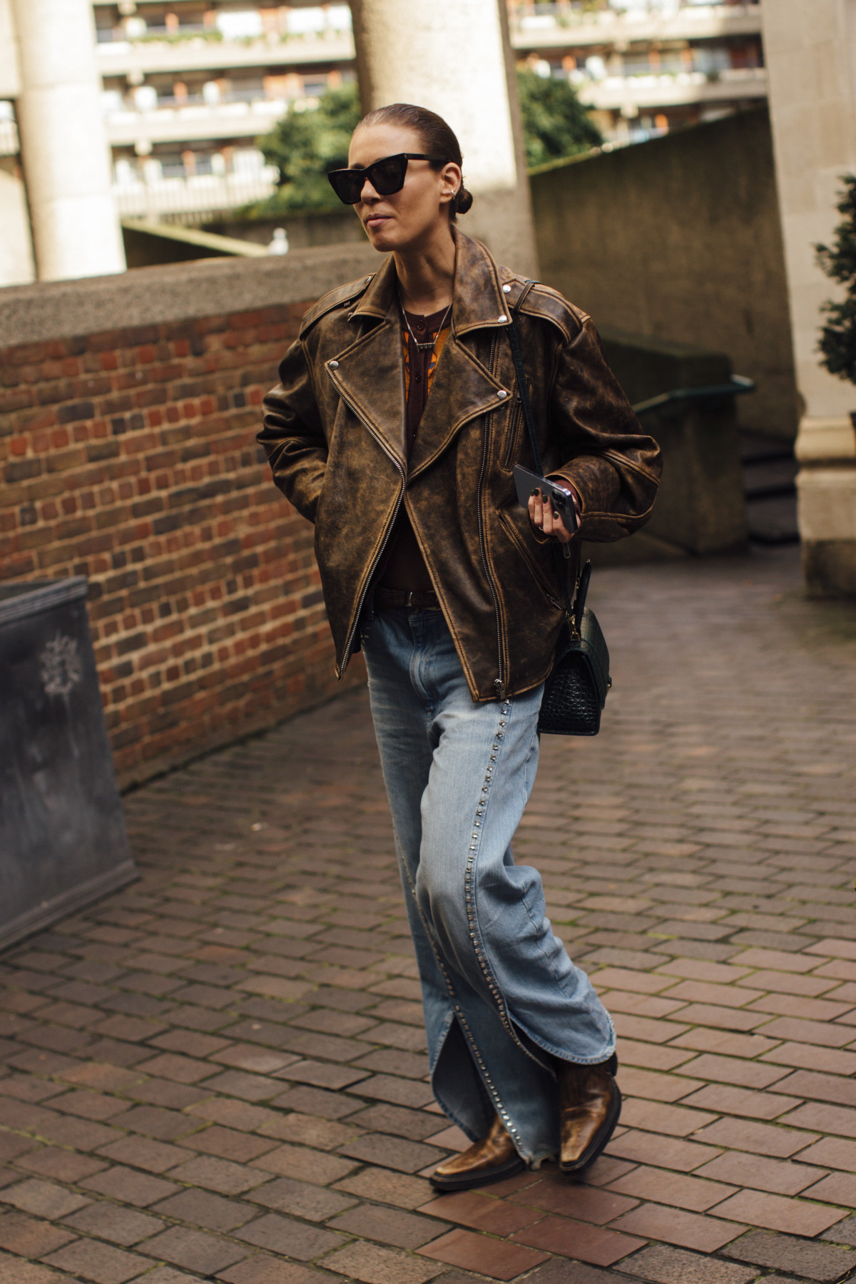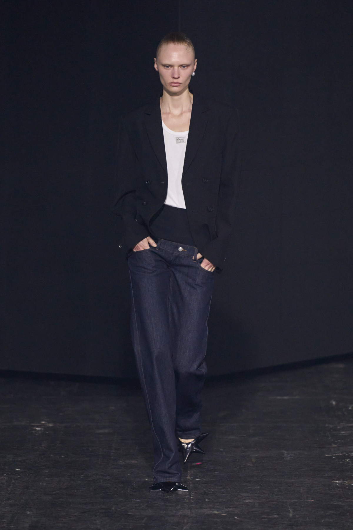 Безумовно, першими, хто показав, як цікаво поєднати подібні джинси в осінню пору, стали світові бренди. Miu Miu обрав завужені варіанти з низькою посадкою, які скомбінував із вкороченими джинсовими жакетами, шубою з екохутра, шкіряними рукавичками та лоферами. Coperni натомість додав до штанів універсальний чорний блейзер із костюмної тканини, а Schiaparelli — модель із деніму в поєднанні з такою ж сорочкою та яскравою краваткою. Тоді ж як Stella McCartney створив образ із джинсами зі шкіряними вставками в ковбойській естетиці та базовим топом із написом.