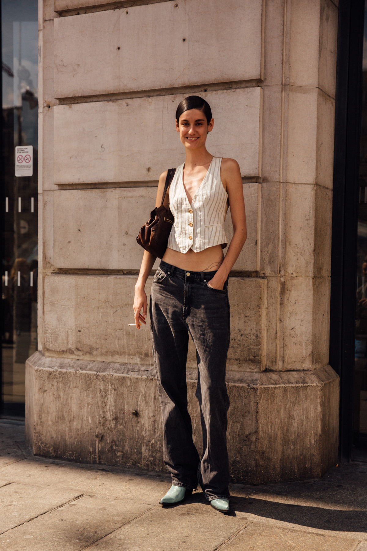 Модниці теж не забарилися зі своїми варіантами стилізацій та показали їх на вулицях під час тижнів моди. Більшість дівчат зупинилися на мішкуватих джинсах, які поєднали з укороченими топами та верхнім одягом — довгими пальтами, екошубами, косухами та бомберами. Дехто ж, навпаки, обирав обтислі штани в комбінації з жилетами, жакетами чи сорочками, які не відкриватимуть живіт. Щодо взуття, то тут зверніть увагу на невисокі чоботи, туфлі із загостреним мисом на підборах, лофери й кросівки.