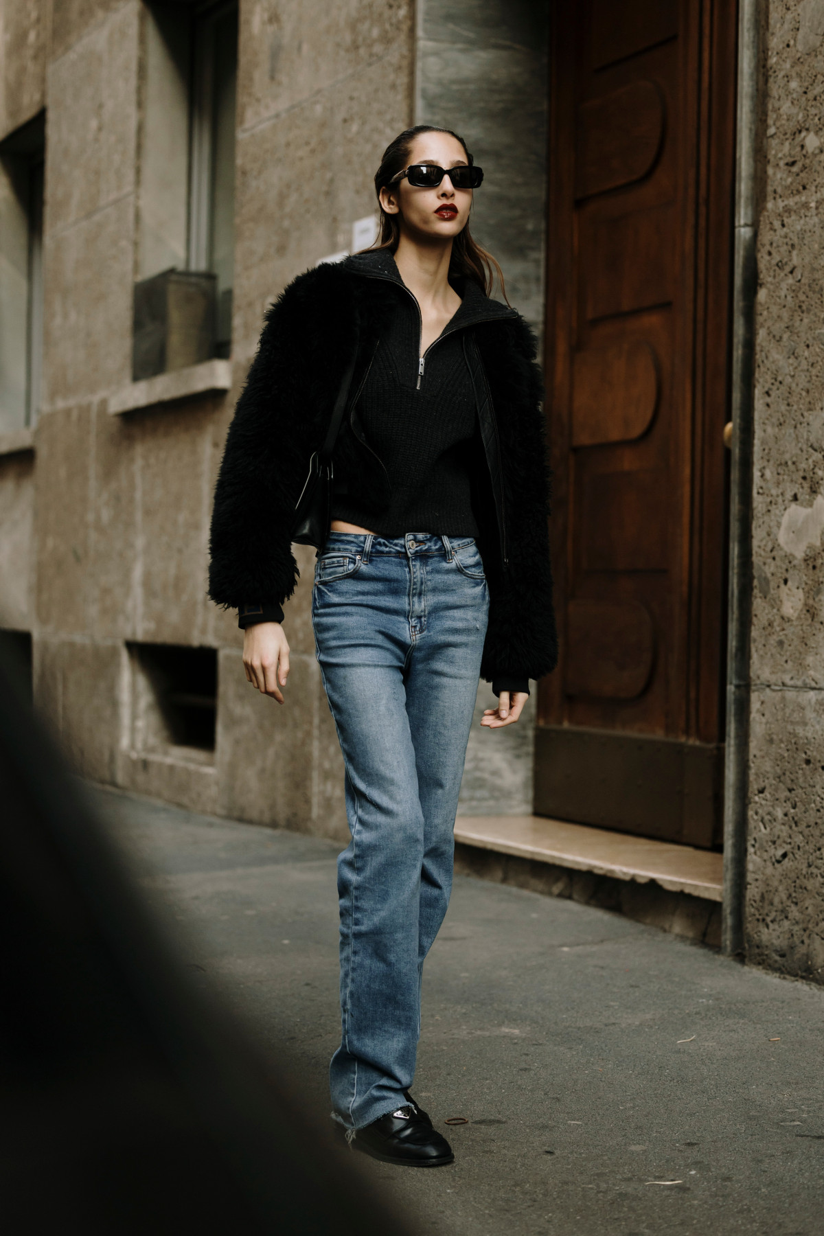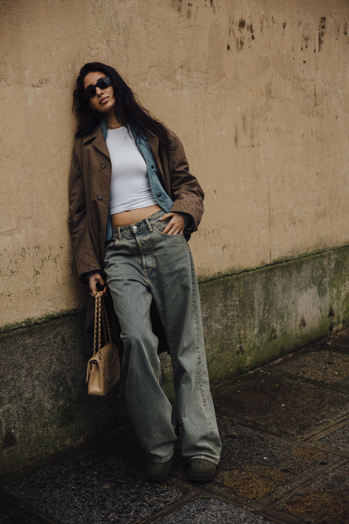 Модниці теж не забарилися зі своїми варіантами стилізацій та показали їх на вулицях під час тижнів моди. Більшість дівчат зупинилися на мішкуватих джинсах, які поєднали з укороченими топами та верхнім одягом — довгими пальтами, екошубами, косухами та бомберами. Дехто ж, навпаки, обирав обтислі штани в комбінації з жилетами, жакетами чи сорочками, які не відкриватимуть живіт. Щодо взуття, то тут зверніть увагу на невисокі чоботи, туфлі із загостреним мисом на підборах, лофери й кросівки.