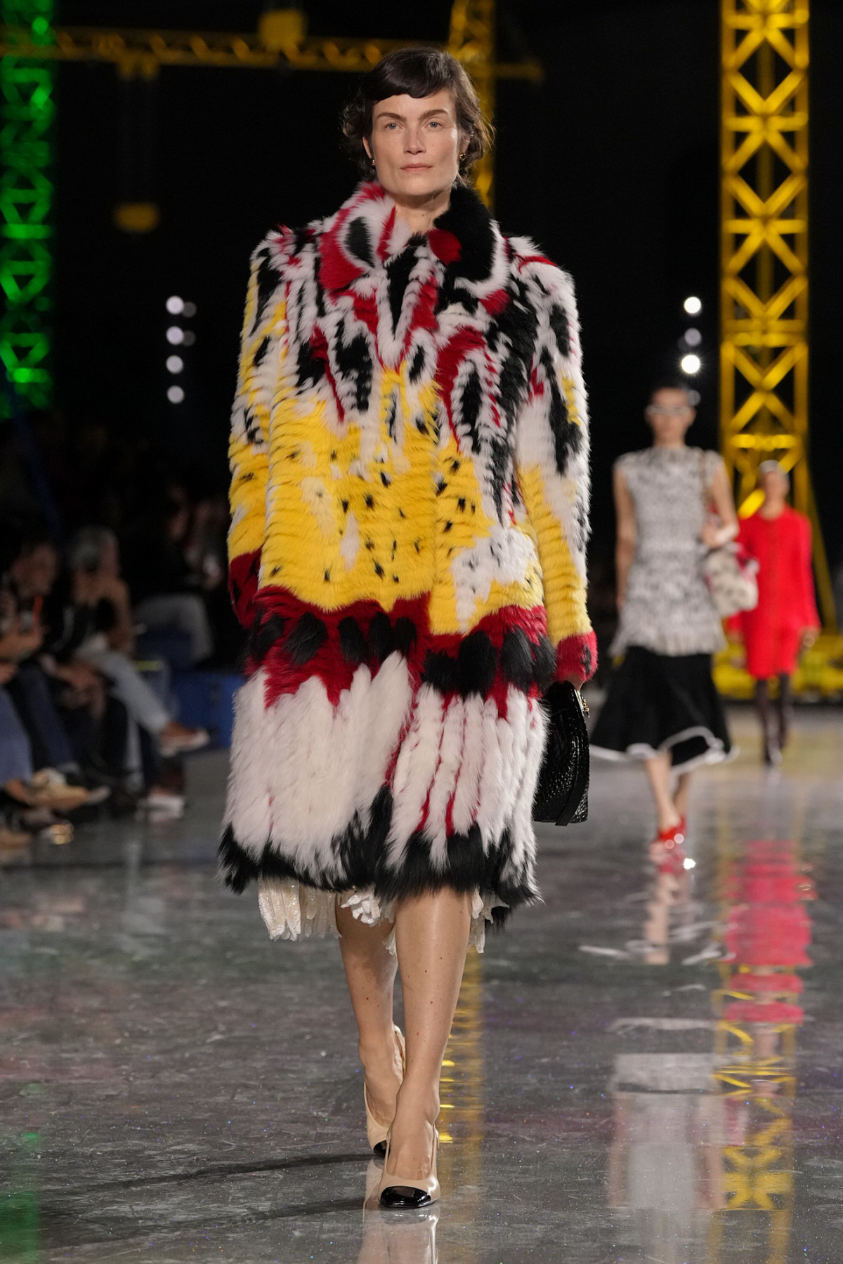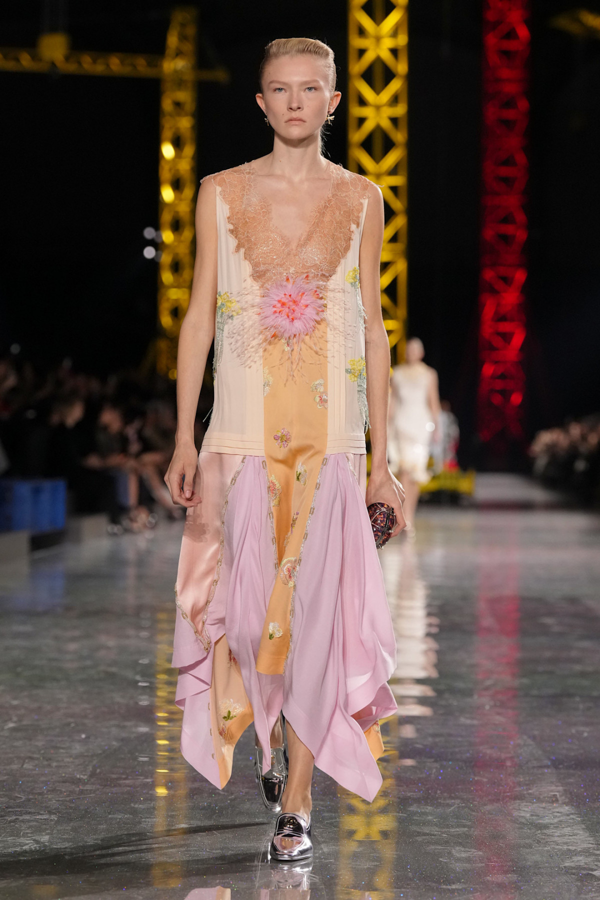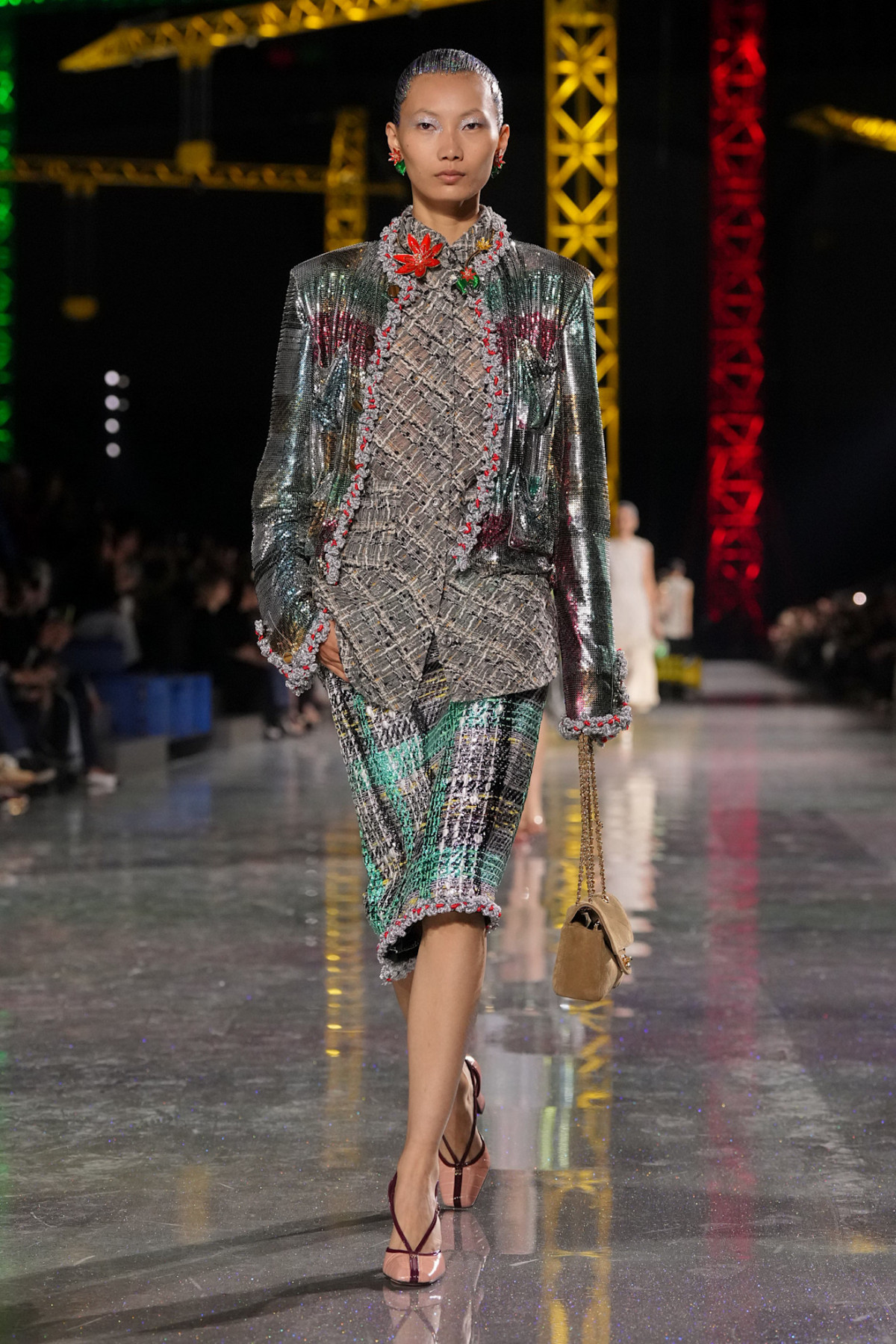 З точки зору кольорів та патернів, які начебто наштовхуються один на одного, колекція дуже насичена та складна, але ще більше її ускладнюють металеві переливи тканини.