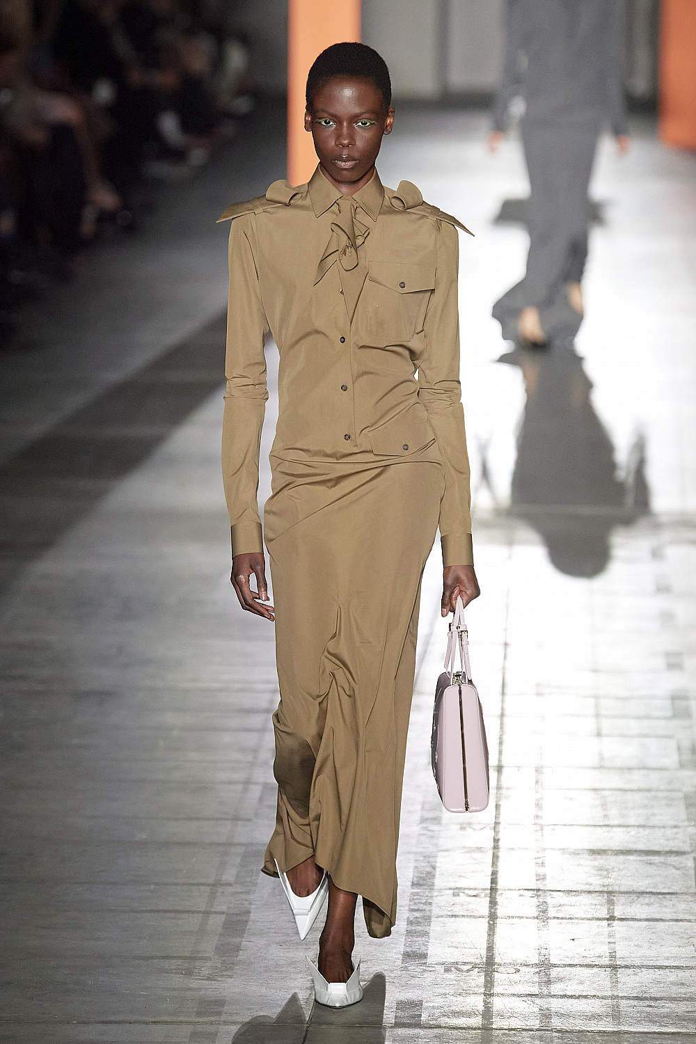 Також актуальний у наших кліматичних широтах образ — з максі-пальто. Дуже довге, трішечки звуженого у стегнах силуету і з досить широкою лінією плеча. Шикарні варіанти є в лінійках Alessandra Rich, Stella McCartney, Jacquemus, Balenciaga, Jil Sander.