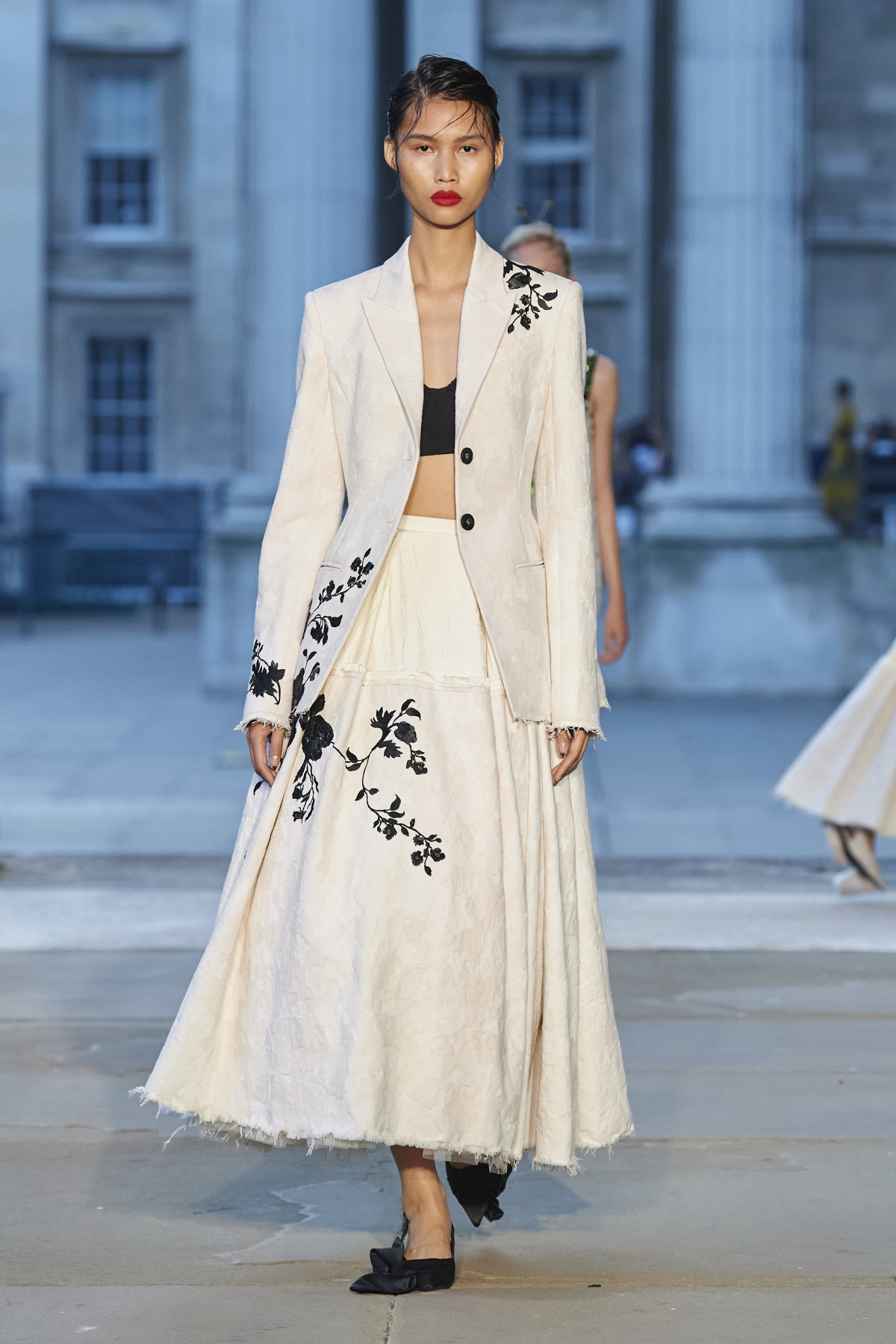 І хоч ідея не нова, дизайнери намагалися представити спідниці А-силуету по-сучасному крізь власне бачення. Зокрема, бренди грали з фактурами, кольорами, принтами та окремими деталями на спідницях. Erdem, до прикладу, презентував модель ніжного бежевого кольору з необробленим подолом і тонким візерунком гілок і квітів. Бренд Carolina Herrera натомість поєднав одразу два тренди та продемонстрував пишну спідницю, виготовлену з напівпрозорої білої тканини.