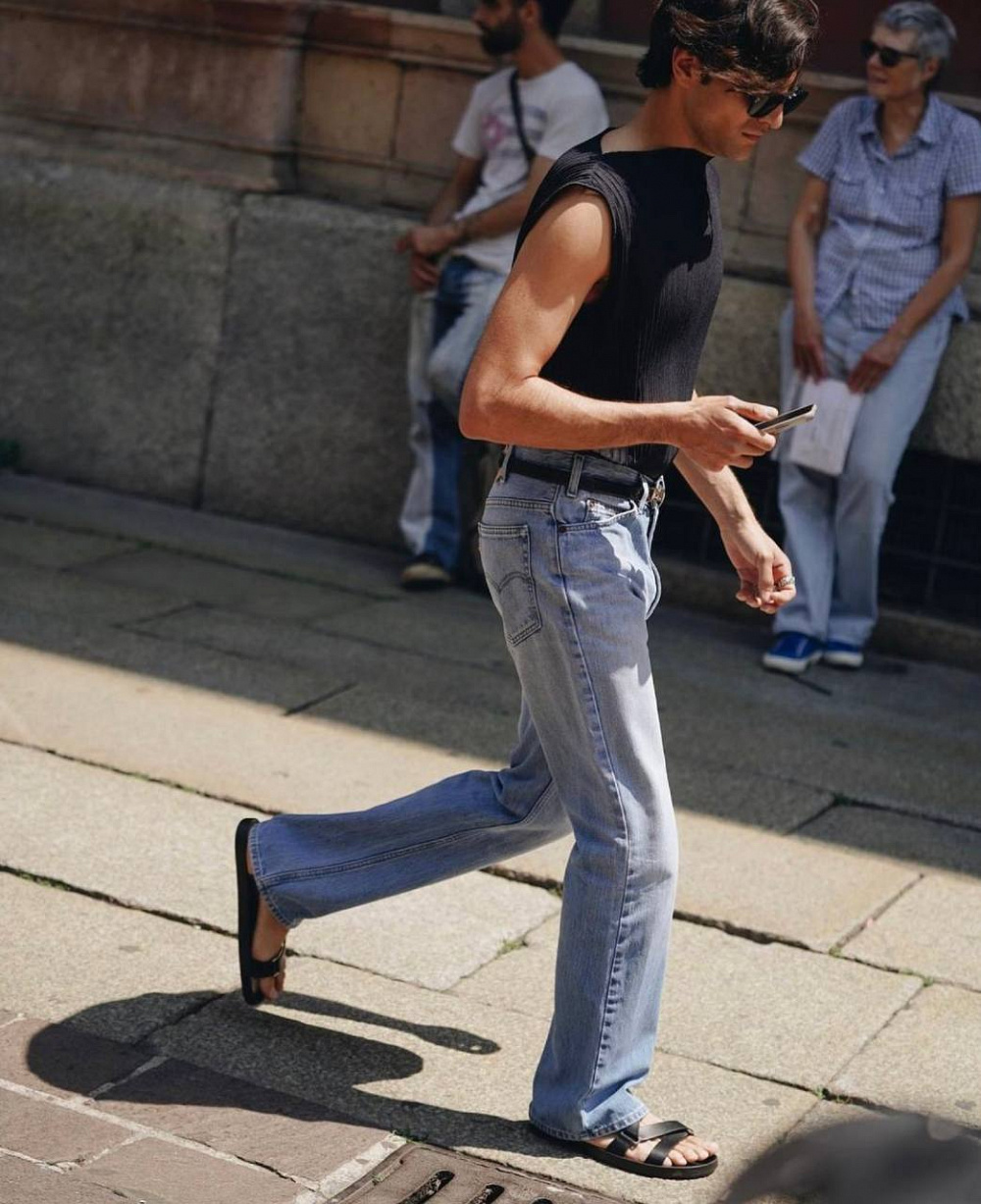 Одягаємо їх тепер не лише в тренажерний зал, а і в місто — з класичними штанами, широкими джинсами абощо. Головне правило — низ має бути закритим. Це потрібно, щоб відійти від стилістики пляжу.