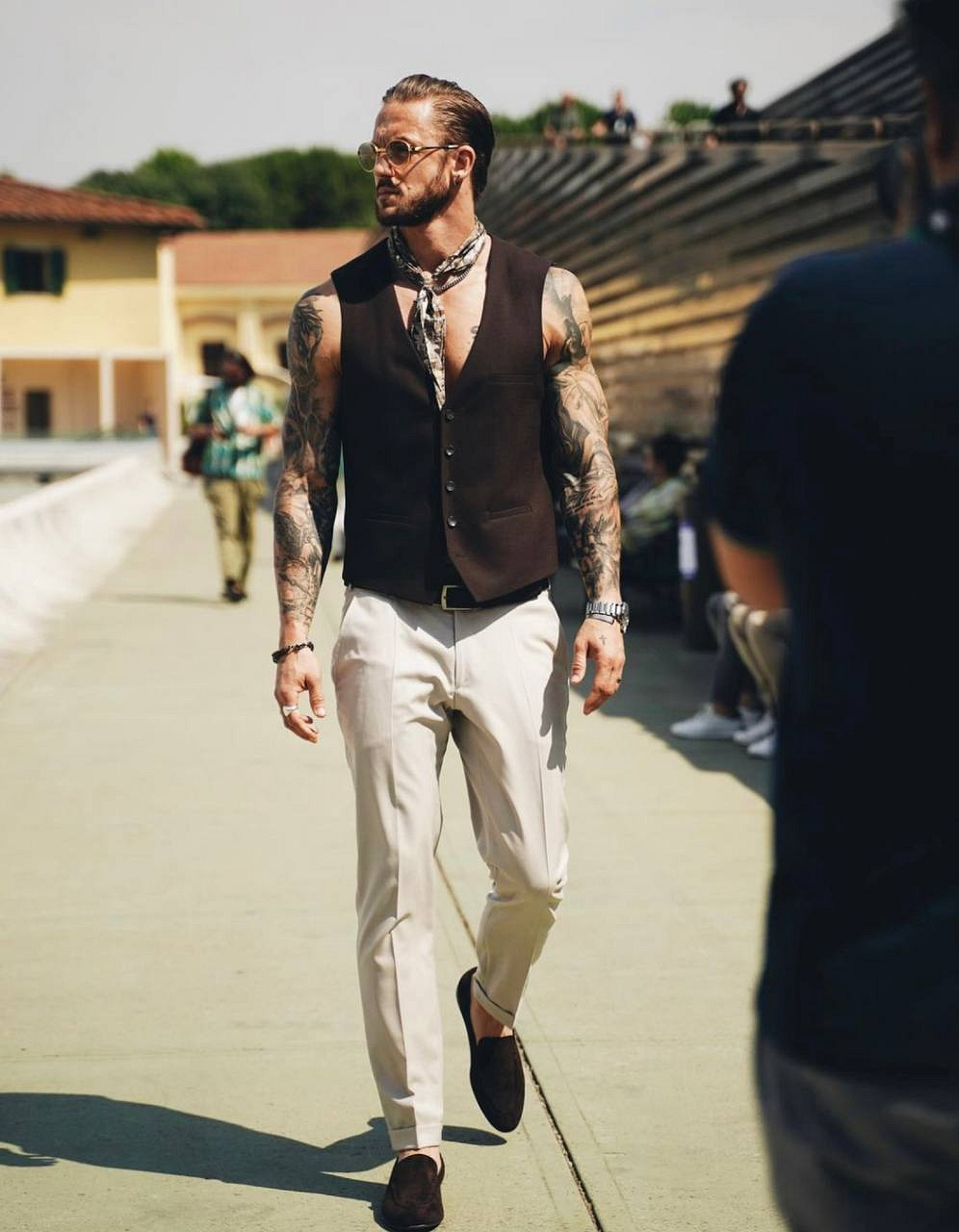 Такі завжди актуальні та позачасові елементи, як жакет і жилет, виглядатимуть дуже стильно, якщо одягнути їх на голе тіло. Особливо доречно цей прийом виглядає влітку з лляними виробами.