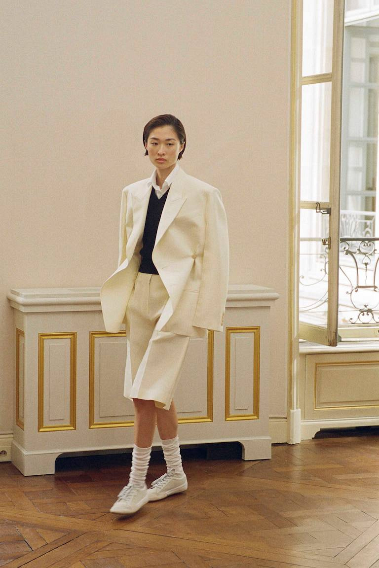 Нова колекція літо-2023, яку бренд презентував на показі у рамках Паризького тижня моди, як завжди, вирізнялася балансом між комфортом і суворістю. Дефіле відкрила модель у білій сорочці та жакеті вільного крою, які дизайнерки сміливо поєднали з боксерами і в’єтнамками.