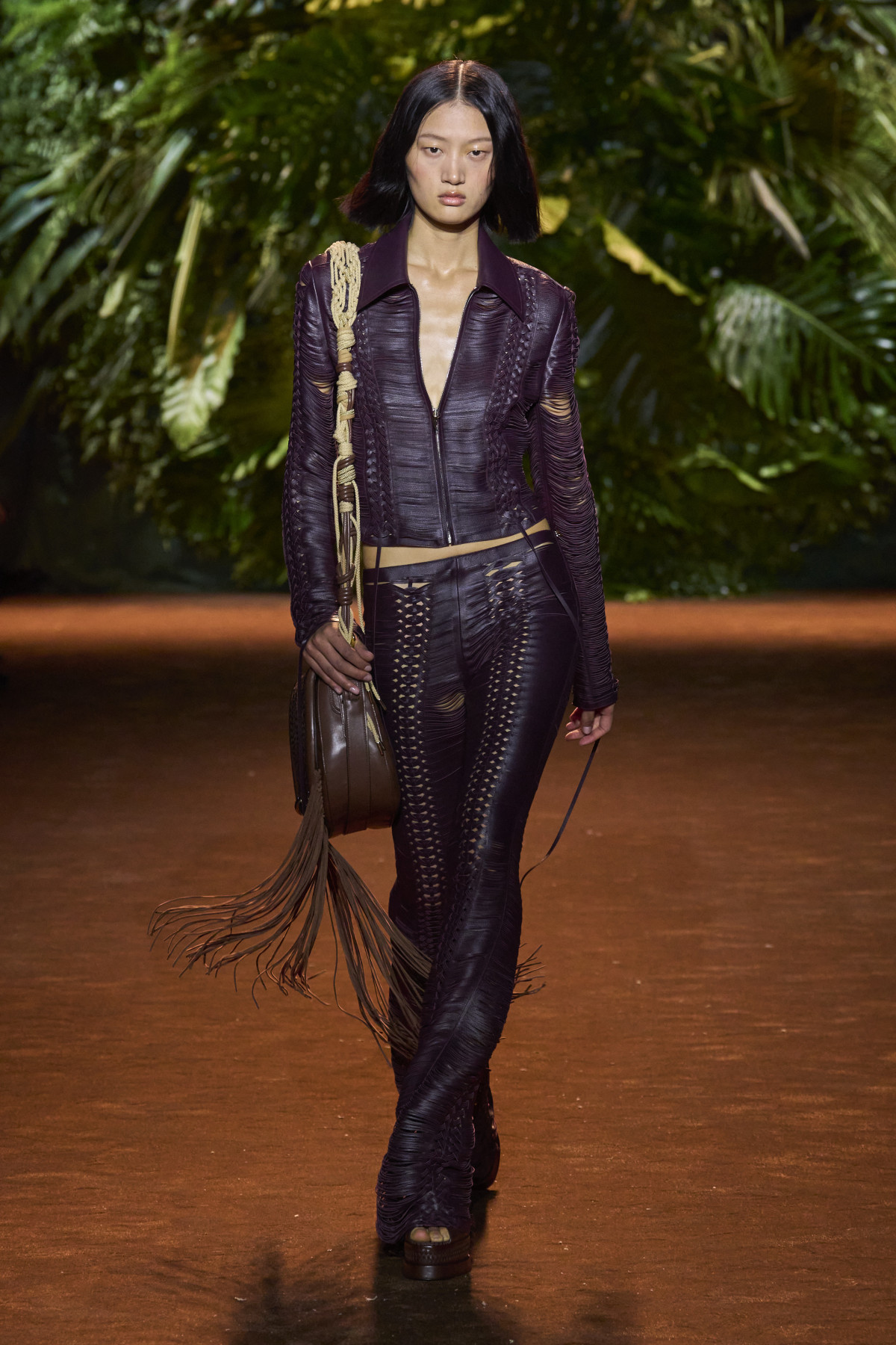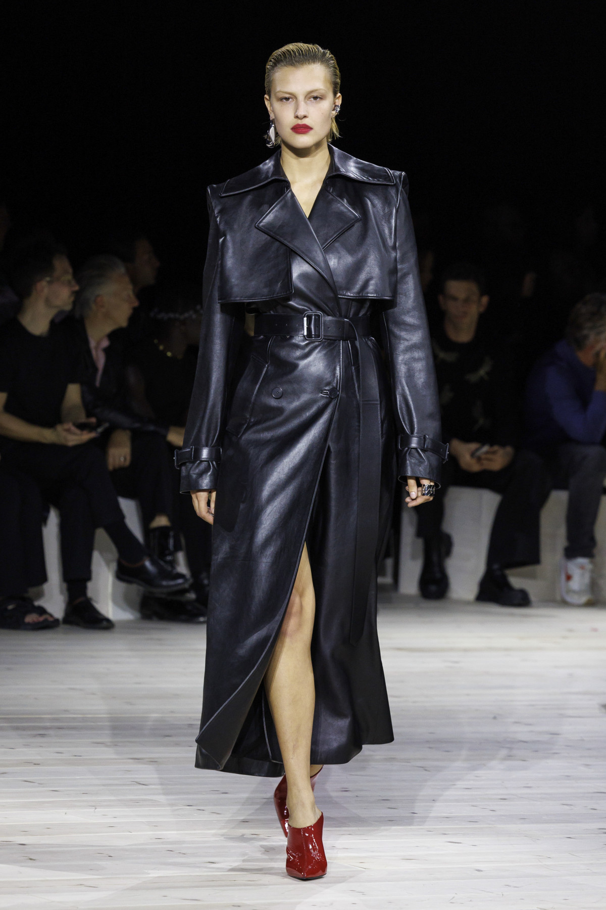 У нових колекціях брендів шкіра з’явилася в багатьох різних варіаціях, і однією з них стали, якраз таки, тренчі. Тут модельєри не обмежували свою фантазію та креативність і презентували як базові моделі чорного кольору, так і варіанти з об’ємними елементами, анімалістичним принтом чи, до прикладу, тренчі яскравих відтінків: зеленого, ніжно-блакитного, жовтого, вишневого тощо.