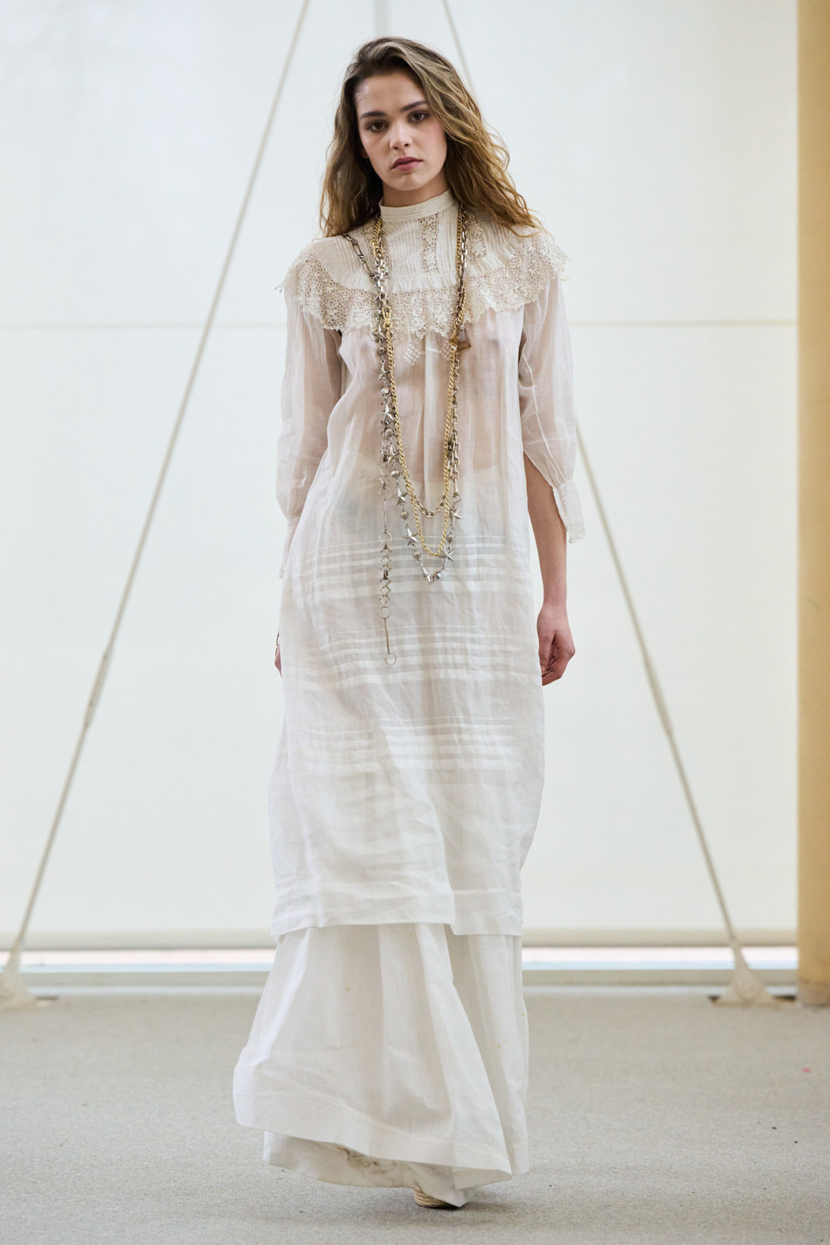 Деякі сукні на подіумах Парижу виглядали так, наче створені у минулих століттях – дуже ніжно та романтично. Корсети або легкі літні туніки характерні для цього тренду.
