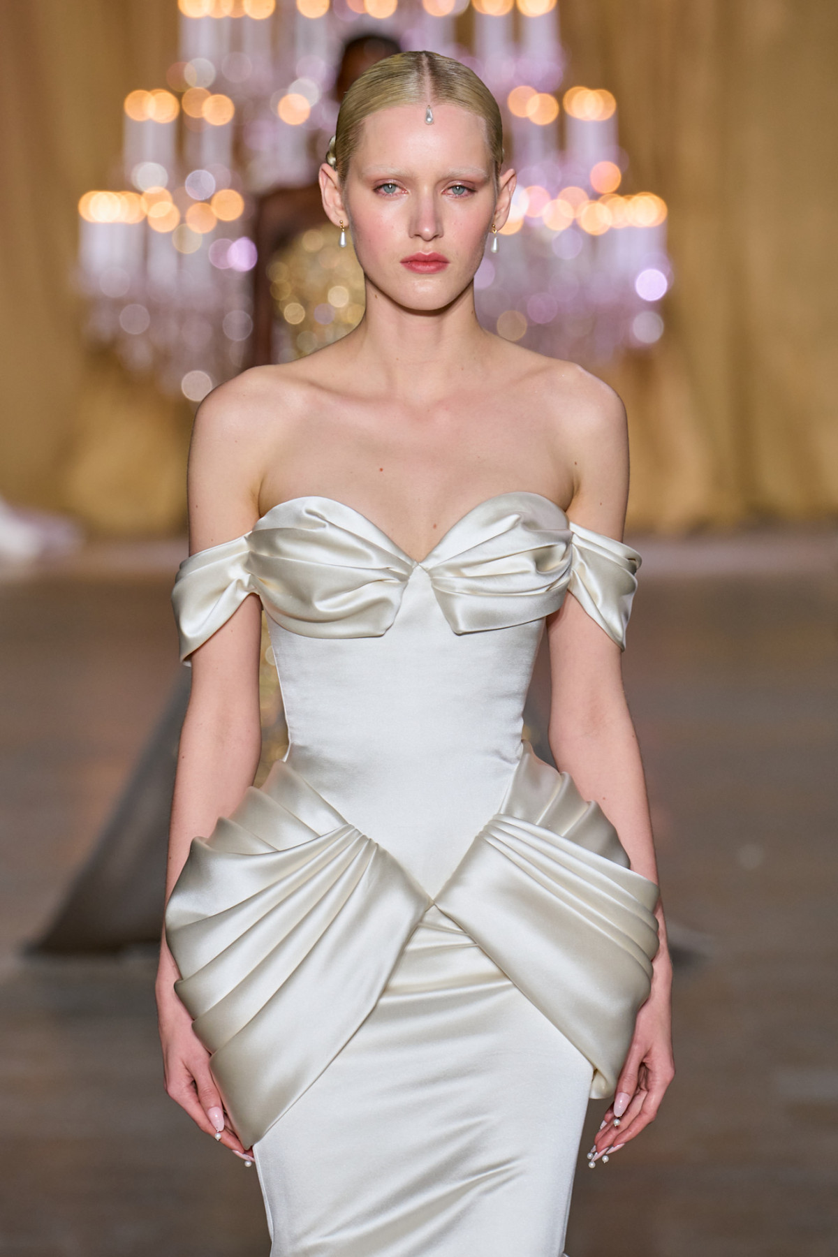 Загальний тренд на талію, що спускається на стегна, можна побачити на всіх подіумах світу. Інша сторона цього тренду – акцент на стегнах, що робиться за допомогою драпірування або додавання об’єму чимось на кшталт тюрнюрів або пан’є.