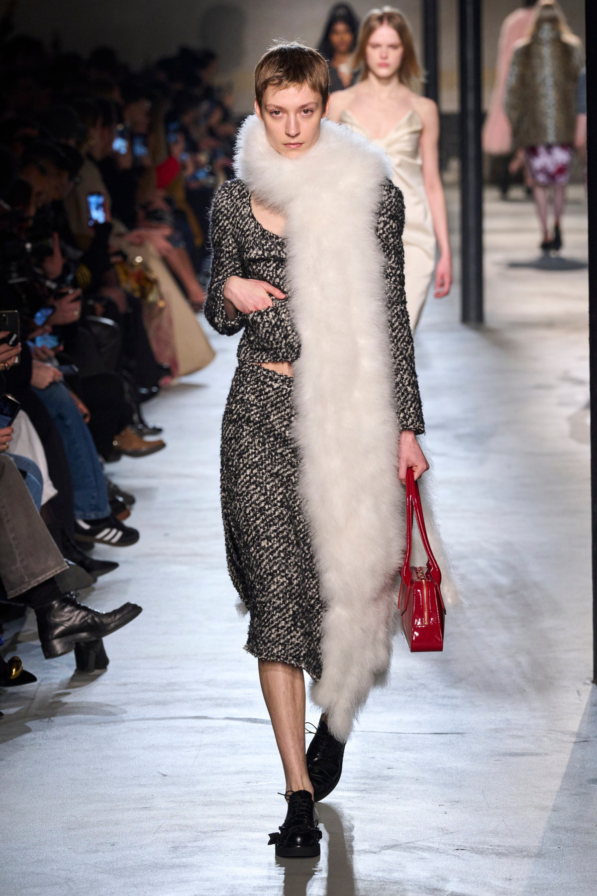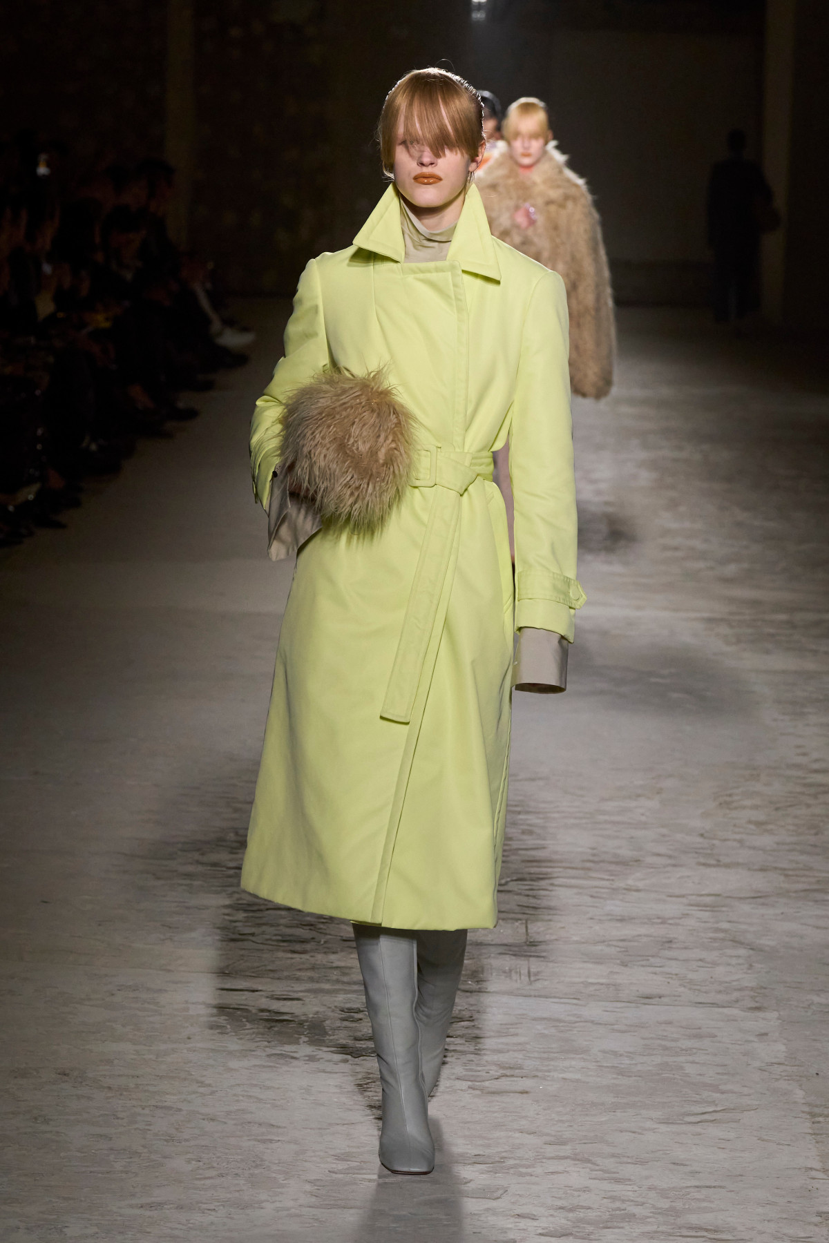 Фаворитом дизайнерів у цьому сезоні стали хутряні сумки. Їх представили у вигляді масивних клатчів, моделей на громіздкому ланцюжку, а також bowler bag — варіантів із плоским дном і заокругленим верхом, які мали популярність у 90-х. Щодо поєднань, то тут немає ніяких правил: подібні сумки можна стилізувати як з романтичними драпірованими сукнями або мереживним вбранням у стилі бохо-шику, так і зі шкіряними тренчами, граючи фактурами, або ж іншими хутряними елементами гардероба. Свої ідеальні варіанти шукаємо на подіумах Stella McCartney, Chloe, Dries Van Noten, Jil Sander та інших.