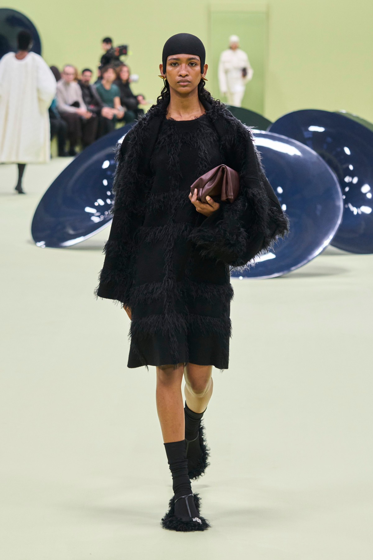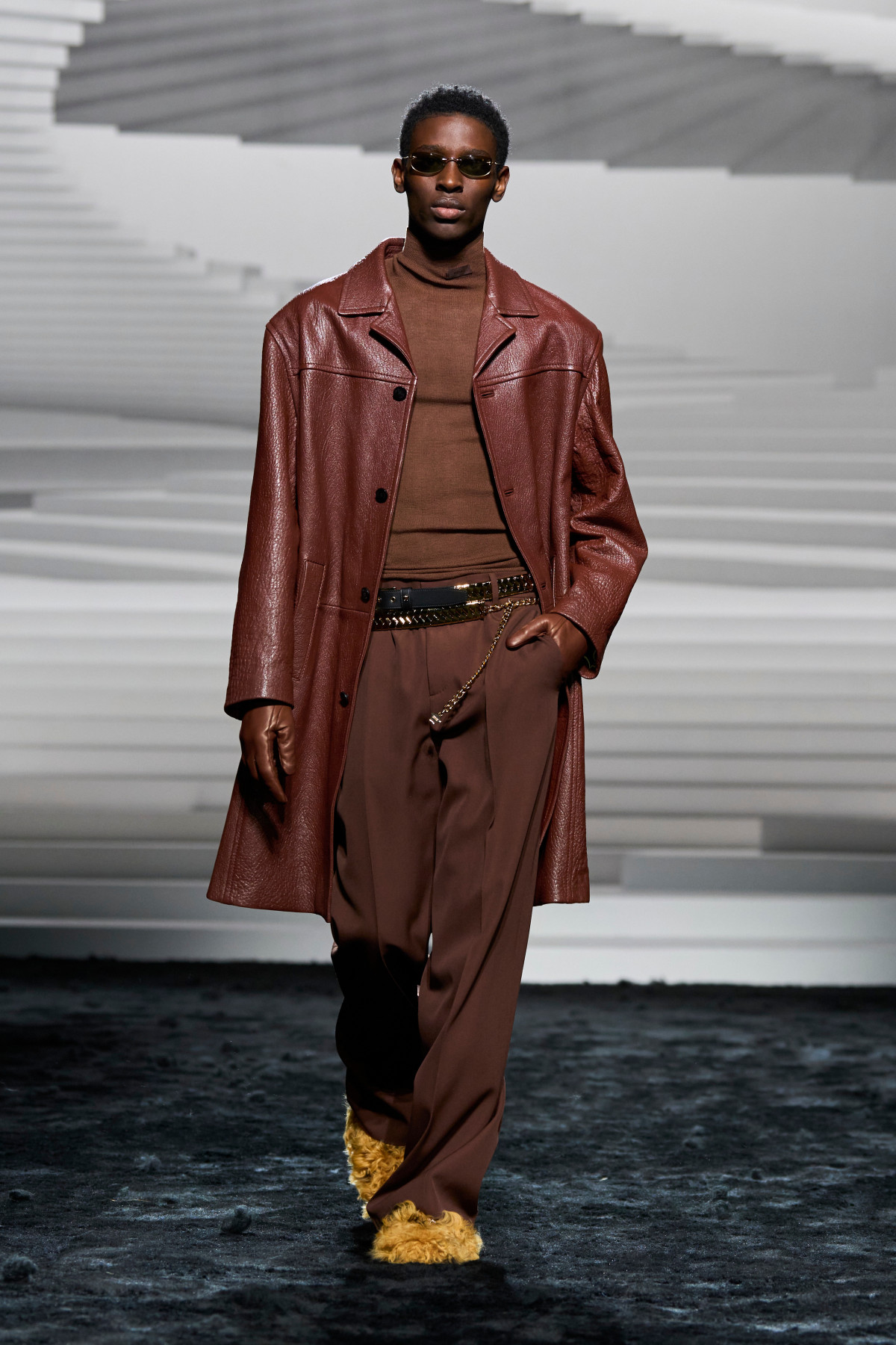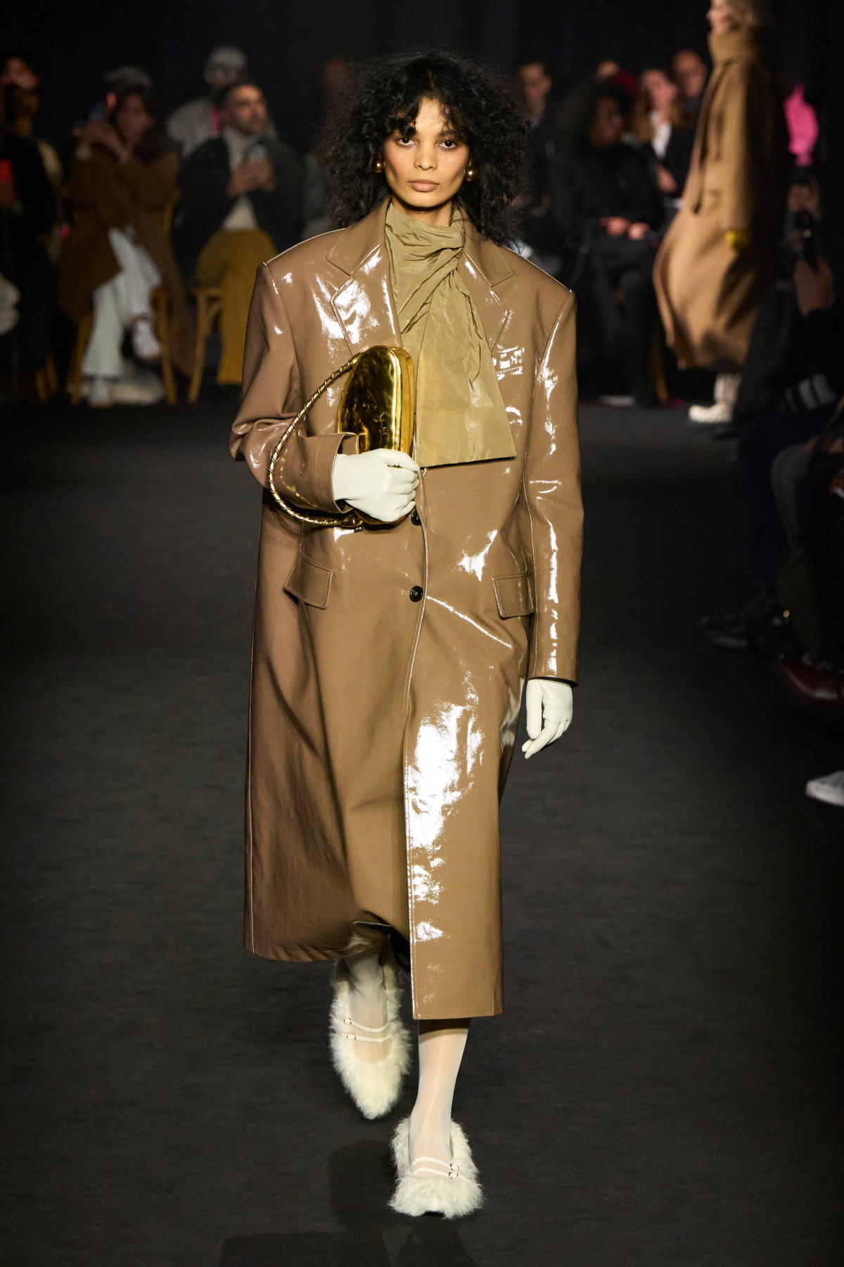 Тепер — до більш практичних інтерпретацій хутра на взутті. Головним фаворитом брендів цього сезону стали класичні балетки та мері джейн. Зокрема, Carven зробив акцент на яскравих рожевих відтінках, Versace — на жовтих, а MSGM та Simone Rocha — на більш нейтральних молочних і коричневих. Їх дизайнери поєднали з класичними брючними костюмами та напівпрозорими сукнями, лакованими тренчами й довгими пальтами. Натомість високі чоботи з хутром з’явилися на подіумах KNWLS та Scervino.