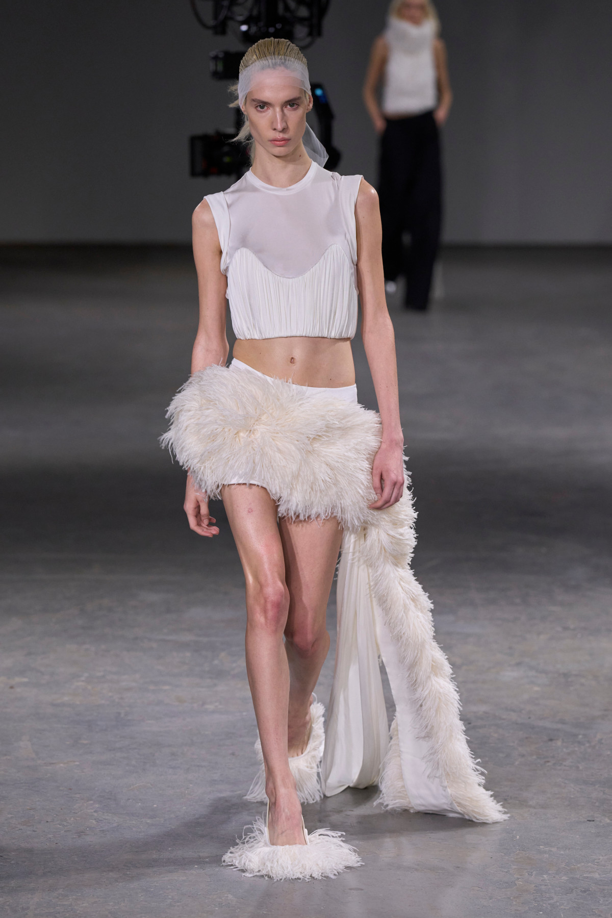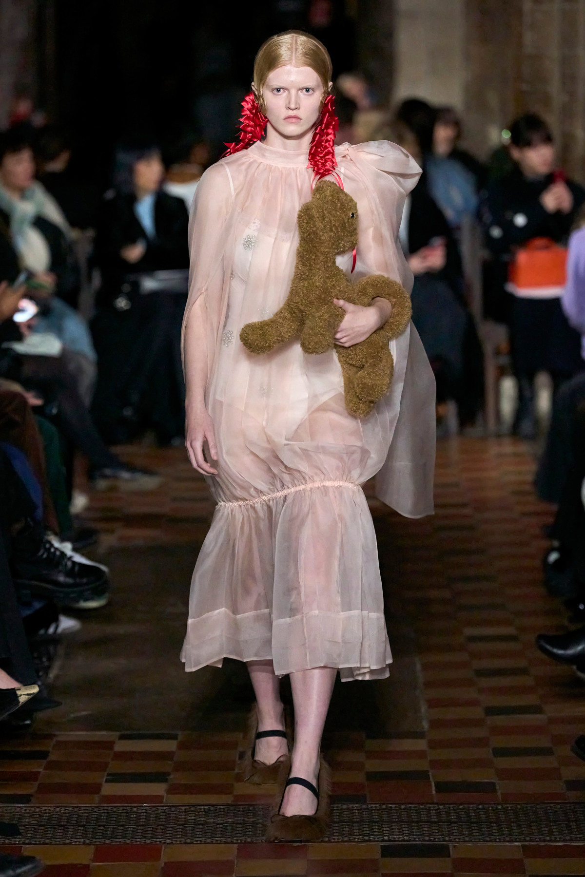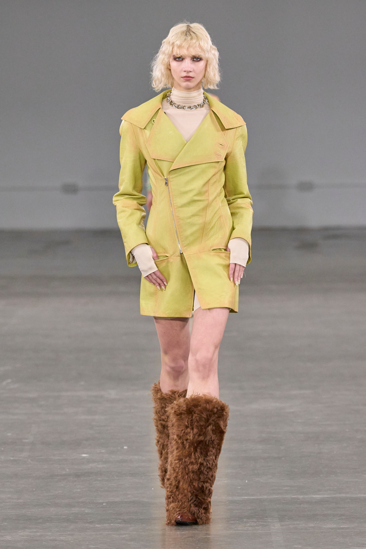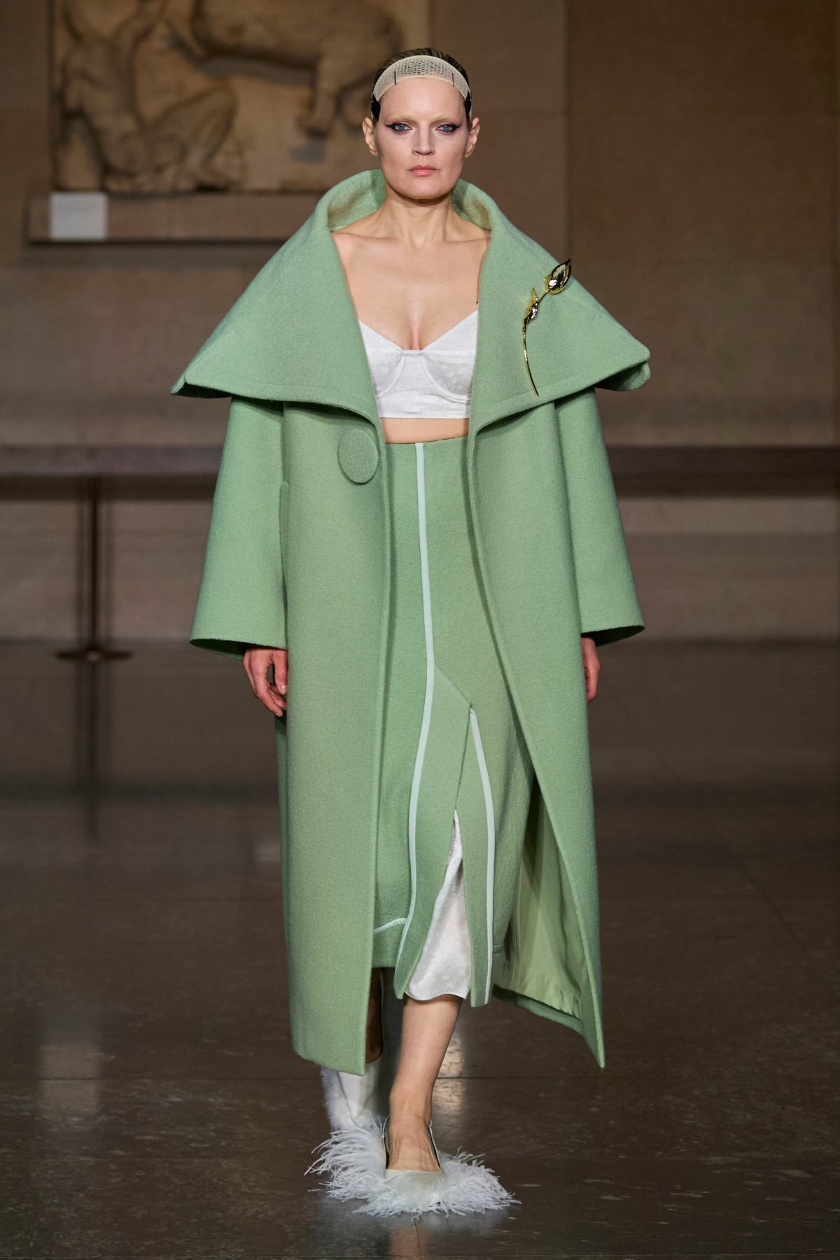 Тепер — до більш практичних інтерпретацій хутра на взутті. Головним фаворитом брендів цього сезону стали класичні балетки та мері джейн. Зокрема, Carven зробив акцент на яскравих рожевих відтінках, Versace — на жовтих, а MSGM та Simone Rocha — на більш нейтральних молочних і коричневих. Їх дизайнери поєднали з класичними брючними костюмами та напівпрозорими сукнями, лакованими тренчами й довгими пальтами. Натомість високі чоботи з хутром з’явилися на подіумах KNWLS та Scervino.