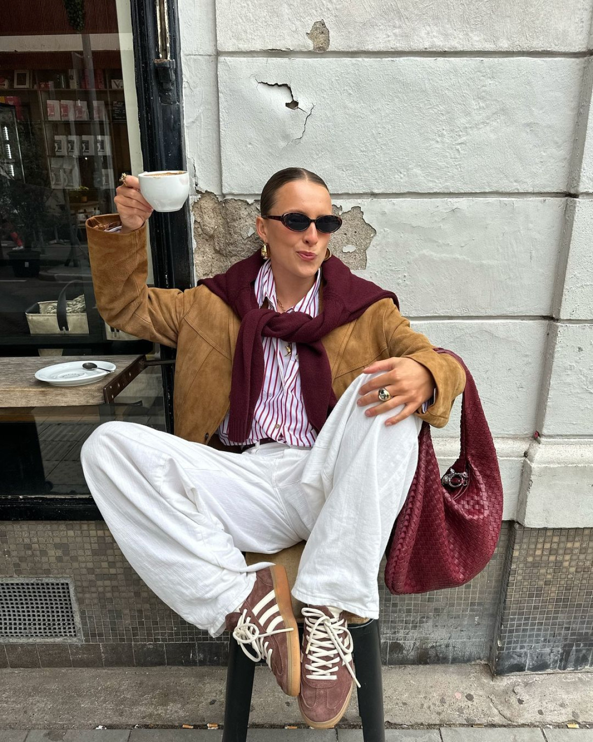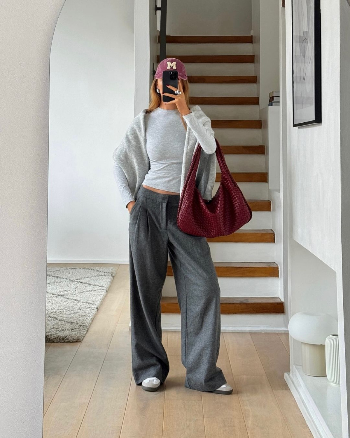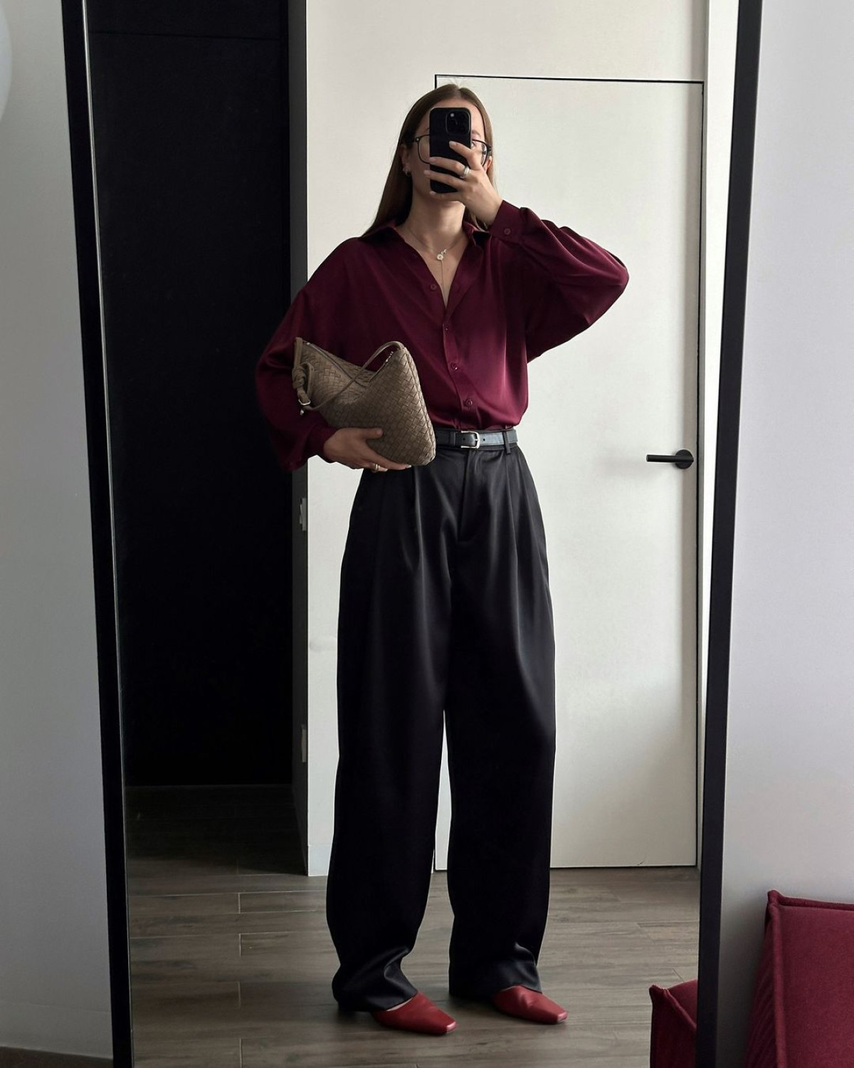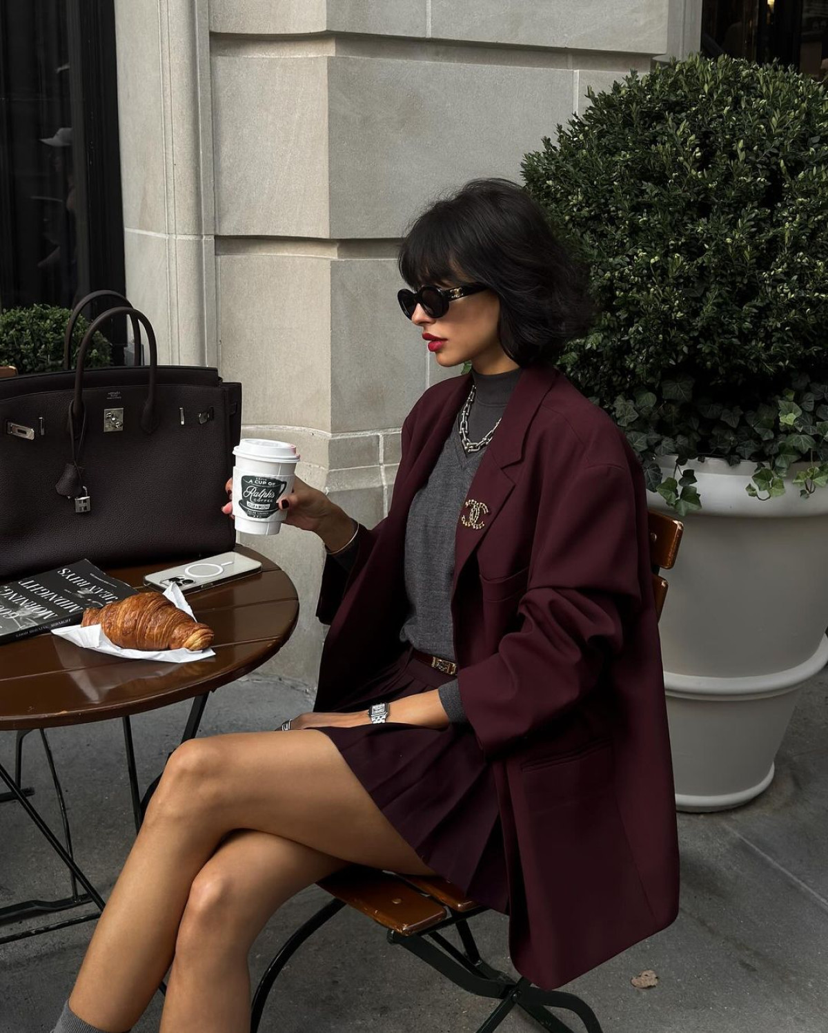 Тепер же перейдемо до практичного використання цього кольору й тих модних поєднань, якими наповнили свій осінній сезон Instagram-блогерки. Одним з основних фаворитів стали жакети, пальта й кардигани — увесь затишний і теплий одяг, який не лише виділятиме образ, а й даруватиме тепло в прохолодну осінню погоду. Їх модниці доповнювали джинсами, спортивними штанами чи більш офіційними класичними брюками та мініспідницями. Інші ж інфлюенсерки зробили ставку на невеликі вкраплення бургунді: бра, що видніється з-під сорочки, масивний шкіряний клатч, бейсболку чи високі шкарпетки в поєднанні з лоферами. Ви можете обрати той варіант, який буде комфортним саме вам.