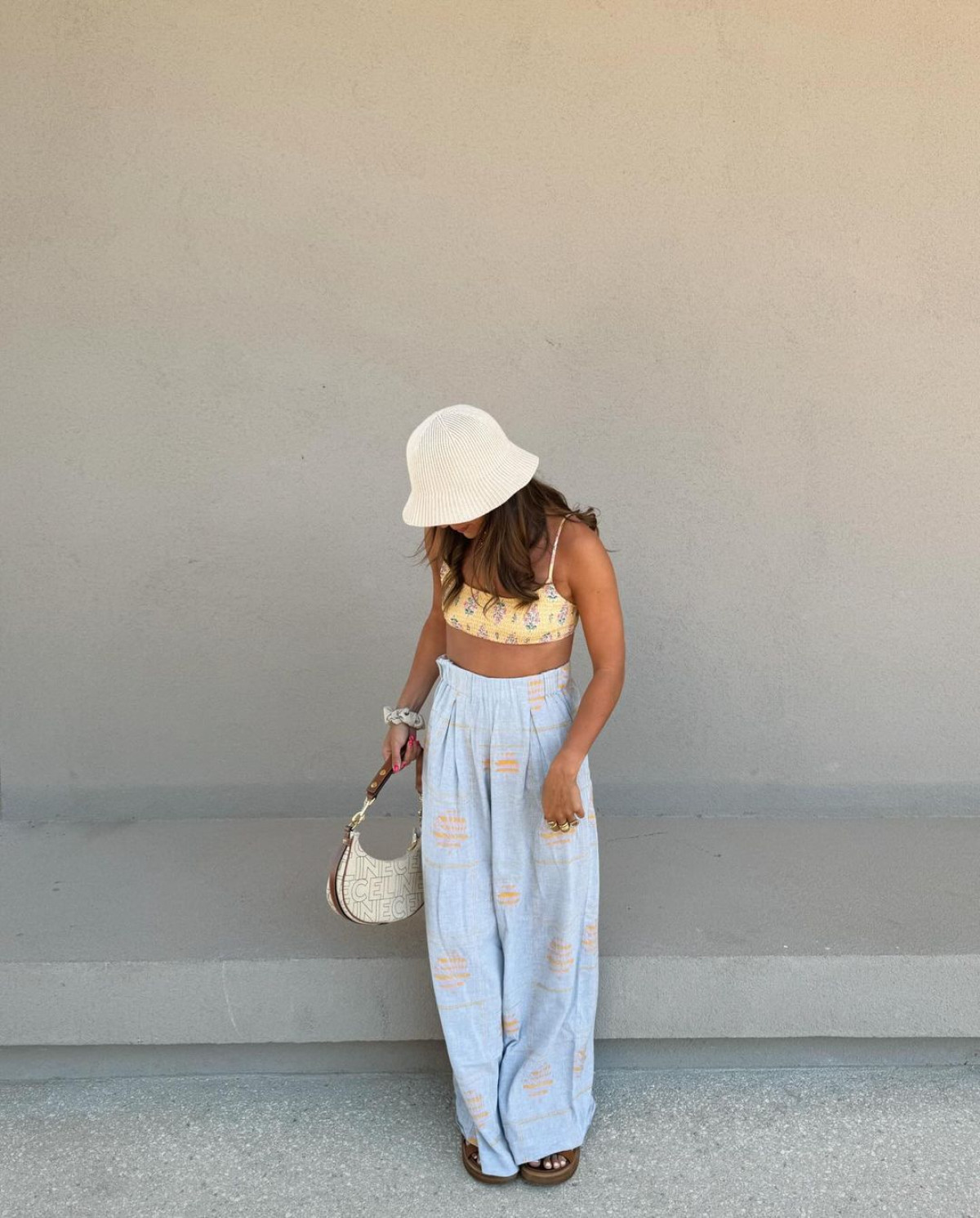 Комбінуйте в’язані головні убори в пляжних виходах з купальниками, легкими літніми костюмами з шортами, топами й спідницями максі, а також футболками й трендовими в цьому сезоні піжамними штанами.