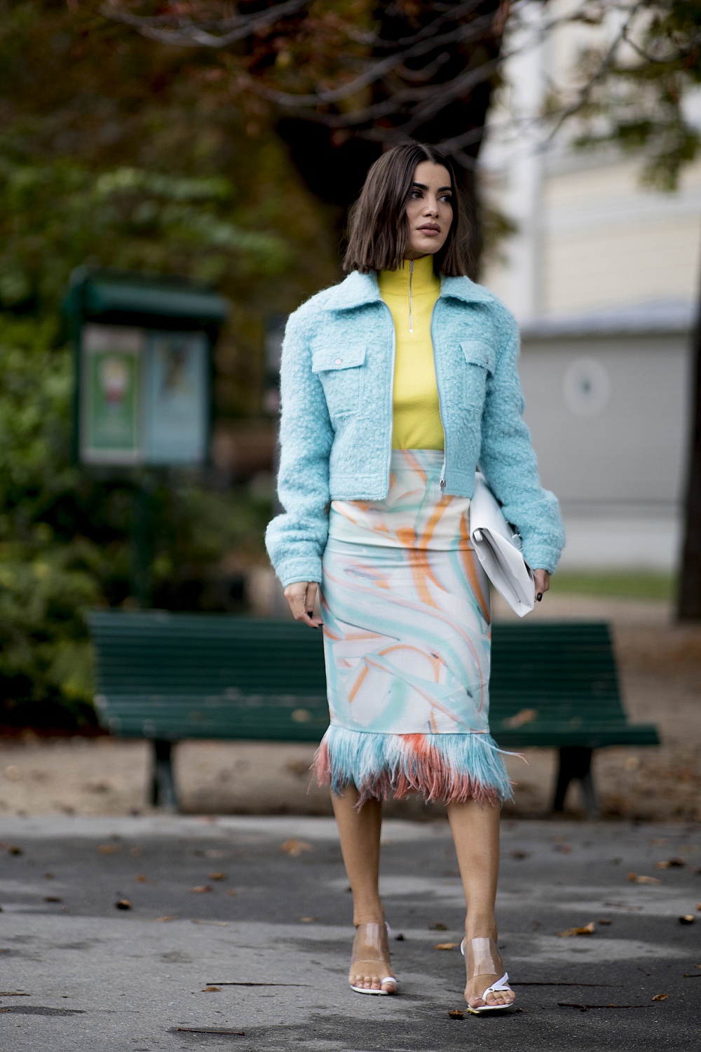 Последние несколько сезонов самым актуальным пиджаком считался объемный (желательно клетчатый), словно снятый с мужского плеча. Звезды street style дополняли его широким поясом или набрасывали поверх платьев-комбинаций. Теперь же на модном горизонте появился новый предмет обожания: укороченный жакет. Такая модель — находка для тех, кто хочет подчеркнуть талию. Уместен как в офисе, так и на встрече с подругами. Модницы на улицах Парижа носят его в паре с высокими брюками, а самые смелые надевают на голое тело, чтобы показать свой идеальный пресс.