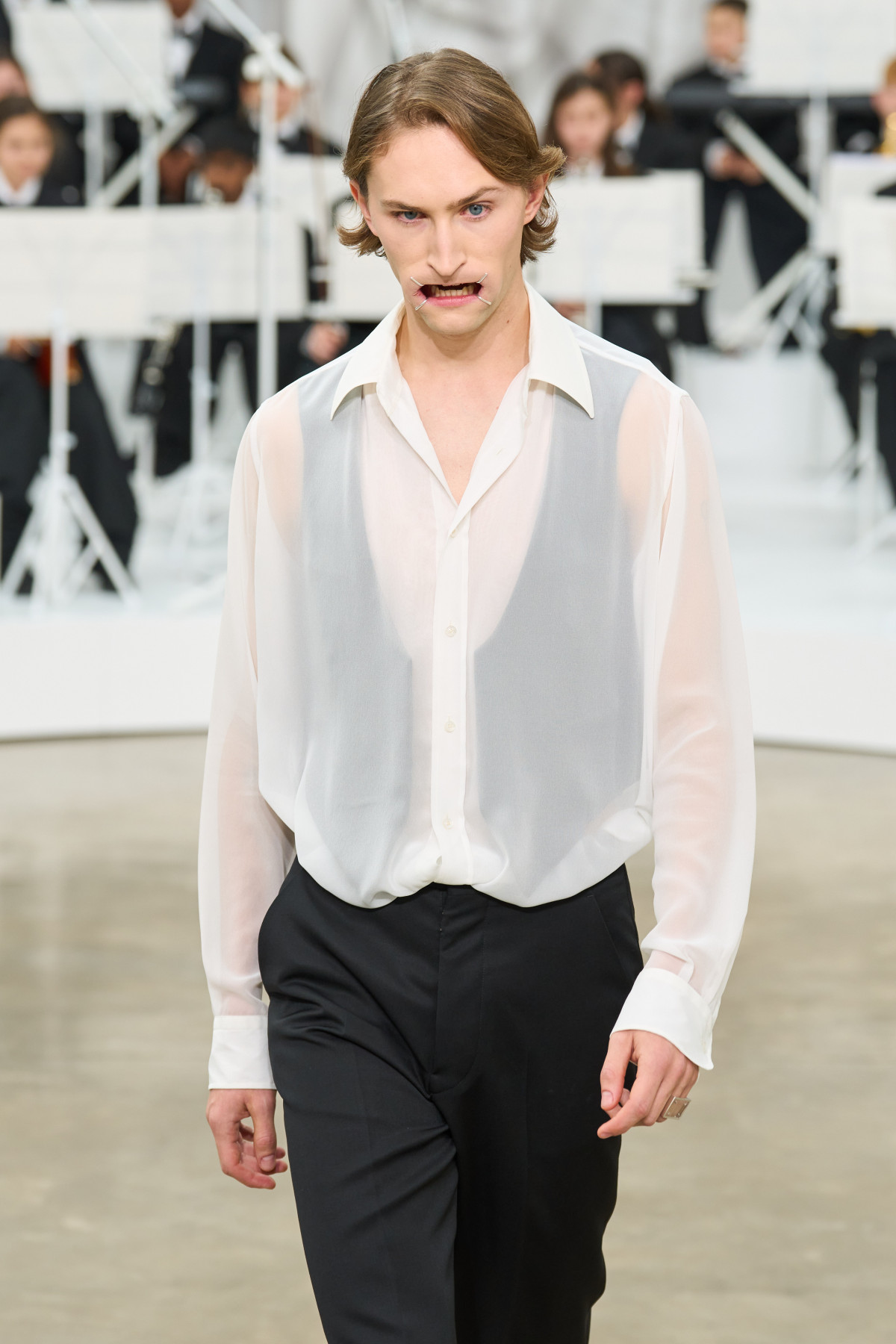 Інші бренди також захопилися романтичною естетикою та пограли з декоративними деталями. До прикладу, Saint Laurent продемонстрував сорочки із масивними бантами на шиї, Carolina Herrera — з мініатюрними поміж ґудзиками, тоді ж як Jacquemus — із розсипом перлин.