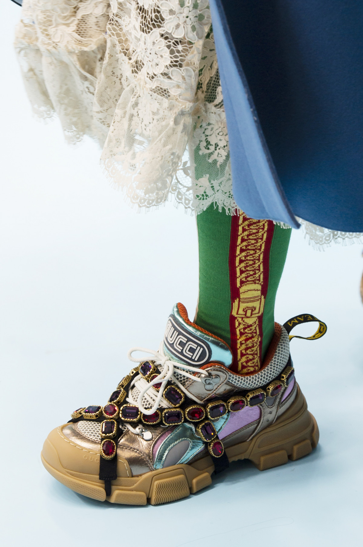 На подиумах осень-зима 2018/2019 они царили повсюду. Самые желанные - расшитые камнями Gucci, в которых Ренессанс сочетается со стилем Нью-Йорка 80-х. У Джона Гальяно в Margiela ' кроссовки космонавта, гипертрофированные настолько, чтобы было удобно ходить даже по поверхности Луны. Берите в голографическом металлике, который подчеркивает настроение футуризма. Versace и MSGM взяли курс на ретро 80-х и 90-х: их кроссовки - словно обувь школьников тех лет. Недаром Донателла Версаче предлагает сочетать их с шотландской клеткой.