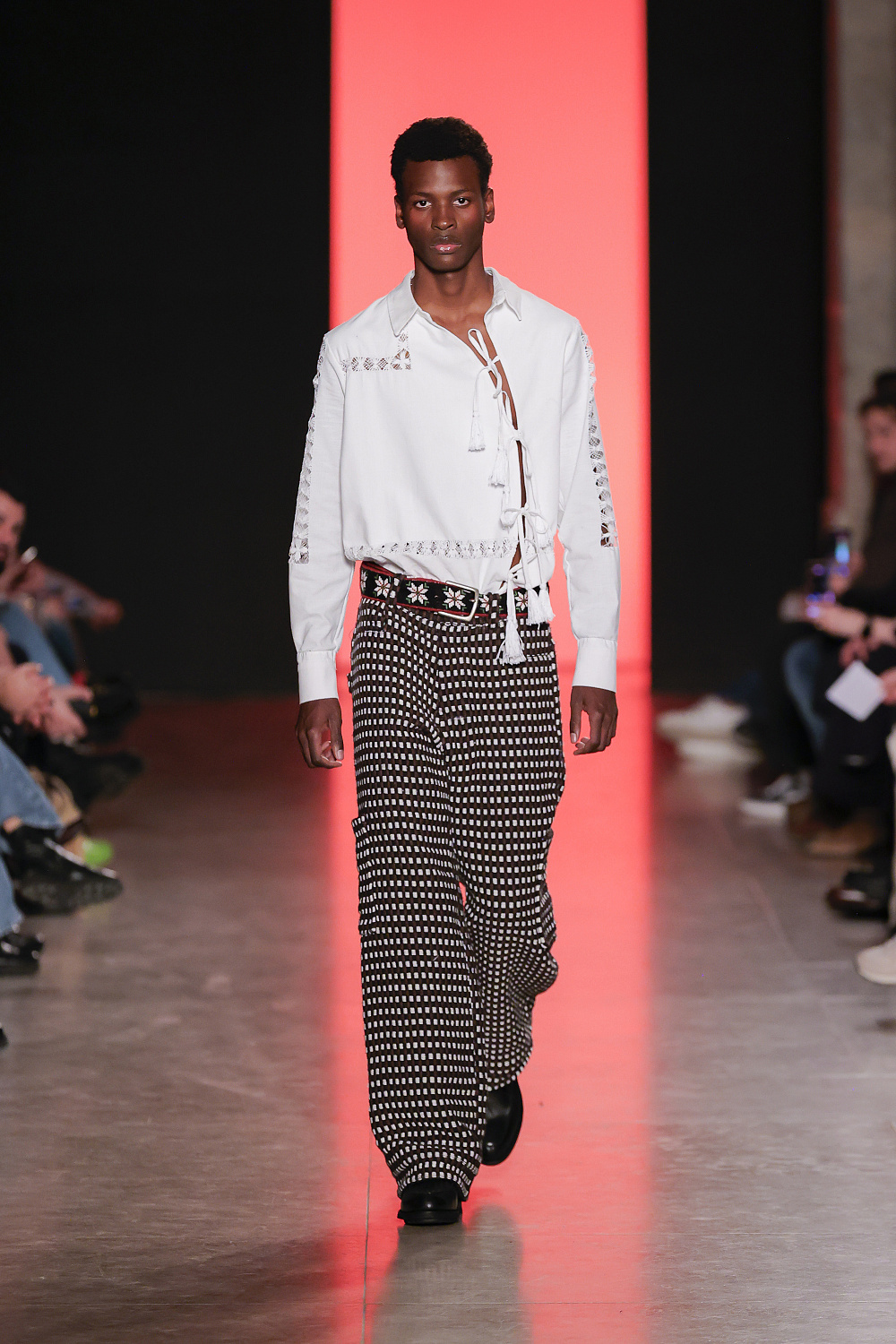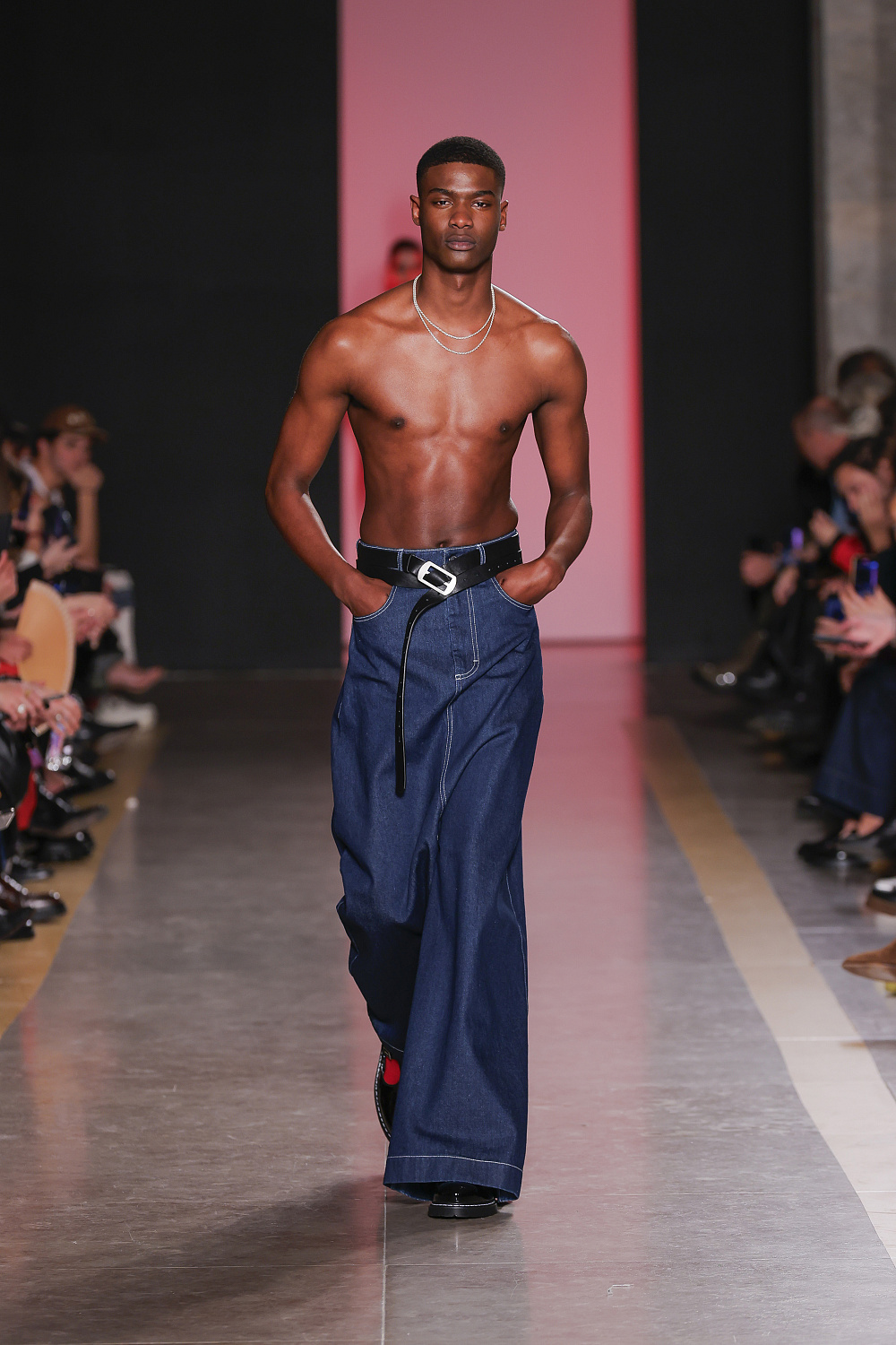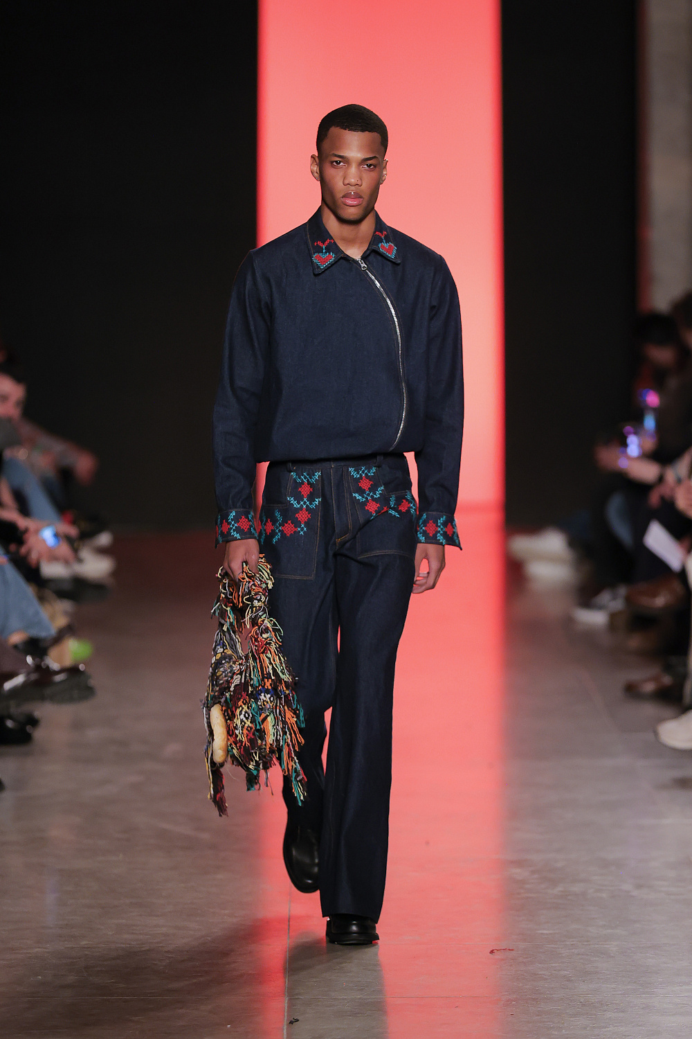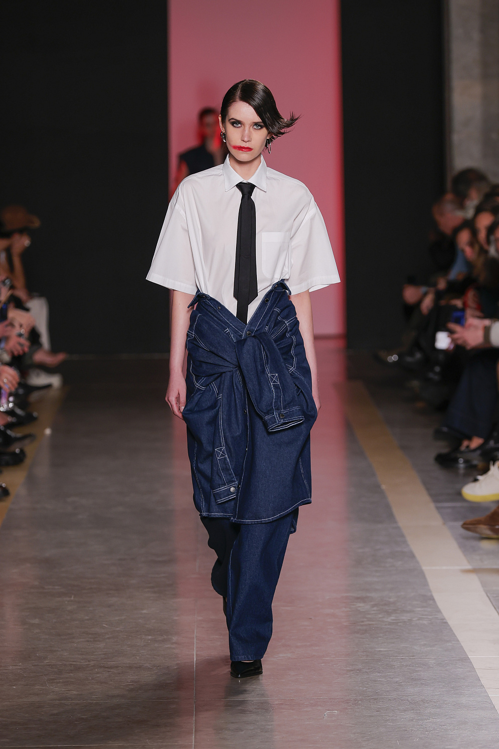 Ще одну колекцію, створену із залученням штучного інтелекту, презентували Lion of Porches X Paatiff. На подіумі ми побачили різні варіації речей із деніму в поєднанні зі своєрідним officecore: це й об`ємні джинси в комплекті з класичною білою сорочкою та чорною краваткою, і брюки та куртки з деформаціями, і футболки з красномовним слоганом You better start writing love poems, before AI writes them for you. Краще і не скажеш!