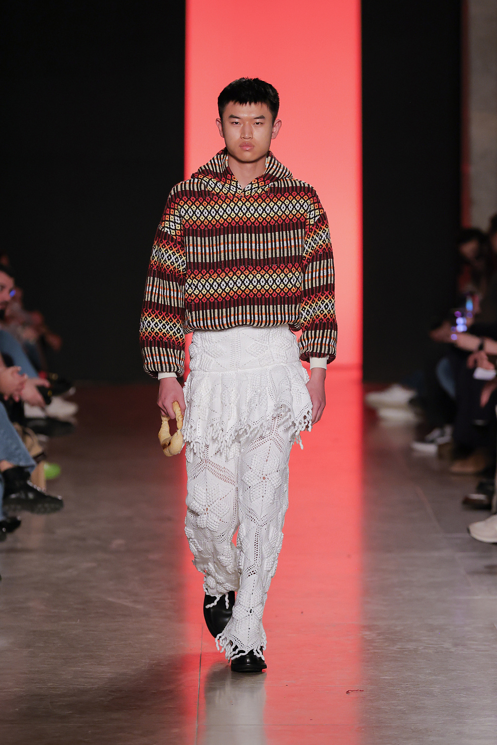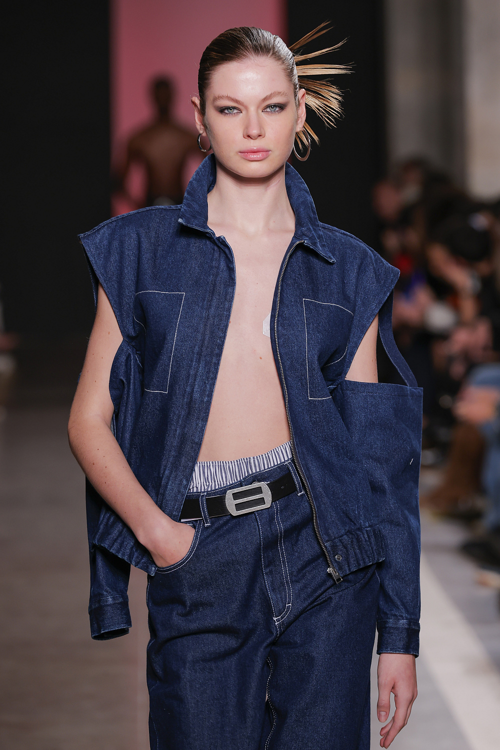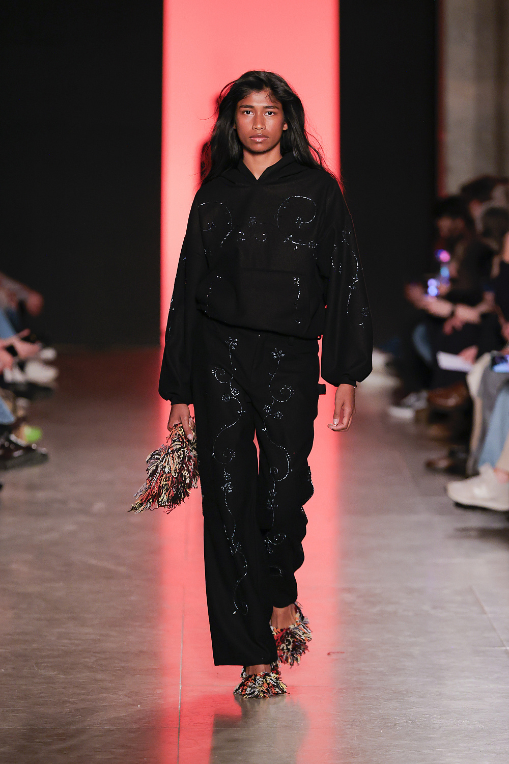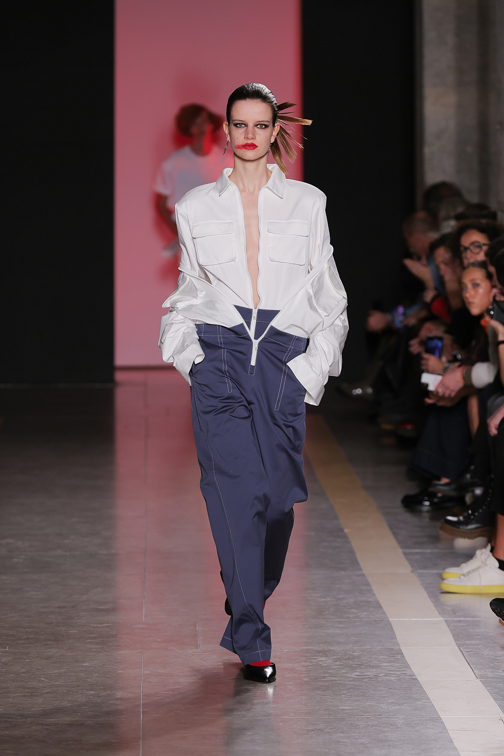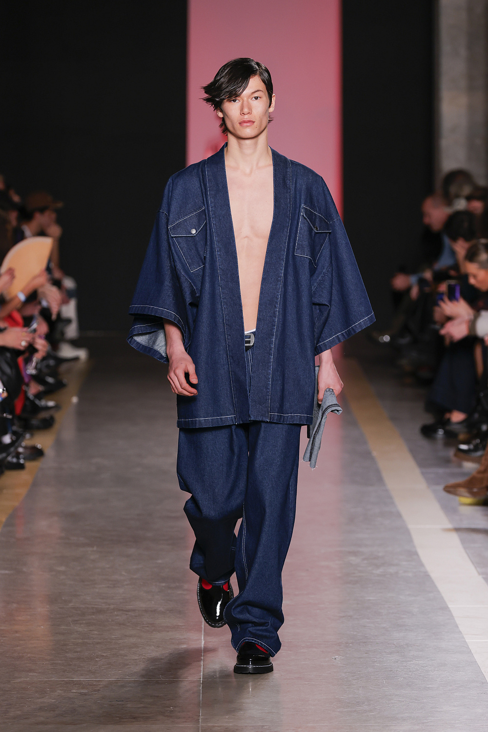 Ще одну колекцію, створену із залученням штучного інтелекту, презентували Lion of Porches X Paatiff. На подіумі ми побачили різні варіації речей із деніму в поєднанні зі своєрідним officecore: це й об`ємні джинси в комплекті з класичною білою сорочкою та чорною краваткою, і брюки та куртки з деформаціями, і футболки з красномовним слоганом You better start writing love poems, before AI writes them for you. Краще і не скажеш!
