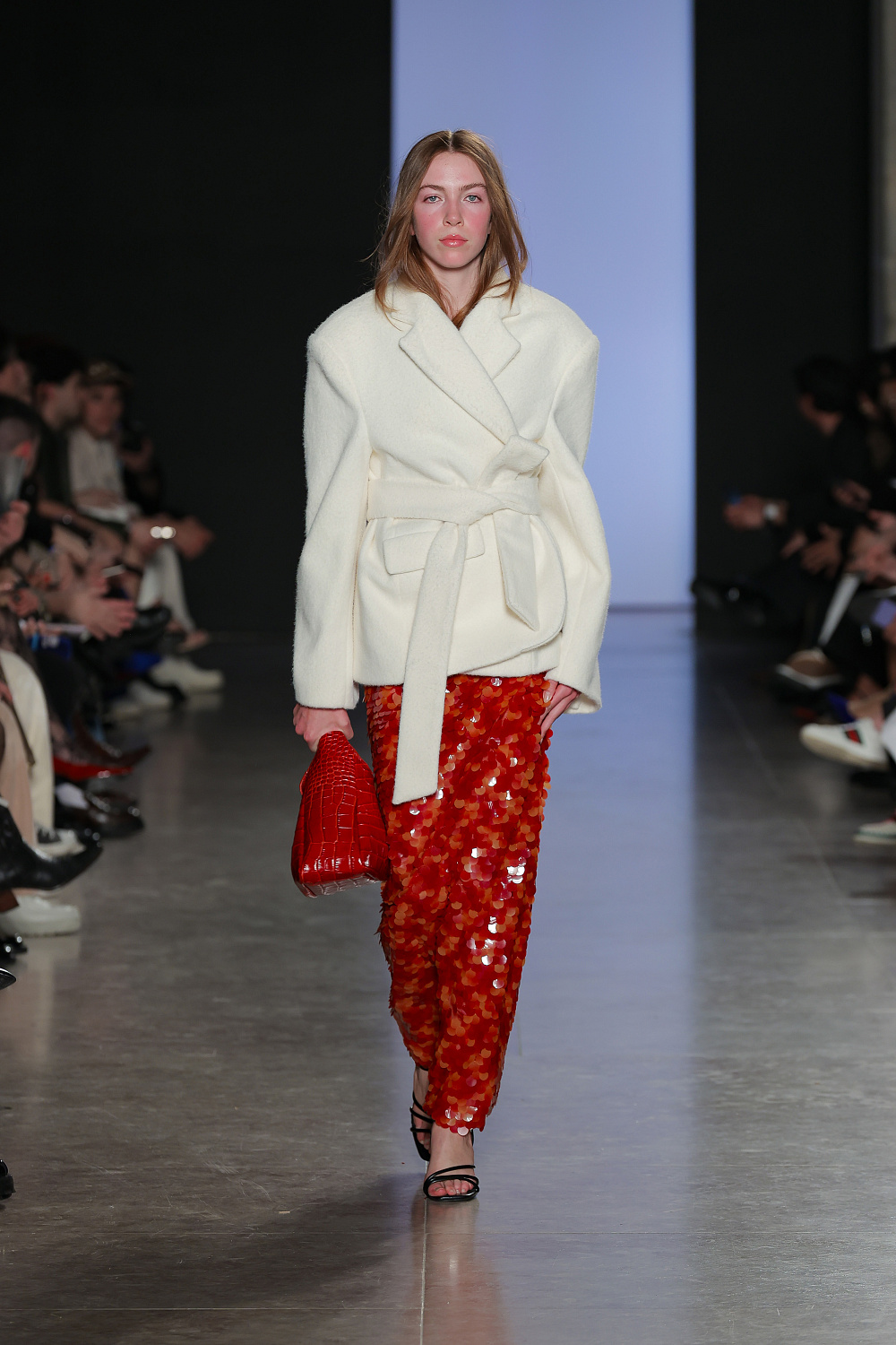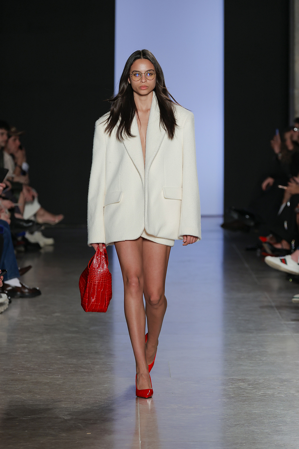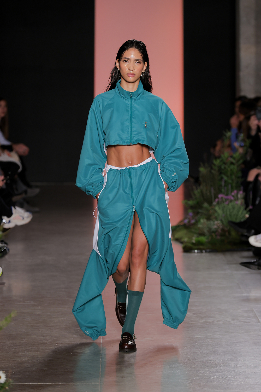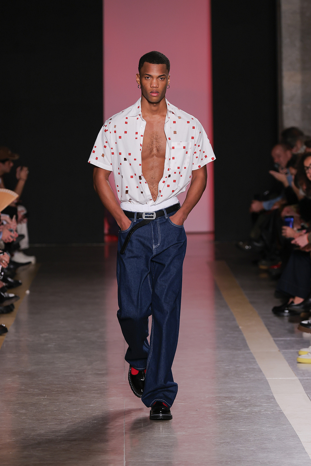 Ще одну колекцію, створену із залученням штучного інтелекту, презентували Lion of Porches X Paatiff. На подіумі ми побачили різні варіації речей із деніму в поєднанні зі своєрідним officecore: це й об`ємні джинси в комплекті з класичною білою сорочкою та чорною краваткою, і брюки та куртки з деформаціями, і футболки з красномовним слоганом You better start writing love poems, before AI writes them for you. Краще і не скажеш!