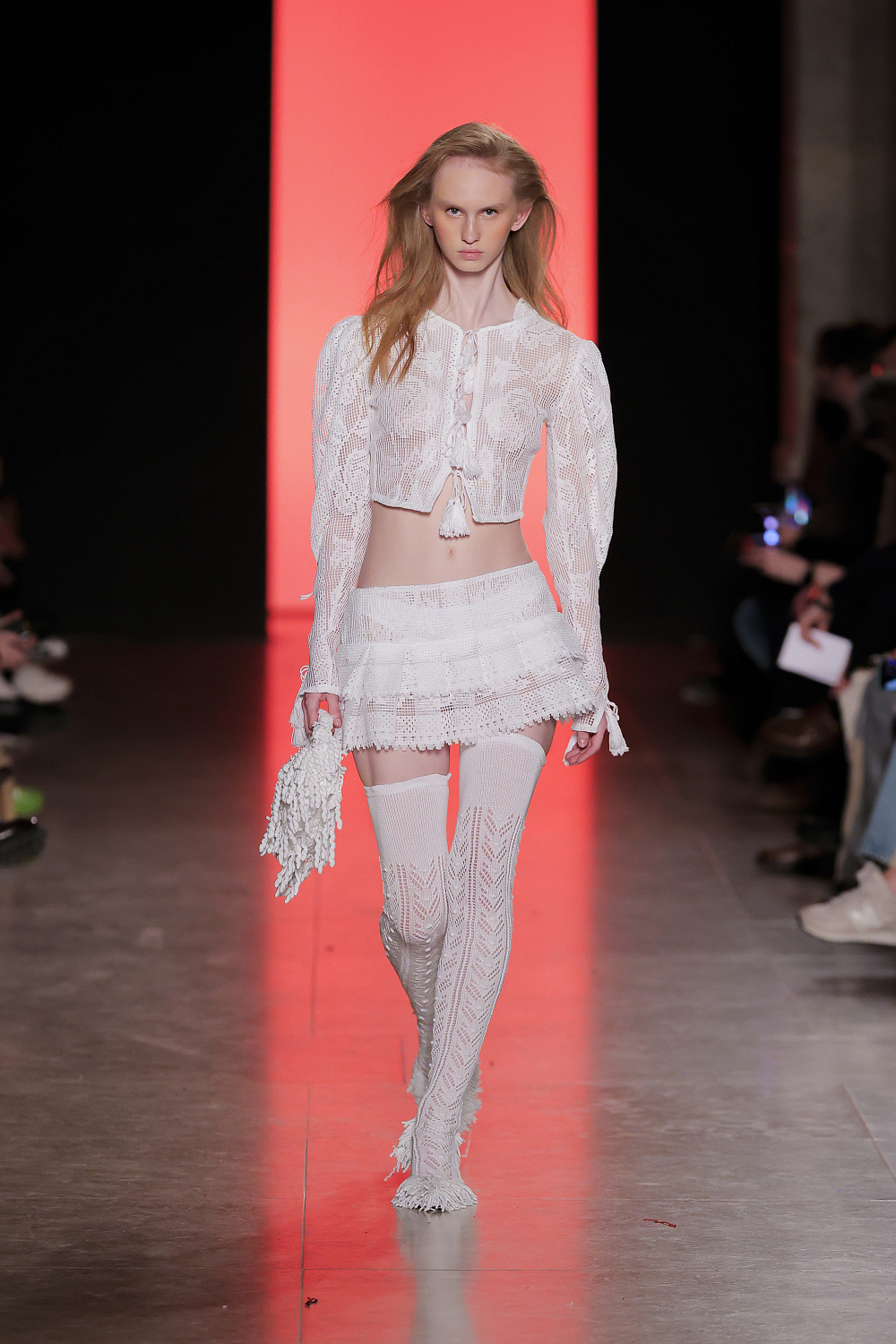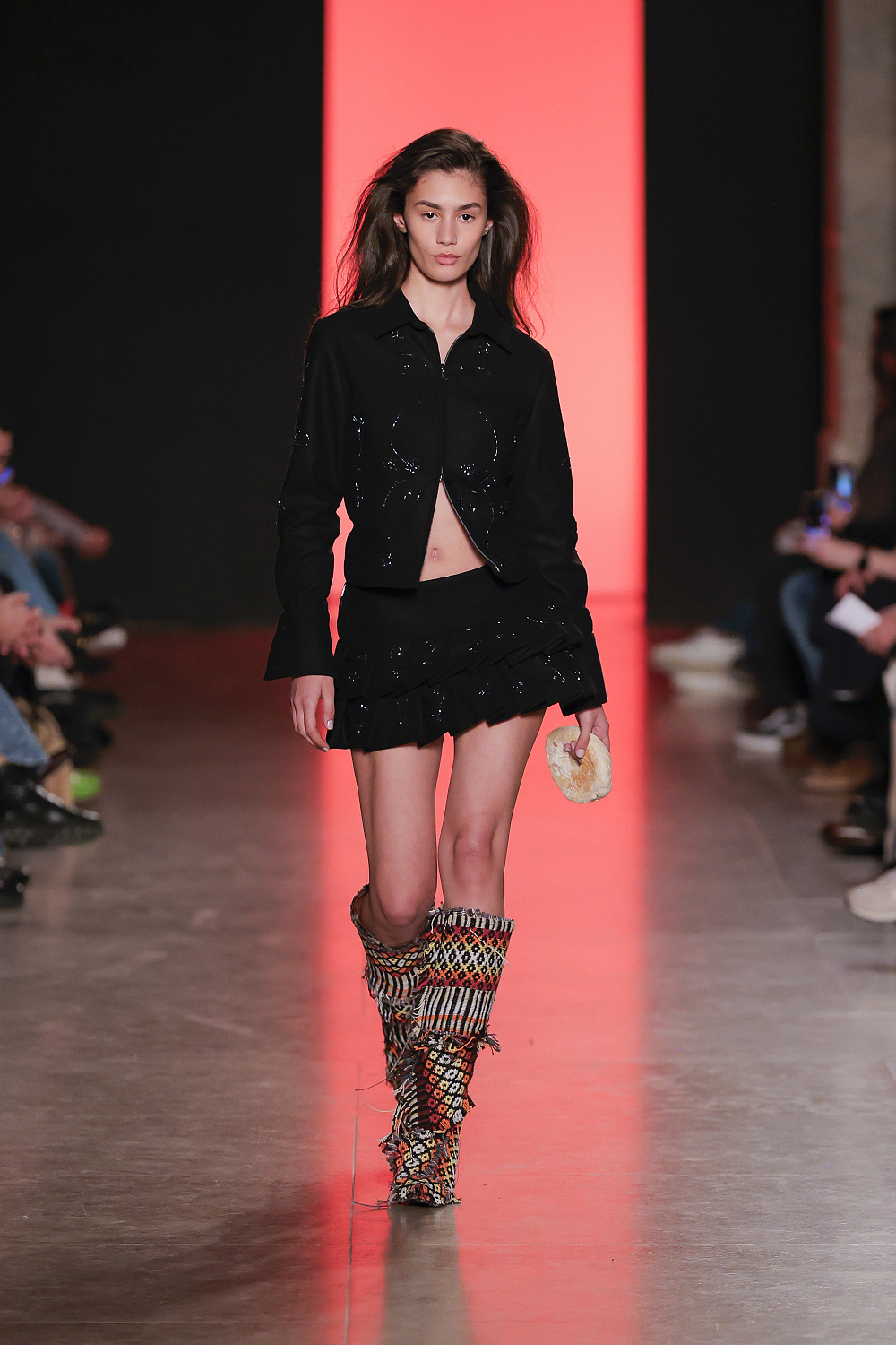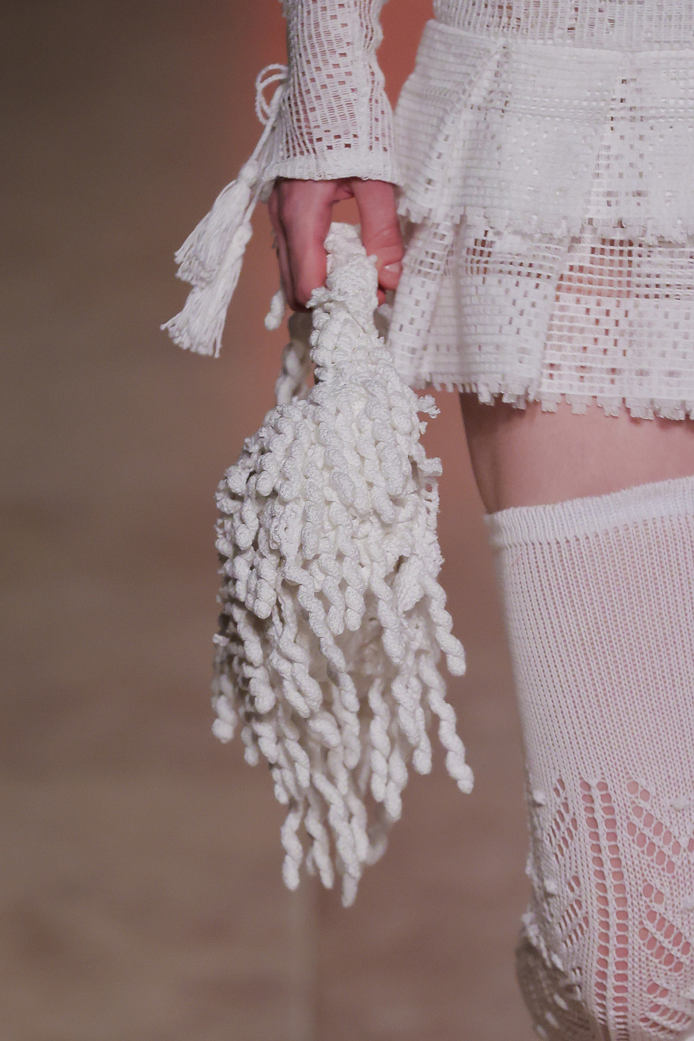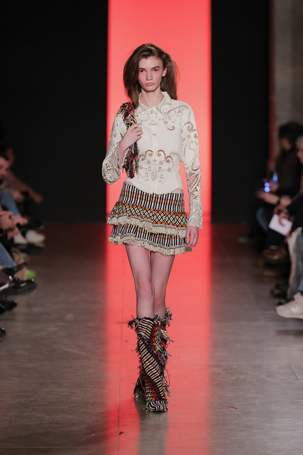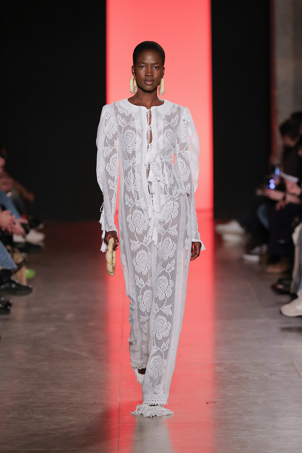 Португальский бренд Béhen повернувся до офіційного розкладу ModaLisboa після паузи в один сезон і презентував на подіумі нову колекцію одягу та аксесуарів, створених вручну. Béhen давно очолює категорію апсайклінгу в Лісабоні та регулярно презентує нові інтерпретації старовинних артизанальних технік. Для дизайнерки бренду важливо давати нове життя старовинному португальскому ремеслу, аби воно не забувалося у різноманітті сьогодення та fast fashion. Підтвердження цим словам ми ж одразу бачимо на подіумі: перший лук у вигляді тканого сета із жакета та спідниці було створено вручну за прикладом старовинних португальских килимів, які нагадують дизайнерці її дитинство у Португалії. До того ж ставку у колекції було зроблено на ультрамодну сьогодні техніку кроше: ми побачили чимало вив`язаних суконь, топів, спідниць та мініатюрних аксесуарів. Окремий елемент колекції — кольорова ручна вишивка, що прикрашала сорочки, сукні й навіть денім.