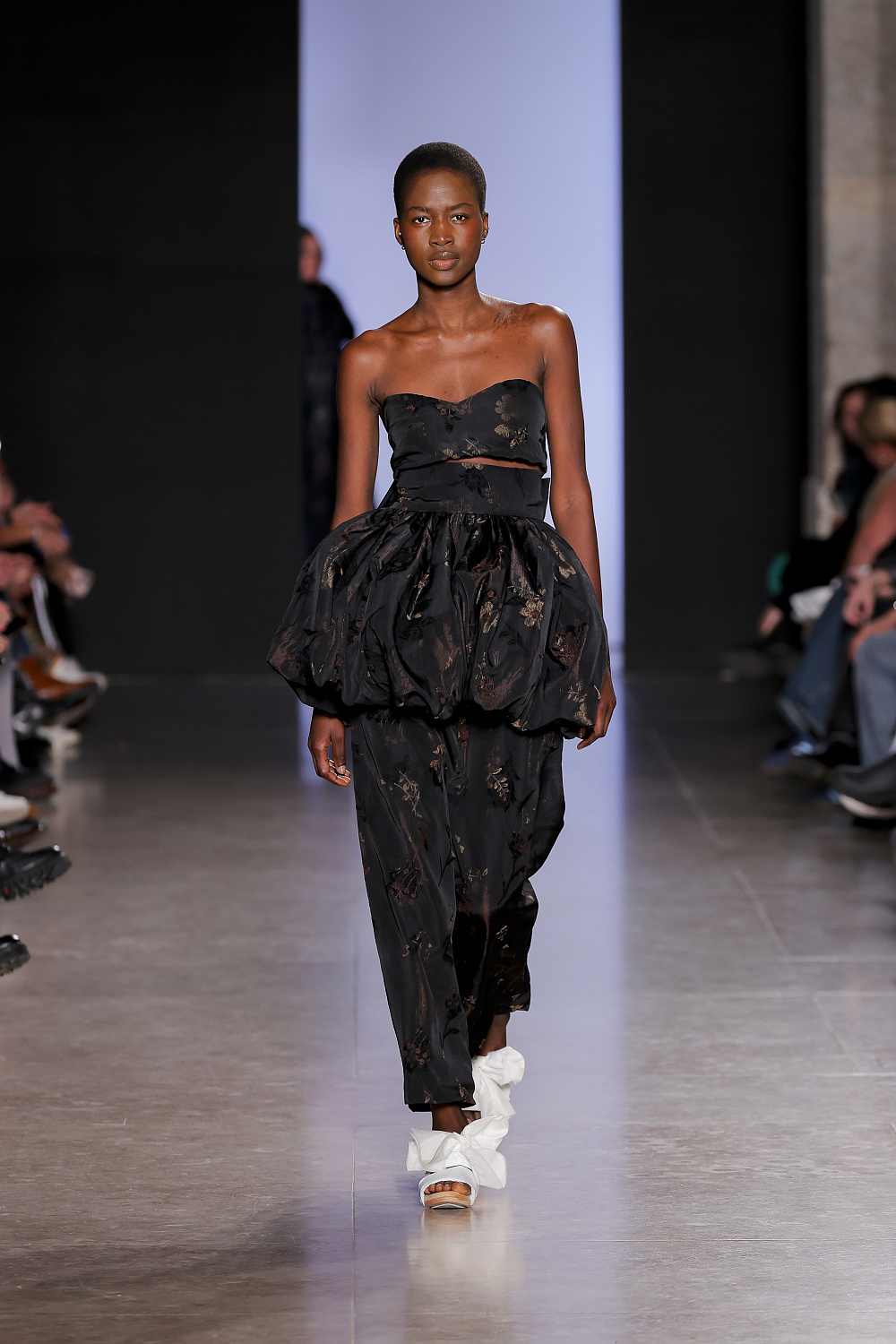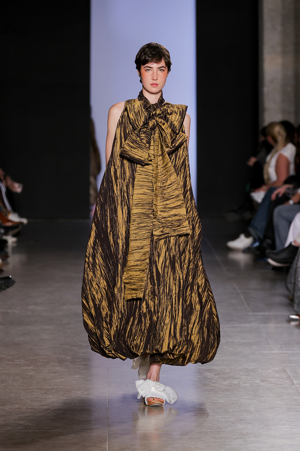 Якби серіал Killing Eve знімали в Португалії, то акторку Джоді Комер, що виконала у стрічці головну роль, очевидно, вдягали б у сукні від Buzina (пам`ятаєте ту саму рожеву сукню-хмаринку від Molly Goddard, що облетіла всі соцмережі?) Із сезону в сезон Buzina створює ніжні сукні повітряних легких силуетів і впевнено займає цю нішу на місцевому тижні моди. Цього сезону ми побачили на подіумі багато монохрому: замість звичних принтів дизайнерка презентувала монокольори з акцентом на чорний і золотий. Колекція вийшла за всіма канонами бренду, тож прихильницям Buzina є чим поповнити свій гардероб.