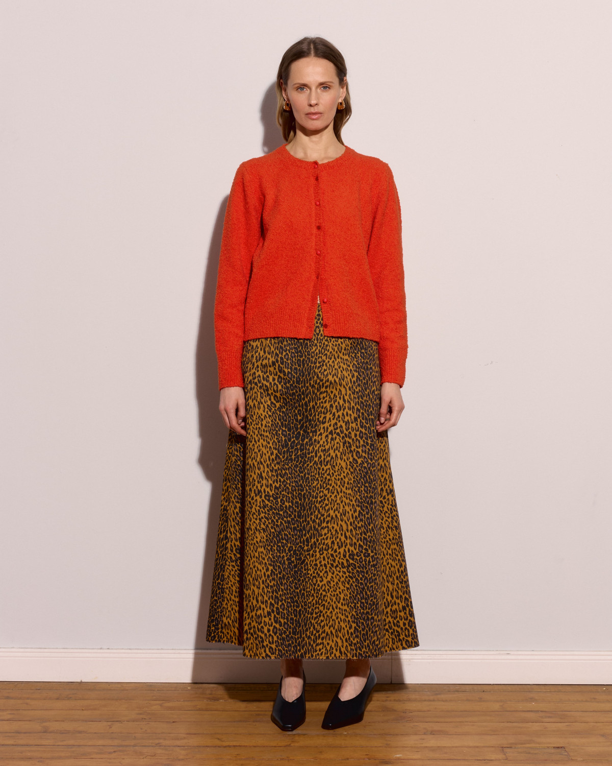 Назвіть принт, який завжди залишається у тренді. Впевнені, вам не знадобиться навіть двох спроб, аби потрапити в ціль. Звісно, це леопард. Змінюються хіба що фактури, фасони, крій. Дизайнери переосмислюють класику, експериментують і надають їй нових звучань, але так чи інакше з року в рік повертаються до улюбленого й перевіреного часом принту. Стильна леопардова спідниця міді А-силуету знайдена цього сезону в колекції WKMF. Носіть її як із чорними й білими блузами, так і з трикотажем найсміливіших відтінків. Леопард + червоний = модна комбінація для найсміливіших.