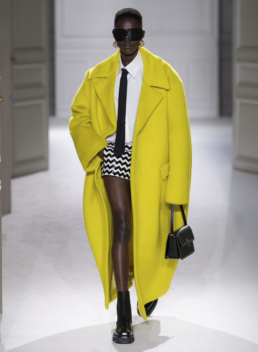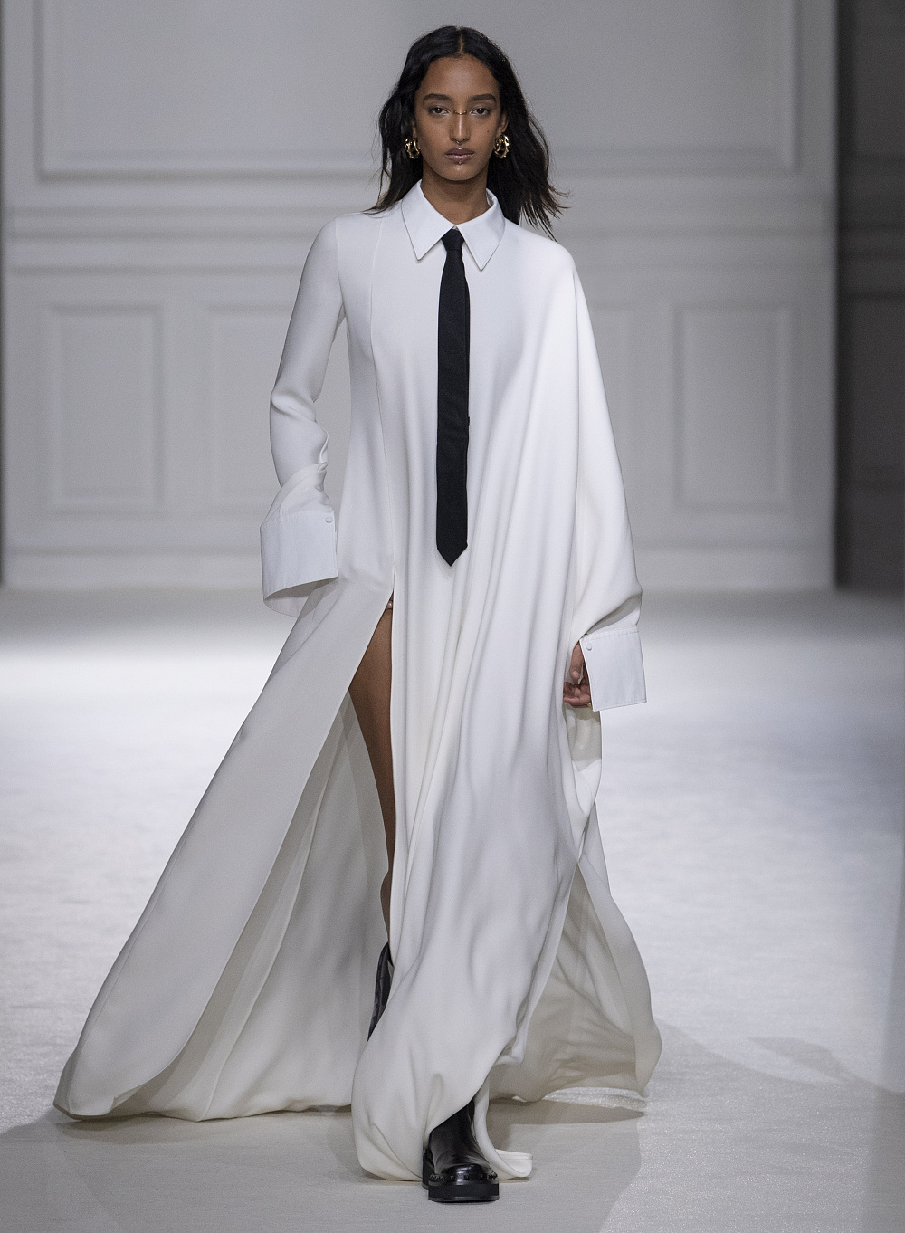 На подіумі бренду можна було знайти не лише офісні луки, а й більш розкішні та вечірні. Серед них: із прозорими блузою і спідницею, з обтислим пальтом з акцентним хутряним коміром і з жакетом-бюстьє. Звісно, коли йдеться про образи з краватками, не можна не згадати брючні костюми, адже це вічна класика, що стане основою аутфіту на будь-який випадок.