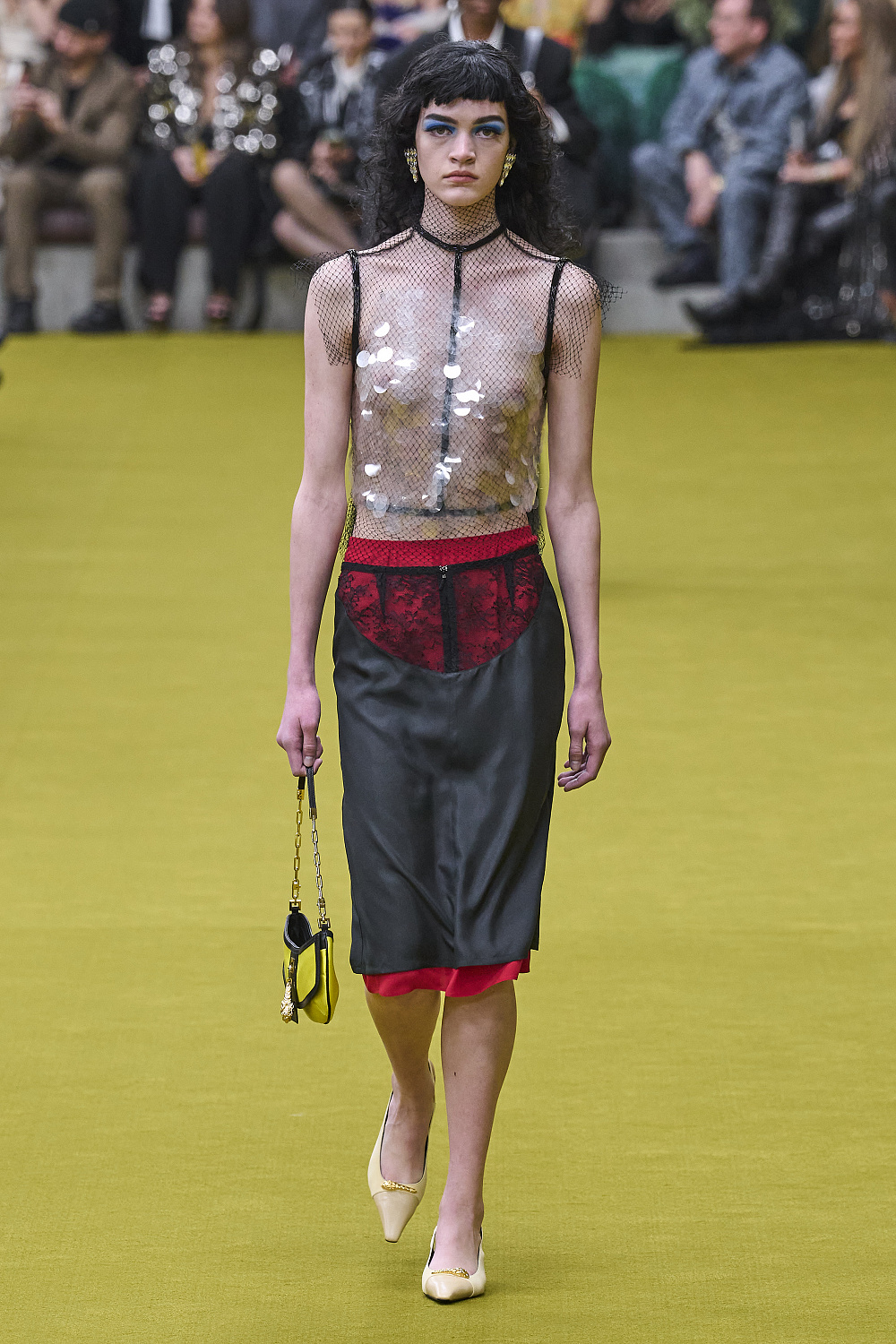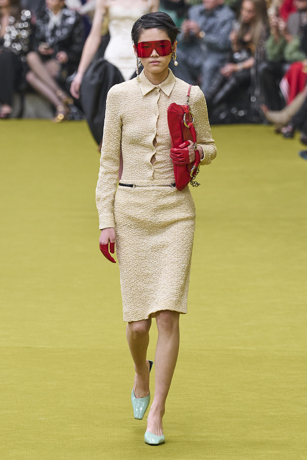 Небагатьом трендам вдається так «гучно» увірватися в модний сезон. Bottega Veneta, Gucci, Chanel, Saint Laurent та один із головних трендсетерів останніх років Miu Miu — її показували ледь не всі бренди. Вона з’являлася у ділових образах із жакетом і світлим верхом, які ви легко адаптуєте до своїх офісних буднів; у парі з новим цікавим стилістичним прийомом — резинка колготок, що виглядає з-під спідниці; з елегантними поясами на талії; у монохромних аутфітах, які подовжують силует; з відкритим взуттям і ботфортами, які заходять під поділ, тощо.