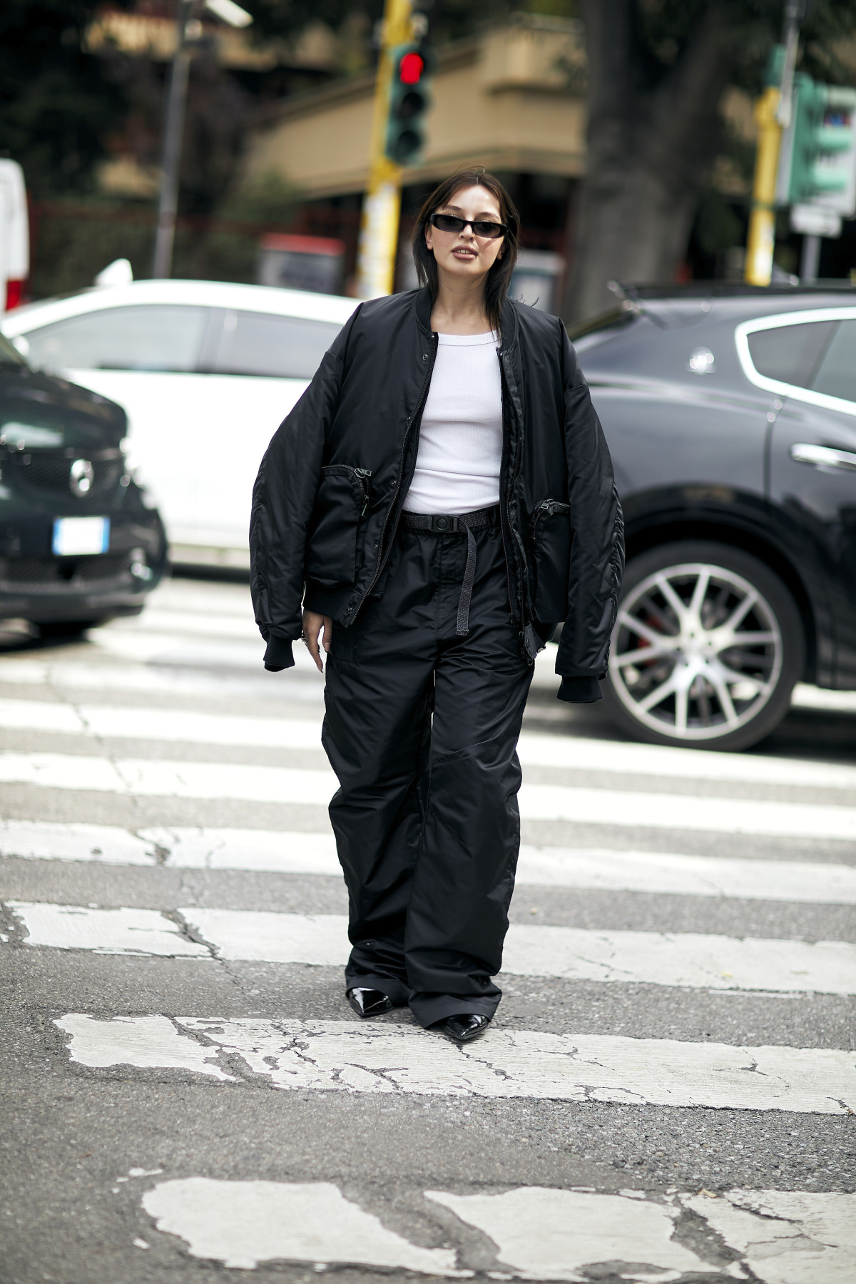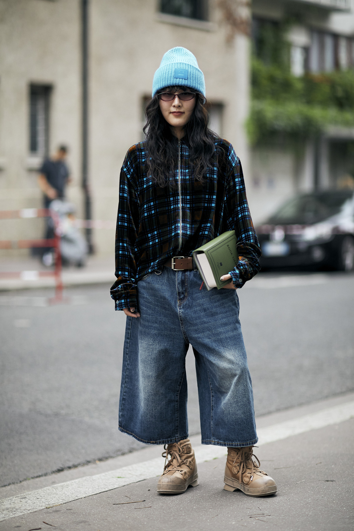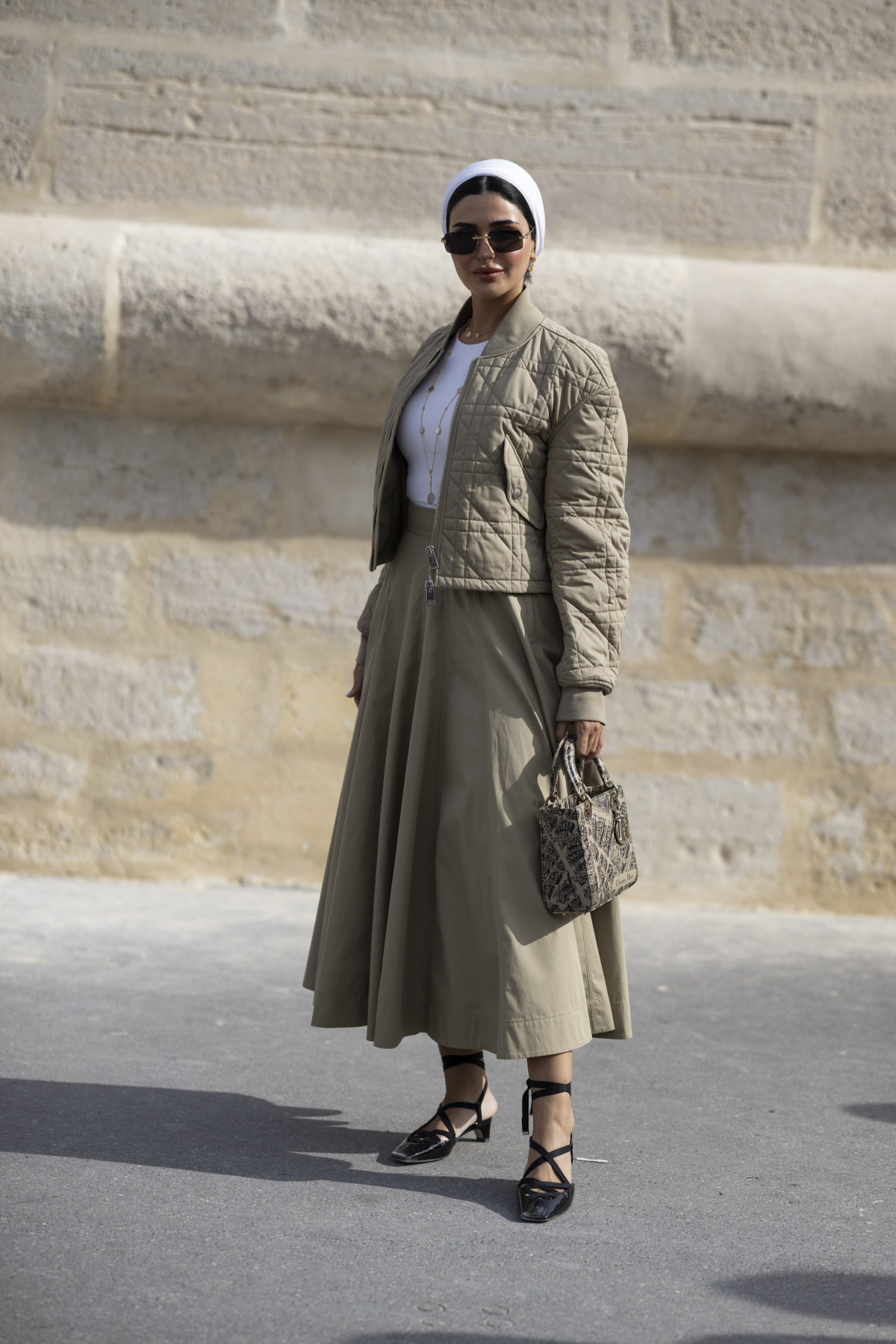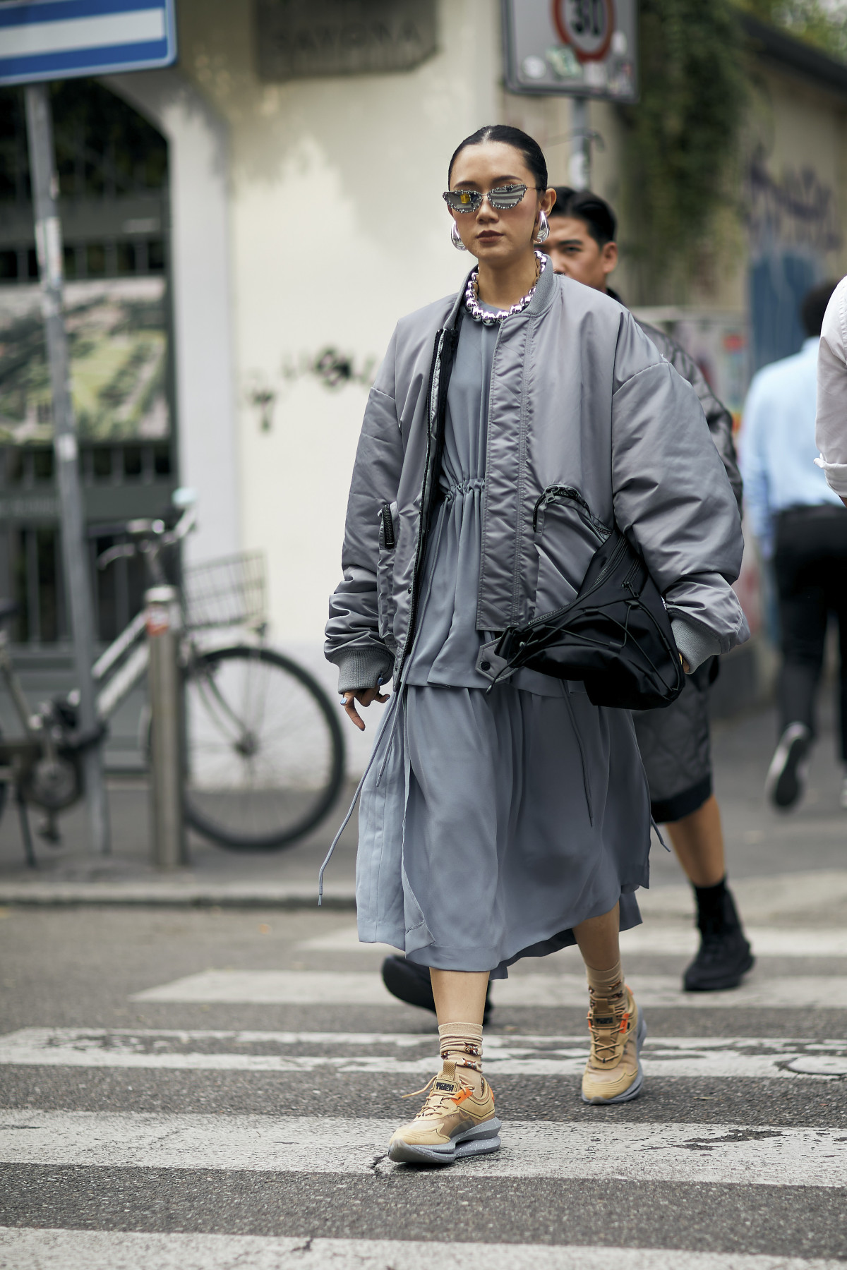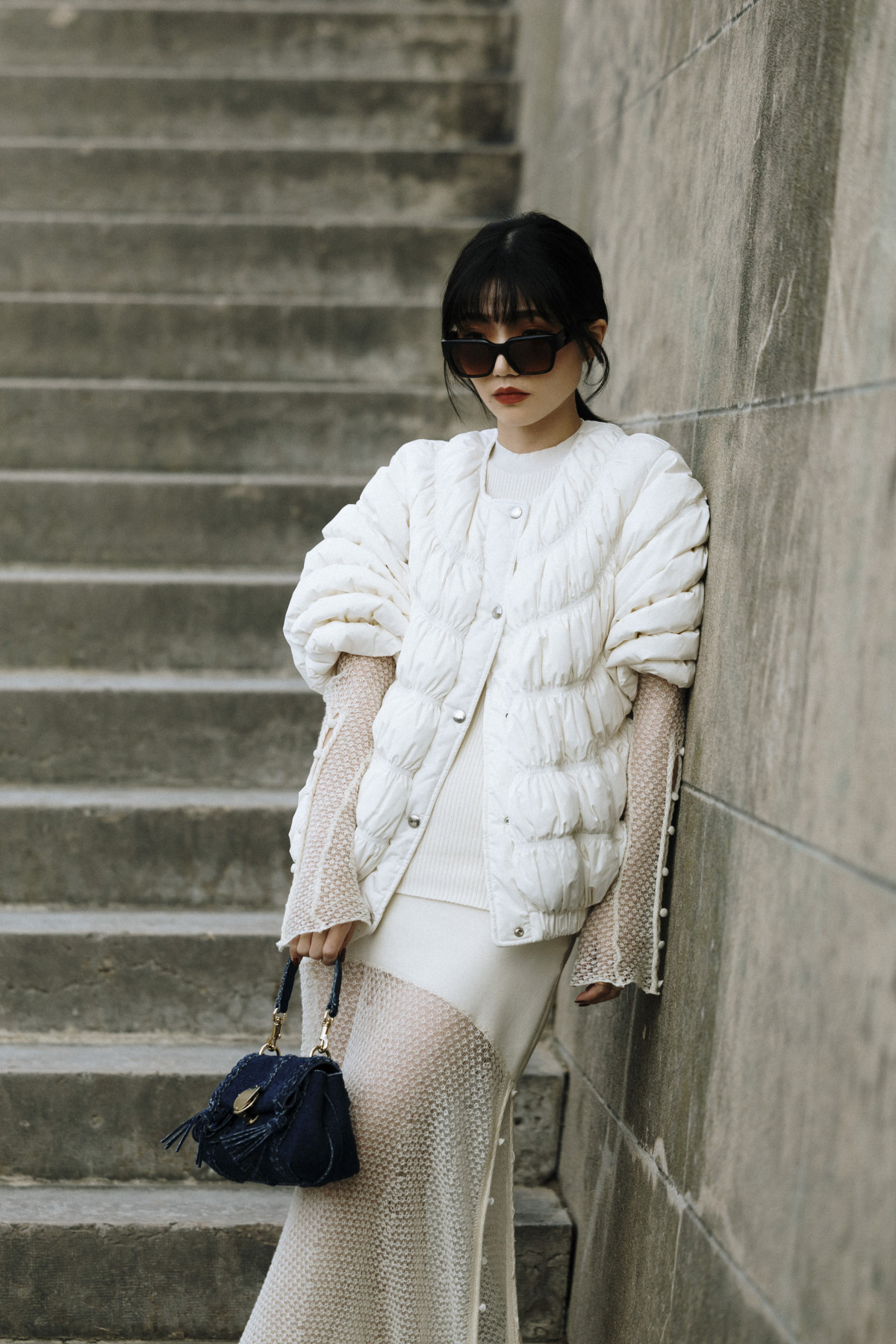 Зірки streetstyle теж не залишили без уваги цей елемент гардероба. Серед цікавих поєднань — комплекти з напівпрозорими довгими сукнями, спідницями міді та підборами, класичними брюками й джемперами, що додали образу естетики grandpacore.