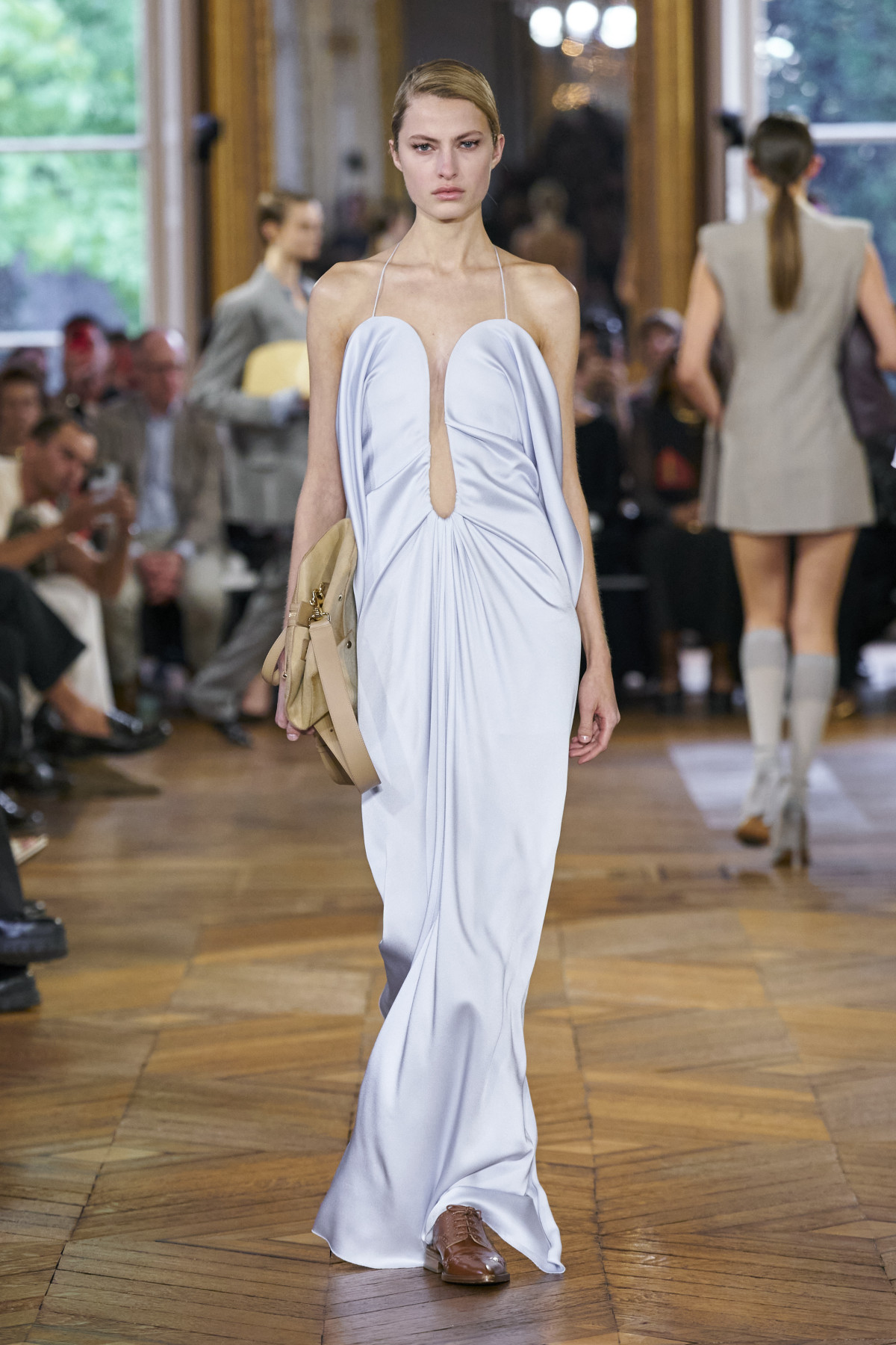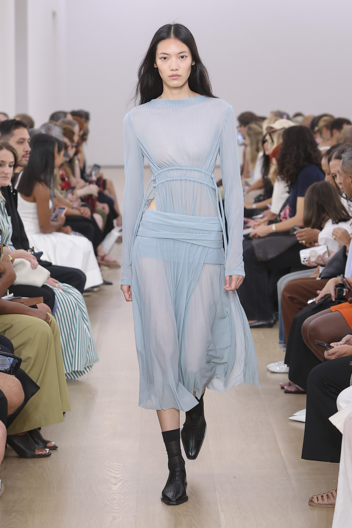 У цьому сезоні світові бренди запропонували створити монохромні образи з небесно-блакитним. Issey Miyake додав до своєї колекції невагомий костюм зі спідниці міді з розрізом на нозі, топом і капелюшком. Завдяки відтінку та об’ємним формам образ немовби нагадує хмарину. Плавні повітряні силуети ми побачили й у Prada: бренд продемонстрував блакитну сукню прямого крою до коліна, доповнену напівпрозорою тканиною, що огортала вбрання. Деякі бренди показали, як можна поєднати цей відтінок з іншими. До прикладу, Loewe стилізував свої футболки з кремовими шортами, а Fendi запропонував комбінацію з яскравими рукавицями та взуттям. Серед поціновувачів цього кольору й Proenza Schouler. Бренд доповнив весняну лінійку небесно-блакитними тренчами, до яких додав базові білі й чорні або інші сині відтінки.