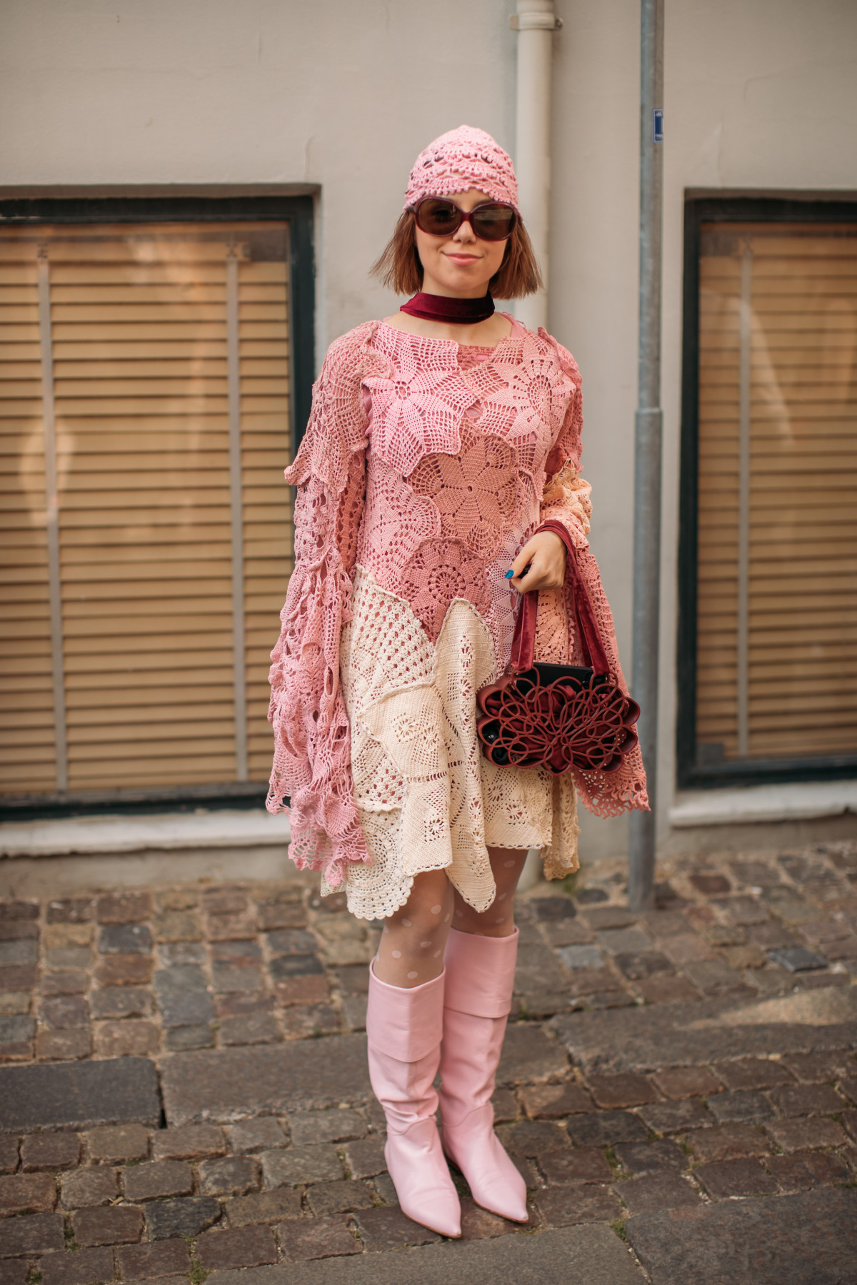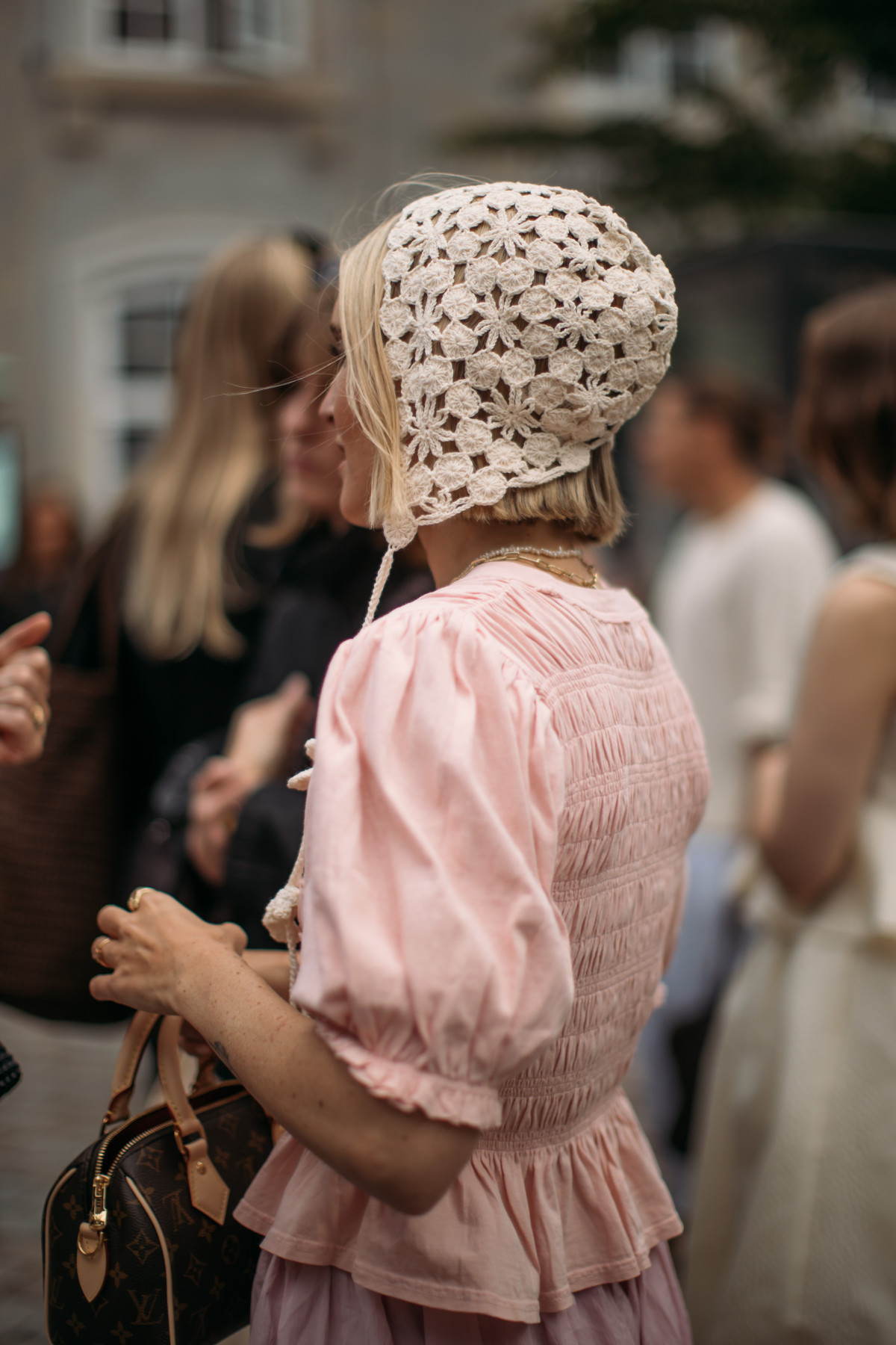 Копенгагенські модниці цього разу обирали найрізноманітніші їхні моделі. Тут і нещільні варіанти у вигляді сітки, і мереживні з деталізованими візерунками, і головні убори з бісеру, і елементи, доповнені довгими зав’язками — загалом на будь-які вподобання та погоду за вікном. Щодо кольорів, то головними фаворитами зірки обрали шапки у нейтральному білому, ніжному рожевому та глибокому синьому тонах.