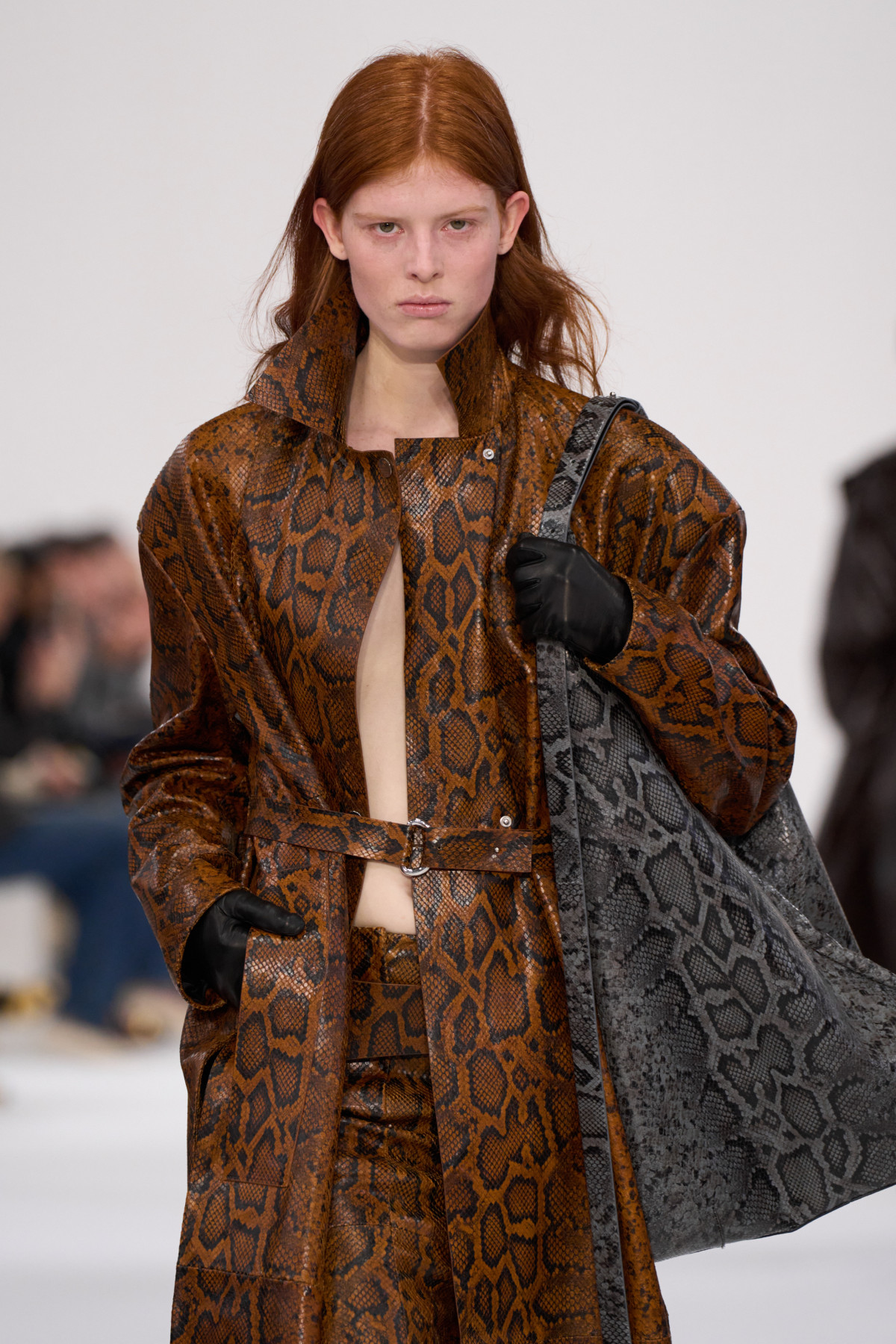 Серед інших популярних категорій опинився також верхній одяг — найнеобхідніша деталь у прохолодну пору. Тут дизайнери представили подовжені тренчі, структуровані жакети та шкіряні куртки з тисненням під рептилію, роблячи ставку на чіткий крій і стриману палітру — графіт, беж і платину.