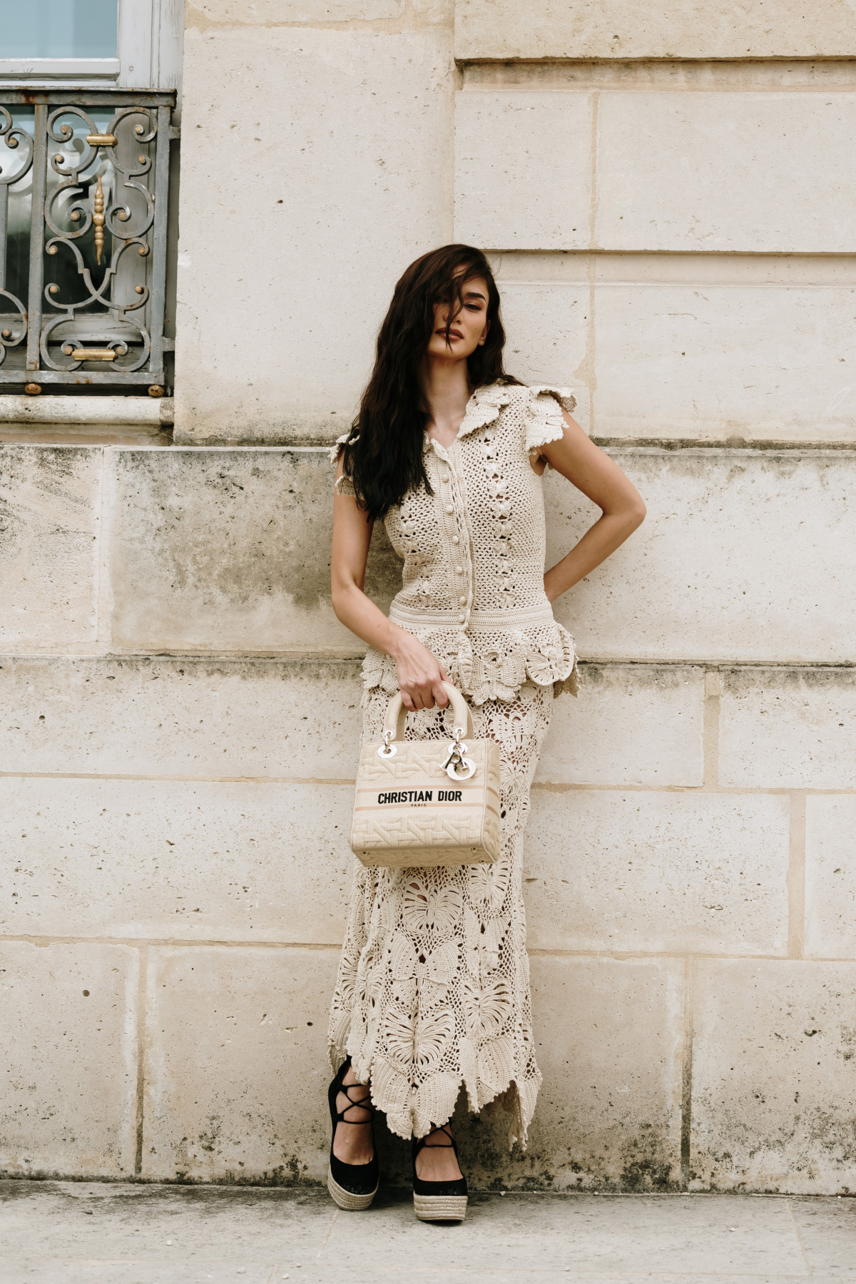 Акторка й модель Сієнна Міллер натомість показала, як поєднати танкетку в більш розслабленому образі для прохолоднішої погоди. Вона стилізувала босоніжки із шовковою спідницею з мереживом, масивною шкіряною курткою та джемпером. Доповнила знаменитість вбрання темними сонцезахисними окулярами й клатчем.