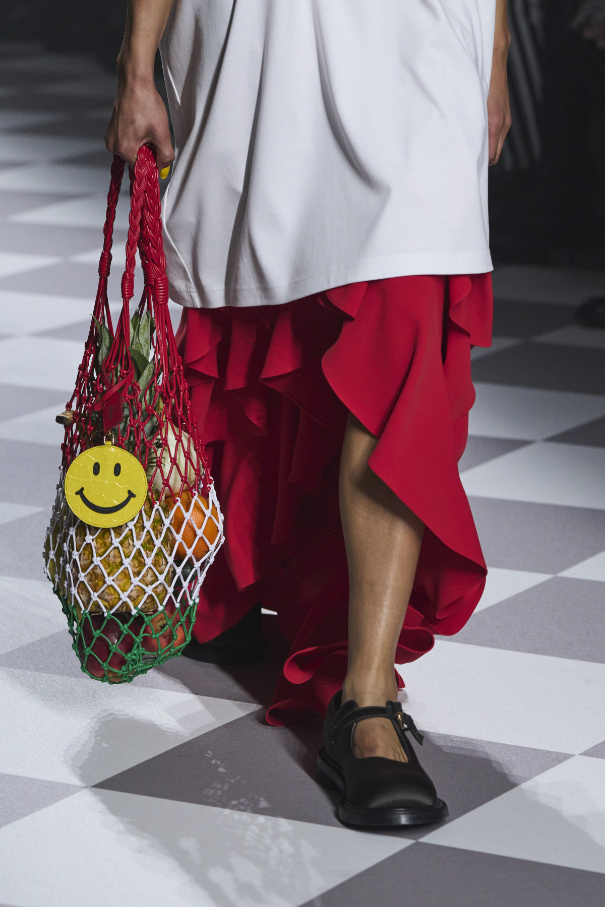 Ви можете прикрасити не лише свої базові шкіряні сумки для роботи та навчання чи масивні моделі для спорту та подорожей, а й плетені або в’язані гачком шопери. Так, Moschino додав до власної моделі брелок зі смайликом, закріпивши його на ручці. Інший же варіант мінісумки бренд прикрасив хустиною.