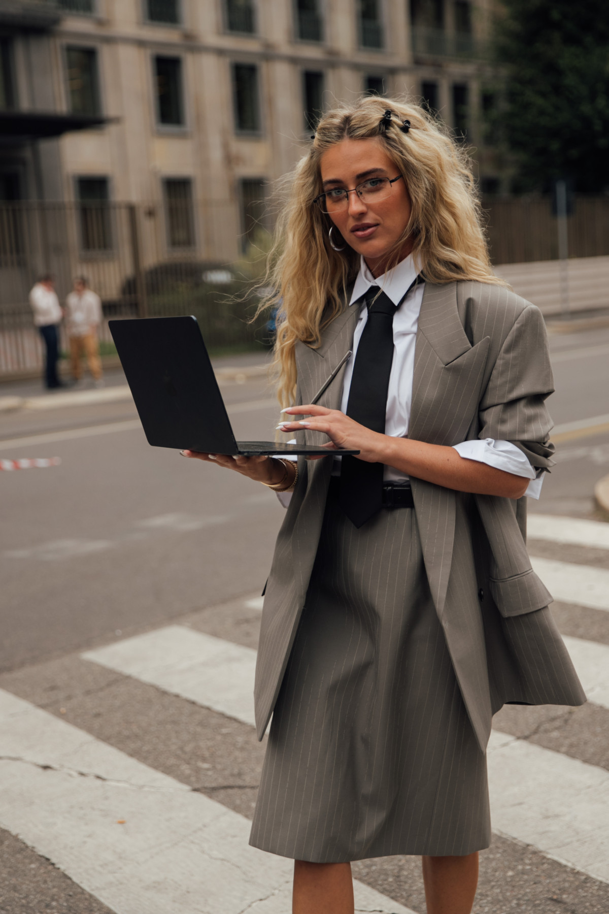 Якщо хочете виділитися, поєднайте такі окуляри з гладко зачесаним волоссям і ультрамодним офісним образом: об’ємним блейзером, сорочкою та картатою мініспідницею — як Жизель Бюндхен у «Диявол носить Prada».